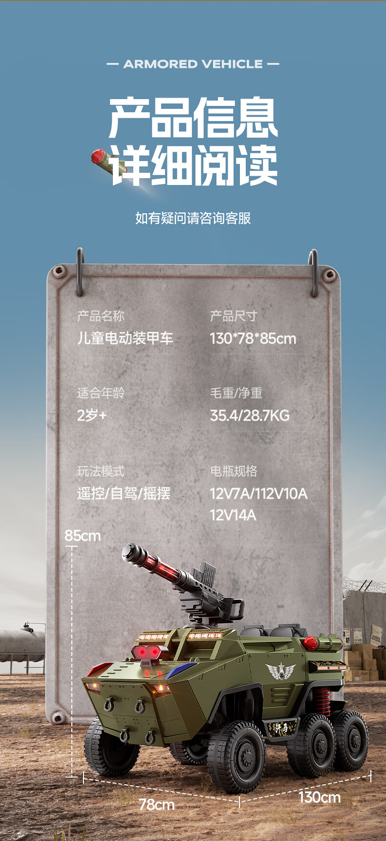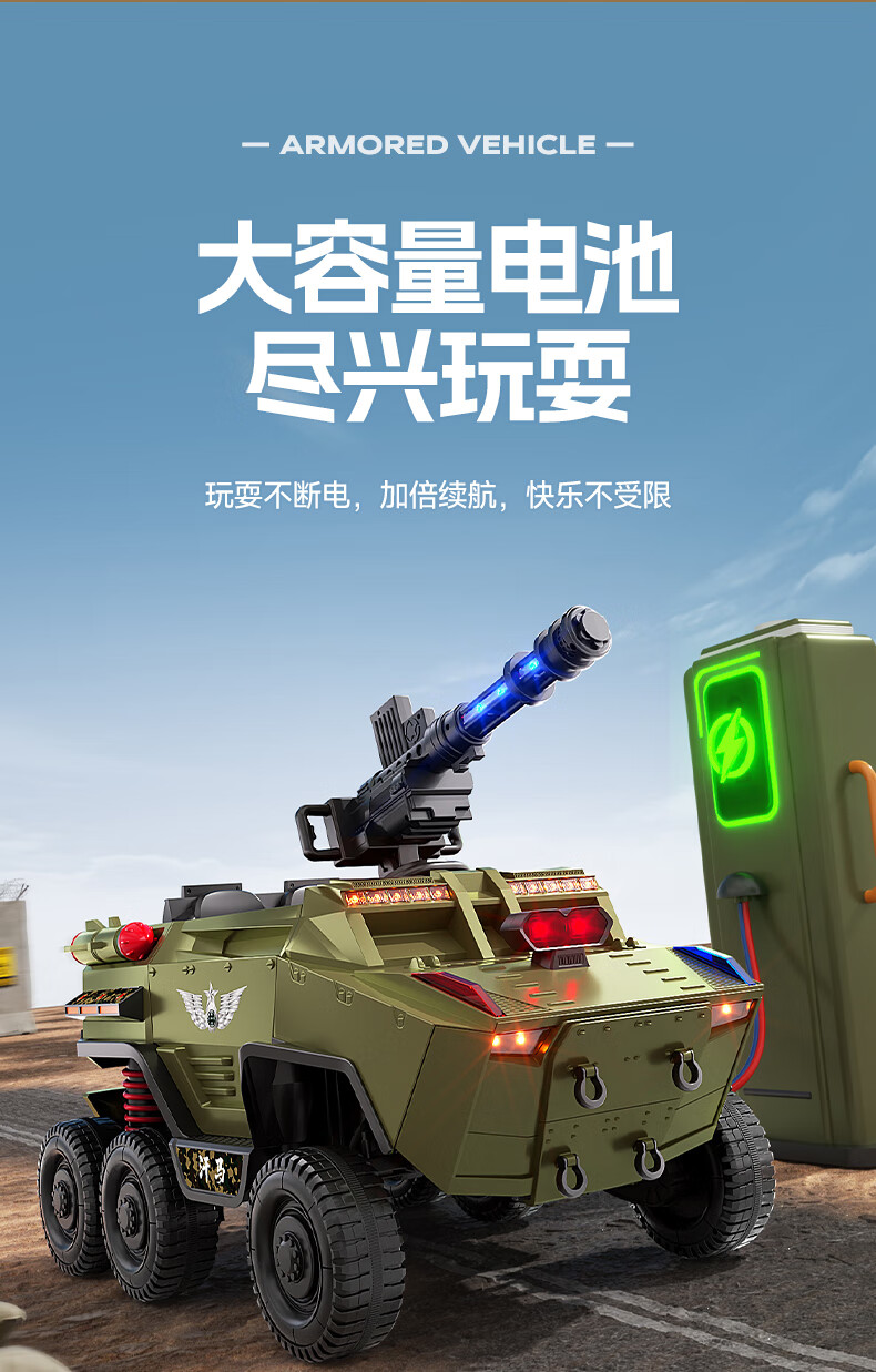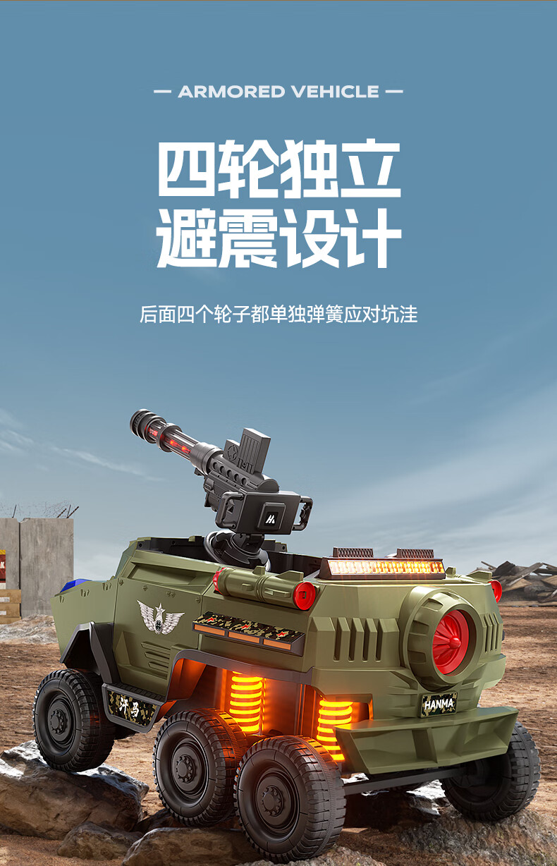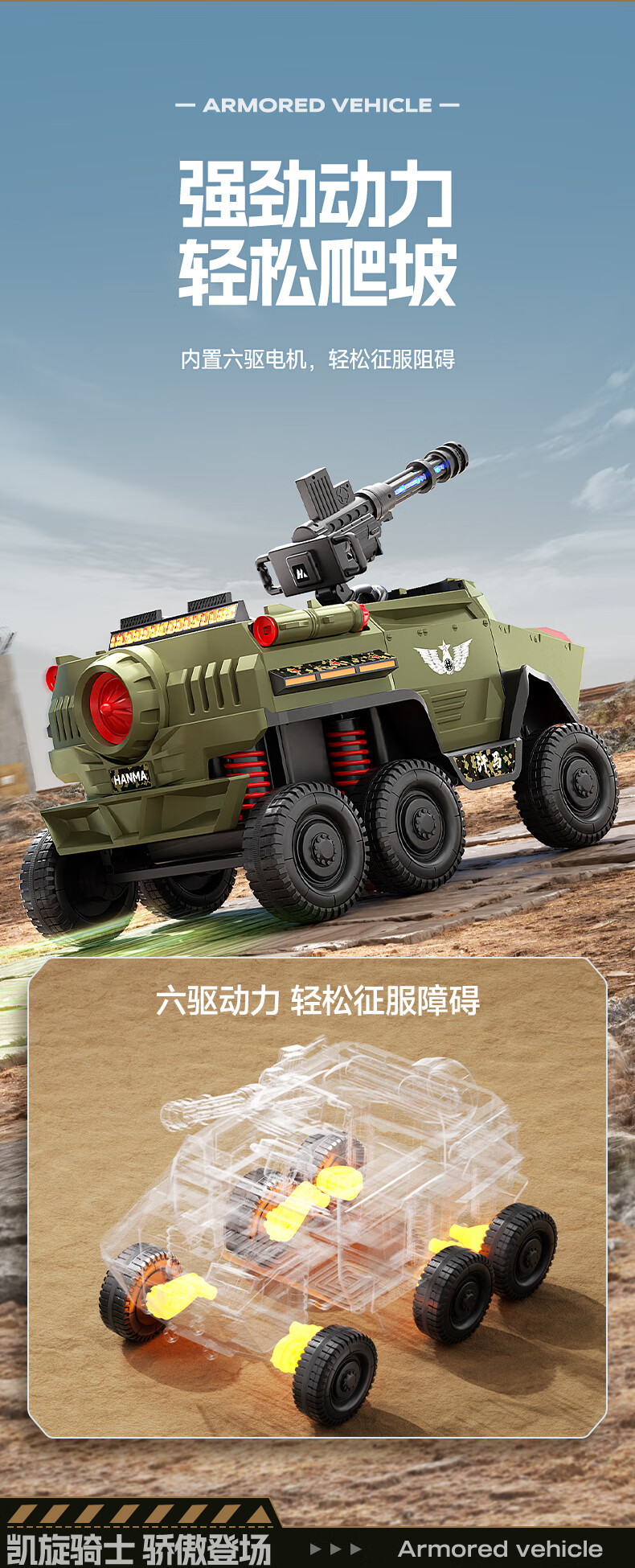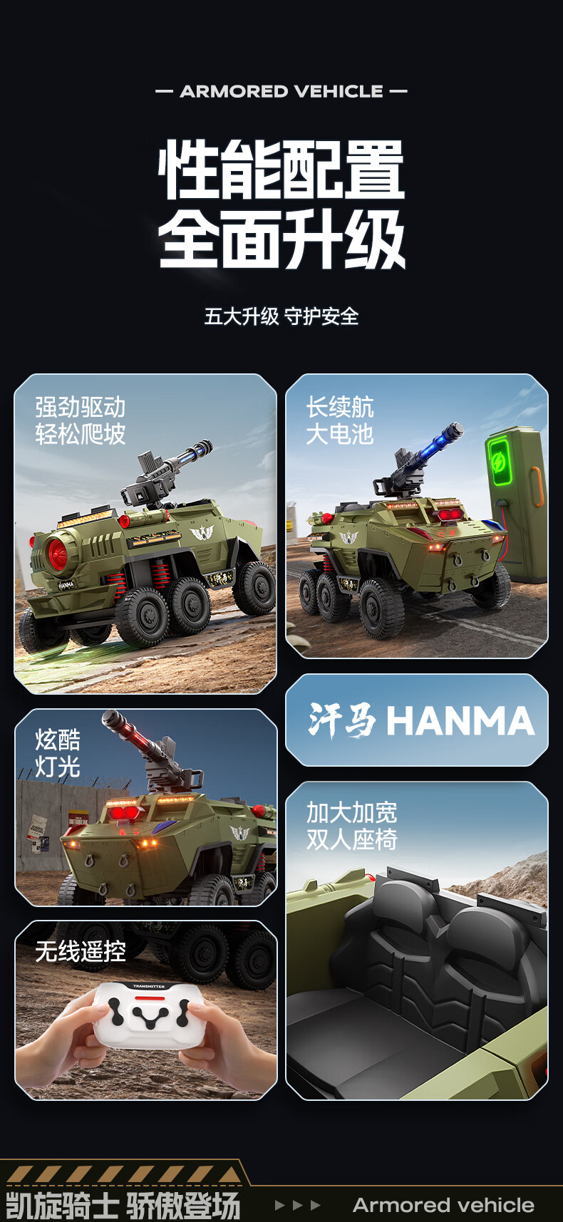 Mother and baby children's electric car boy six-wheel child remote control toy car baby tank armored car can take adults off-road army green + four-wheel drive + 12V7 + light and music + remote control electric drive