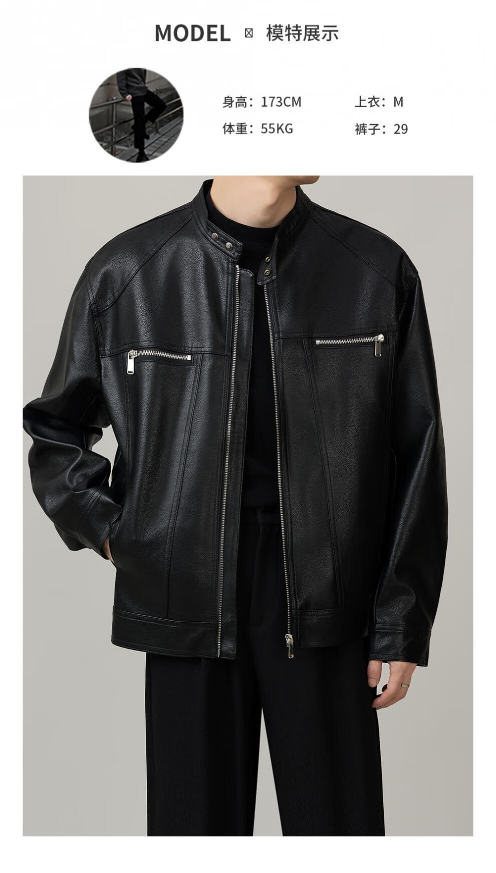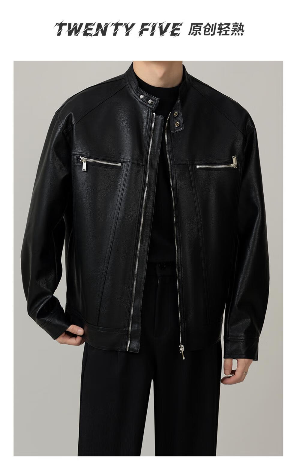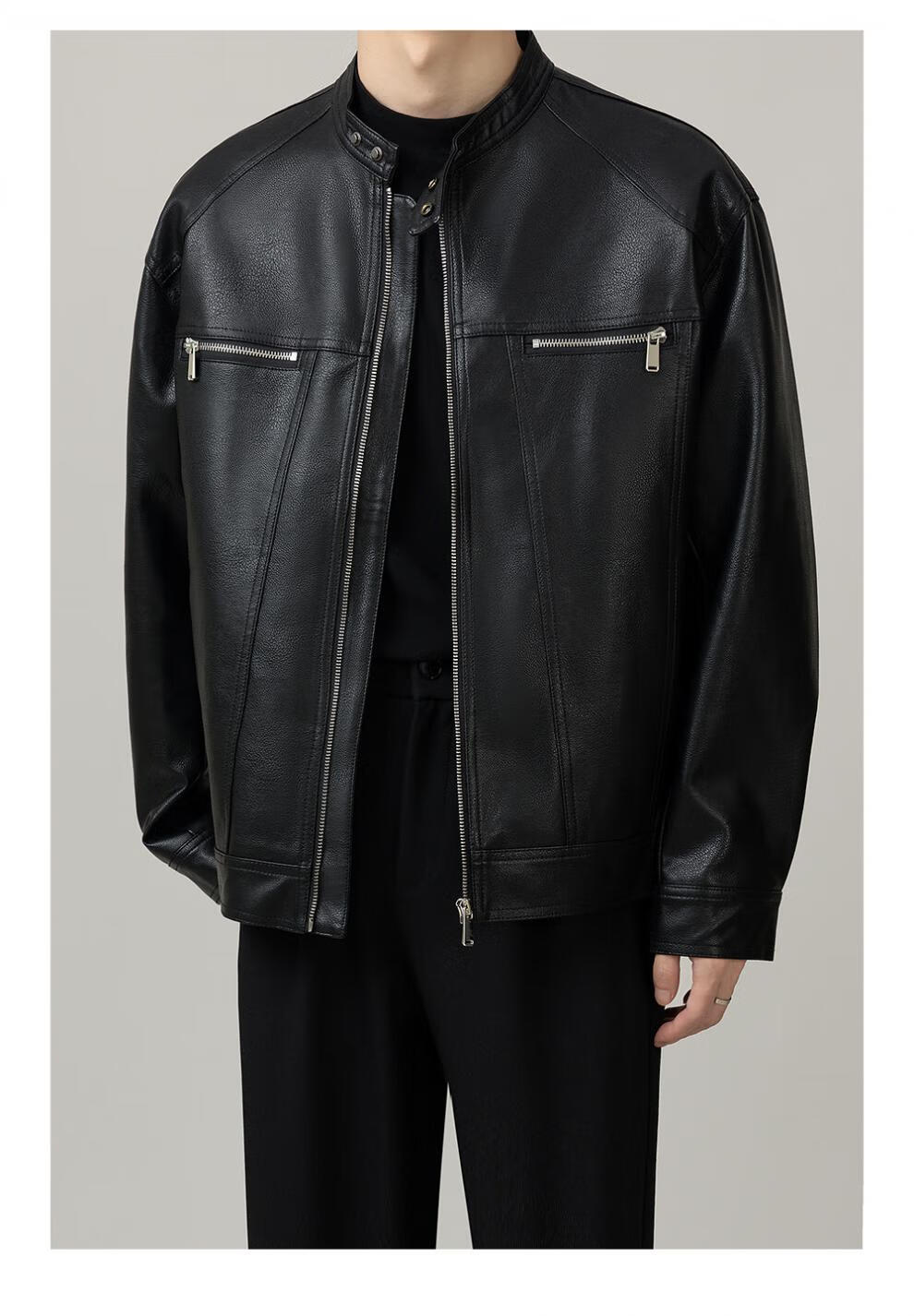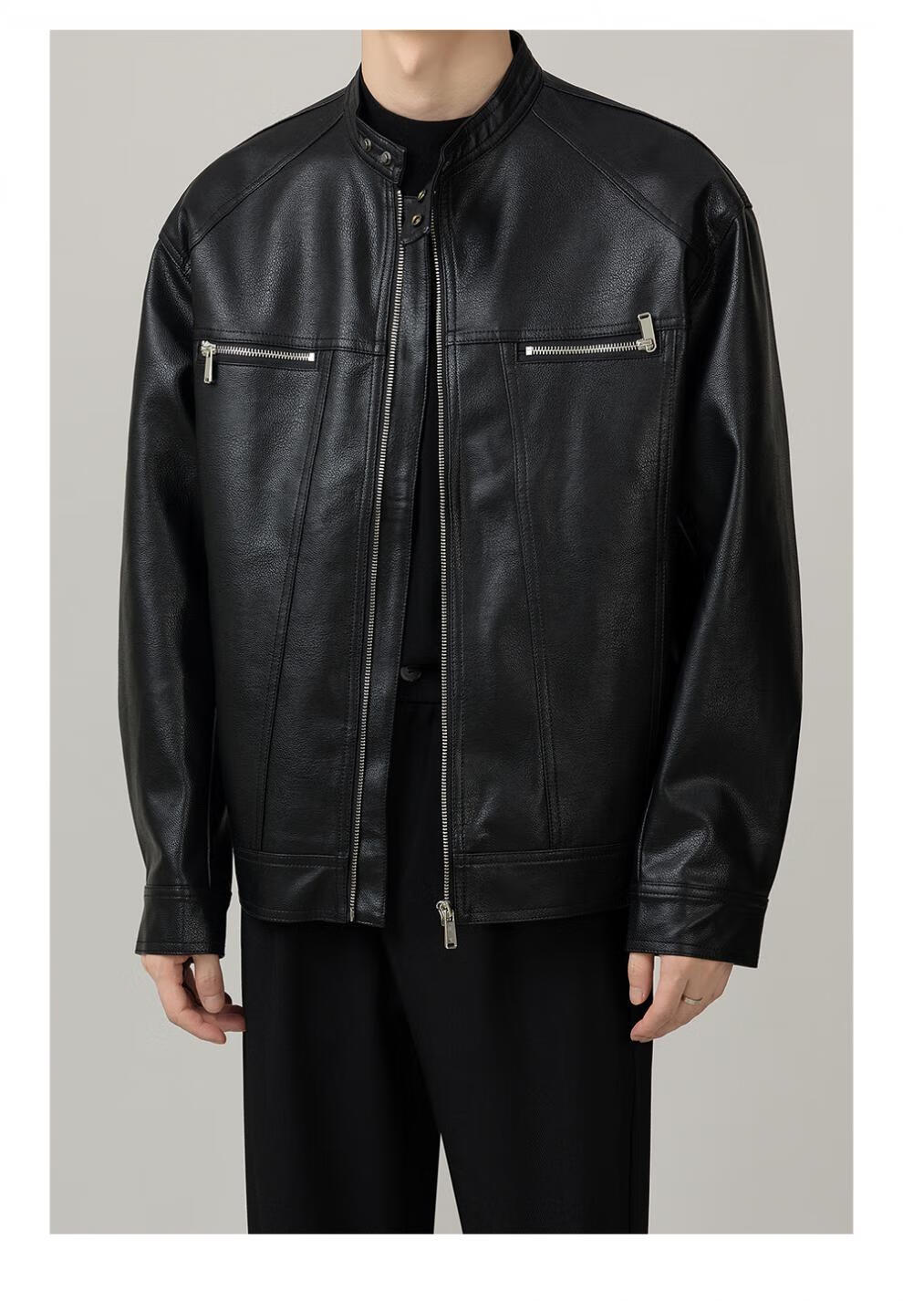 Falling Men's New Leather Jacket Stand Collar Fashionable Loose Design Trendy Casual Spring and Autumn Top Jacket Men Black M