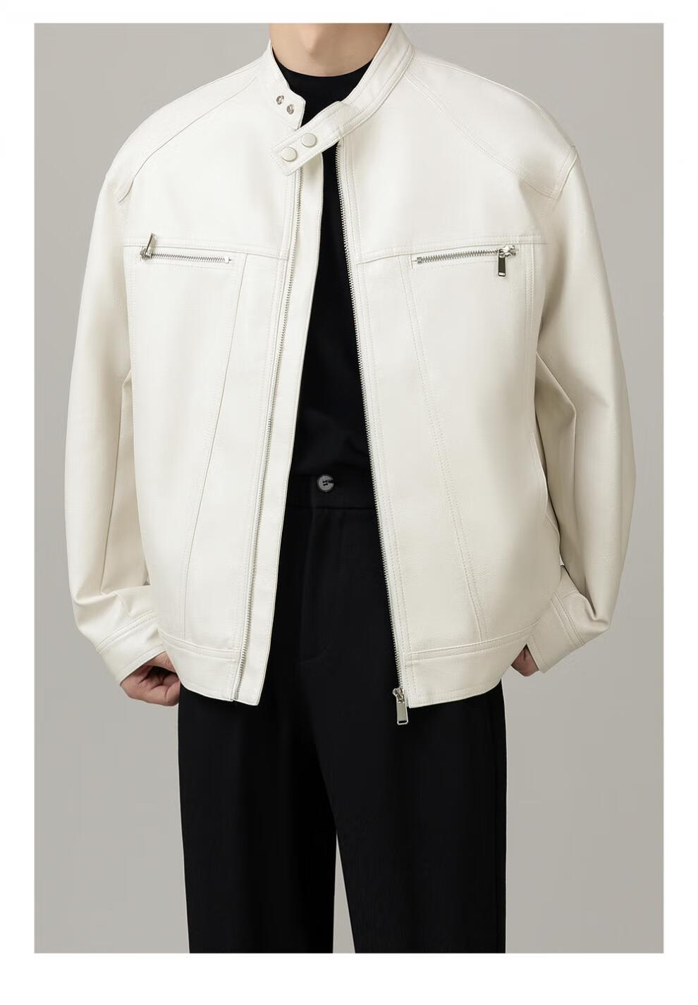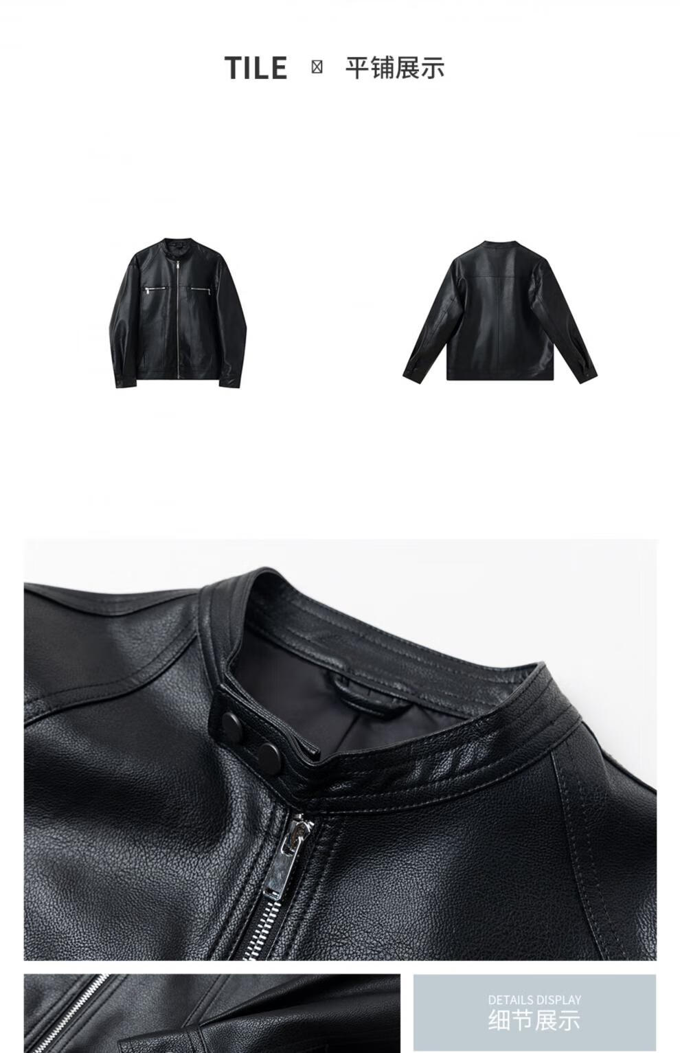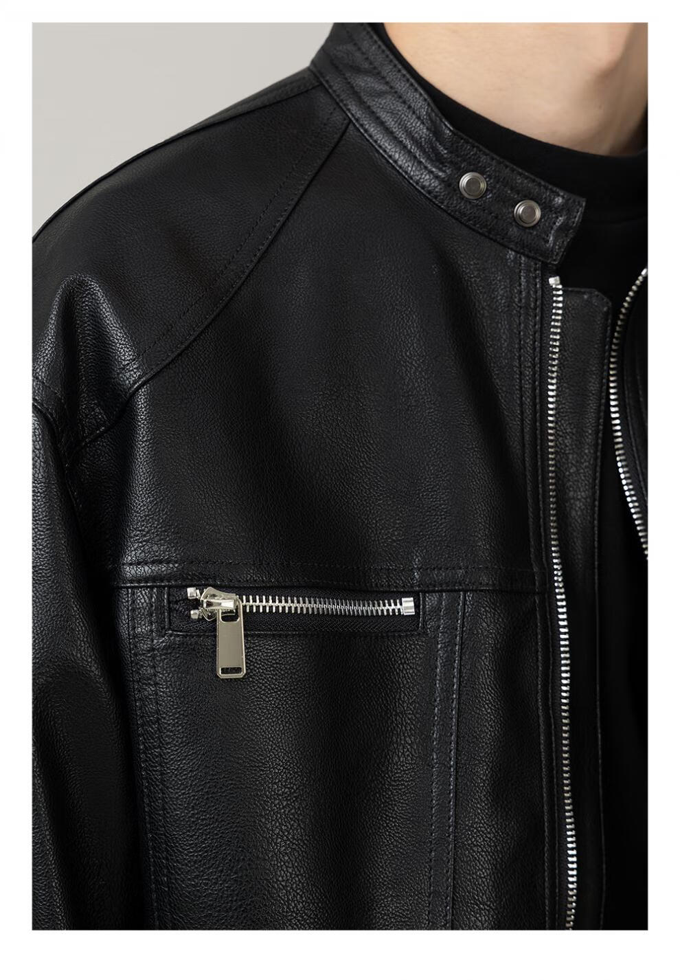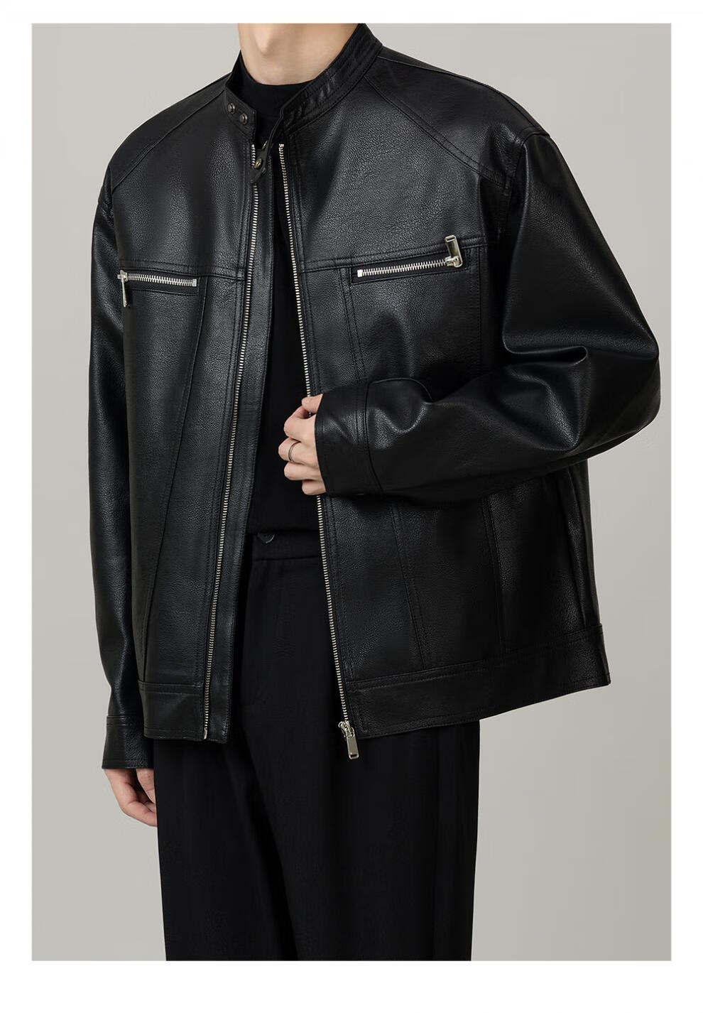 Falling Men's New Leather Jacket Stand Collar Fashionable Loose Design Trendy Casual Spring and Autumn Top Jacket Men Black M