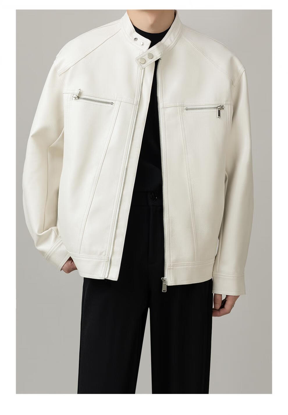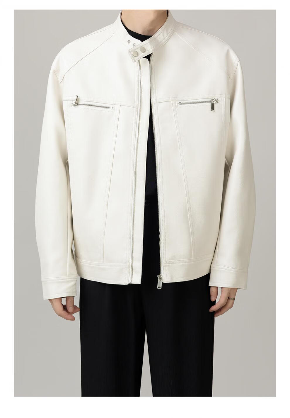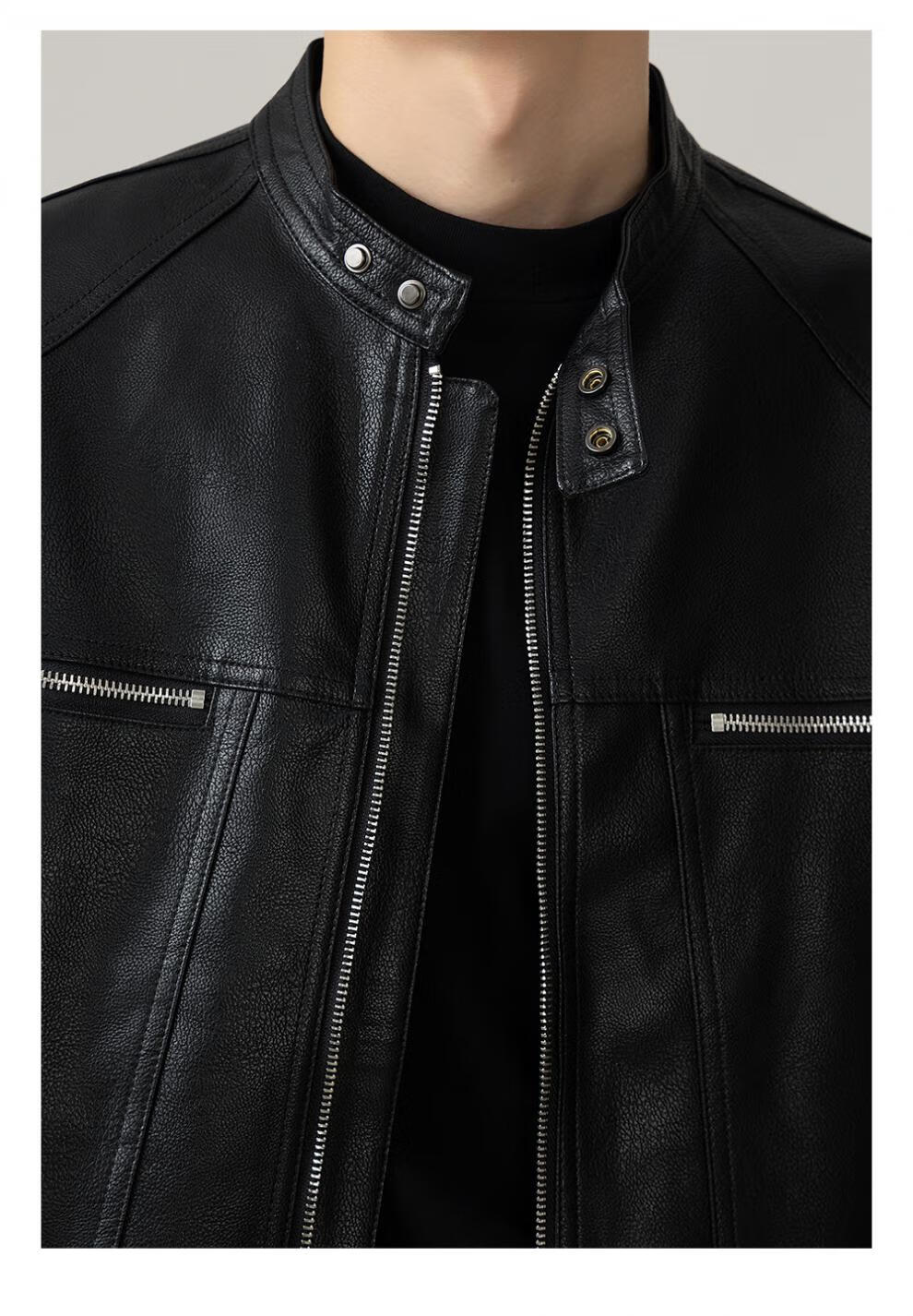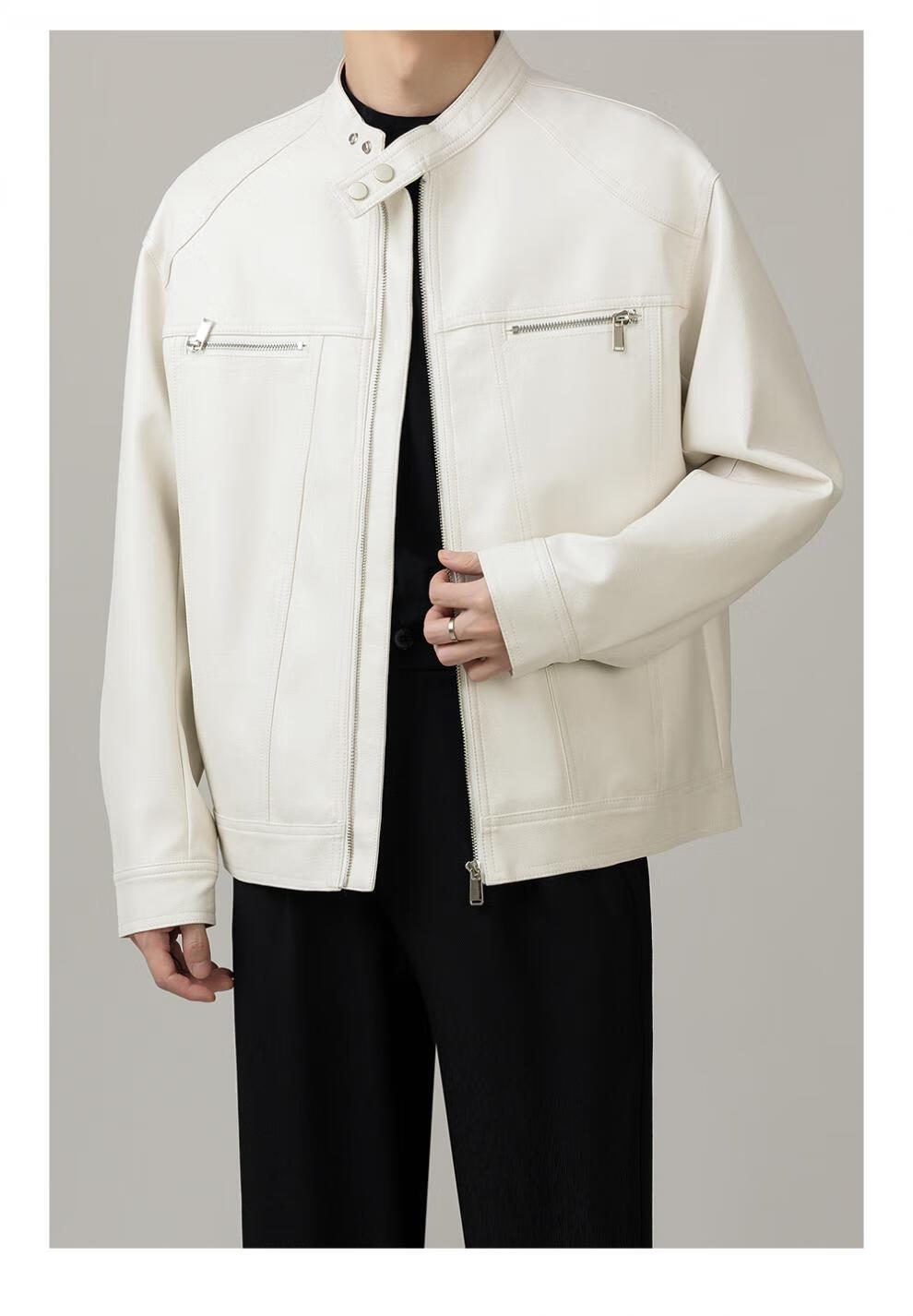 Falling Men's New Leather Jacket Stand Collar Fashionable Loose Design Trendy Casual Spring and Autumn Top Jacket Men Black M
