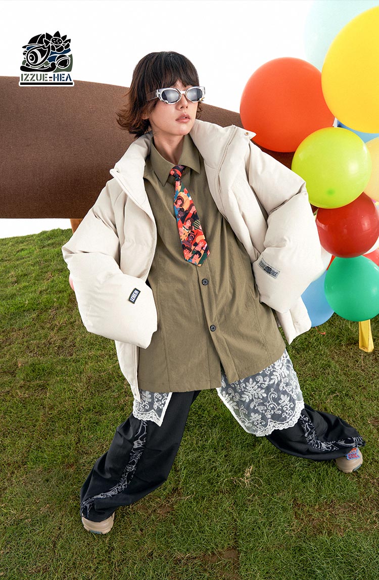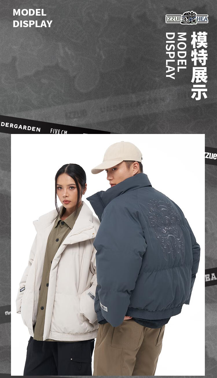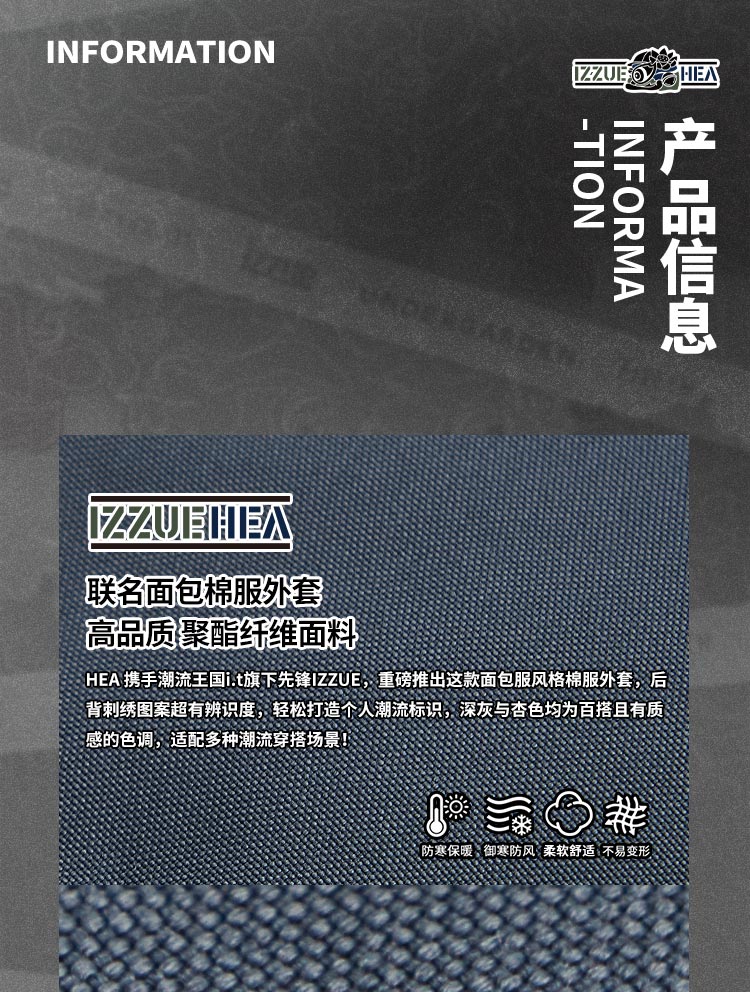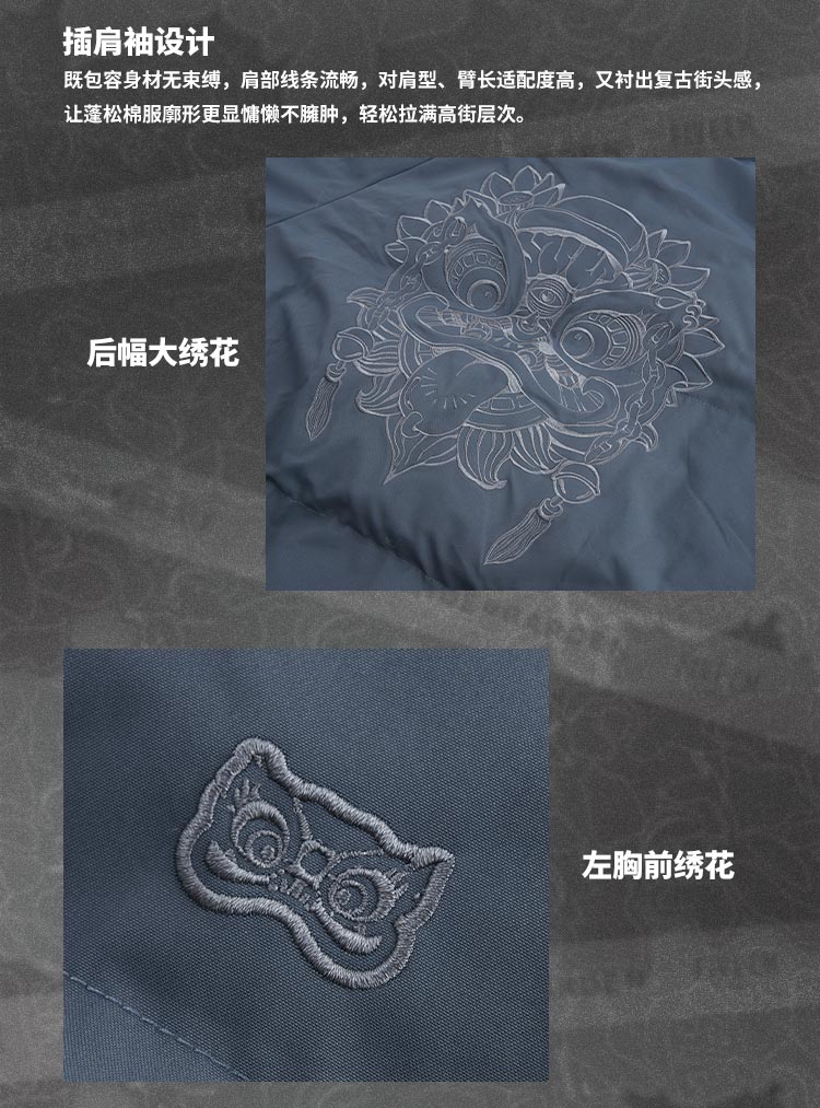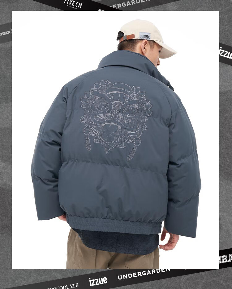 HEAx i.t izzue co-branded simple large lion head cotton coat for men and women in autumn and winter, warm and versatile couple jacket, dark gray L
