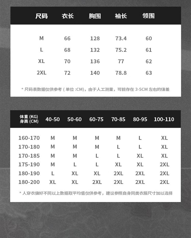 China (cm) 165 / 88-90 170 / 96-98 175 / 108-110 180 / 118-122 185 / 126-130