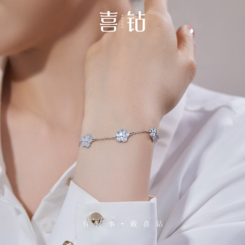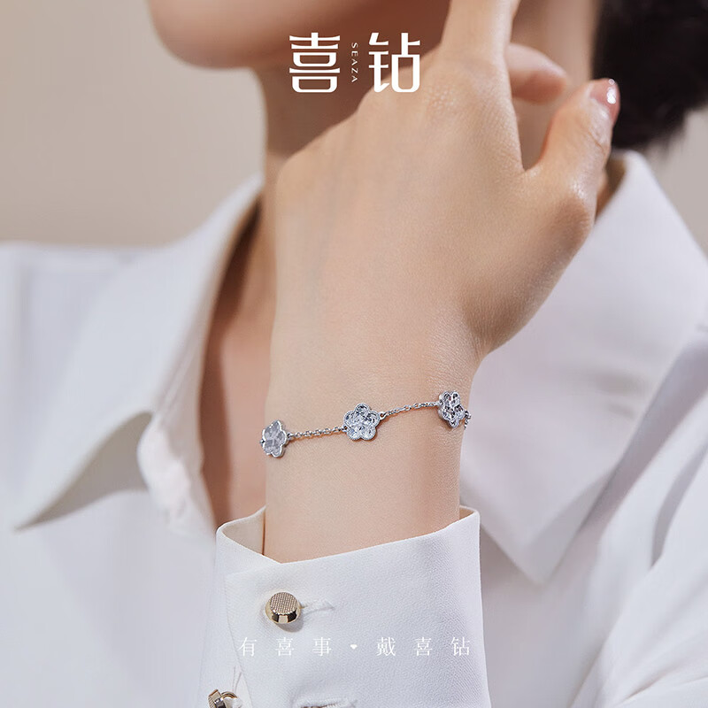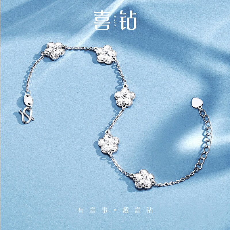 Diamond explosion pt950 platinum bracelet, flower plain gold bracelet, birthday gift for girlfriend or wife, about 6.77g 0.1g (length 16+3cm)-S13251