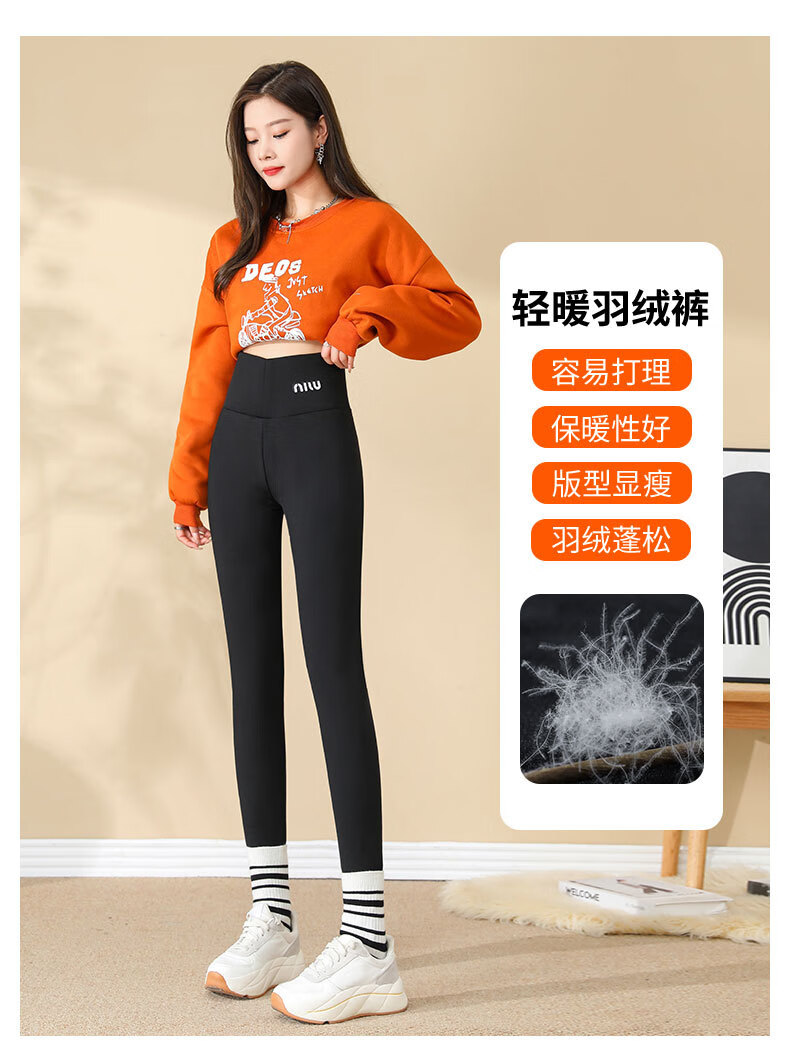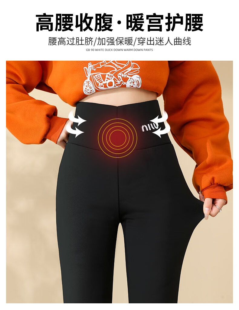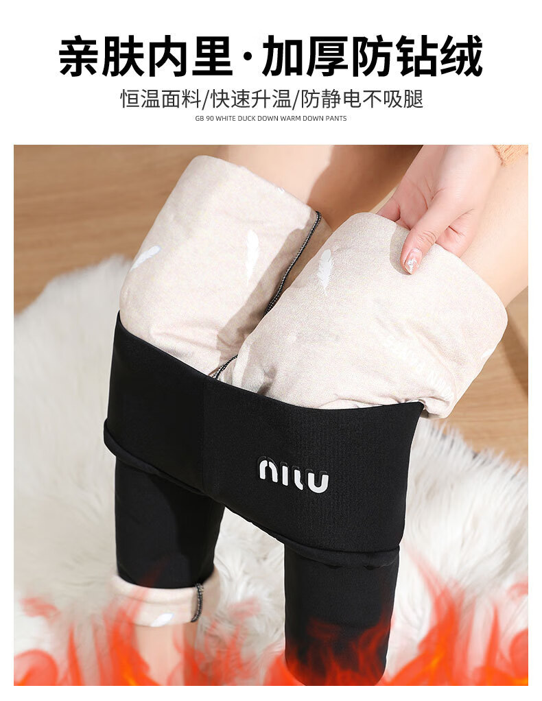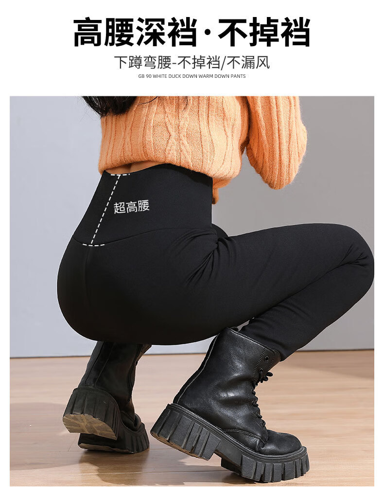 Snow Flying Barbie Down Pants Women's Winter Outerwear Fashion 2025 New Ultra-High Waist Warm Bottoming Thick Cotton Pants Shark Pants - 40 Degree Coldproof Pants Black/No Pocket M Small Down Pants