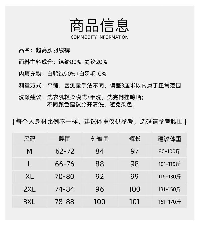 China (cm) 160-165/84-86 165-170 / 88-90 167-172 / 92-96 168-173 / 98-102 170-176 / 106-110