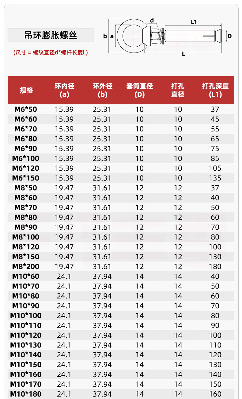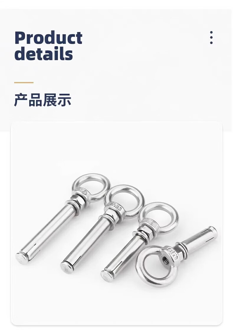 Fengji 304 stainless steel expansion screw with ring hook with ring extended universal lifting ring expansion bolt M6M8M10M12 M6*60 (lifting ring)-5 pcs