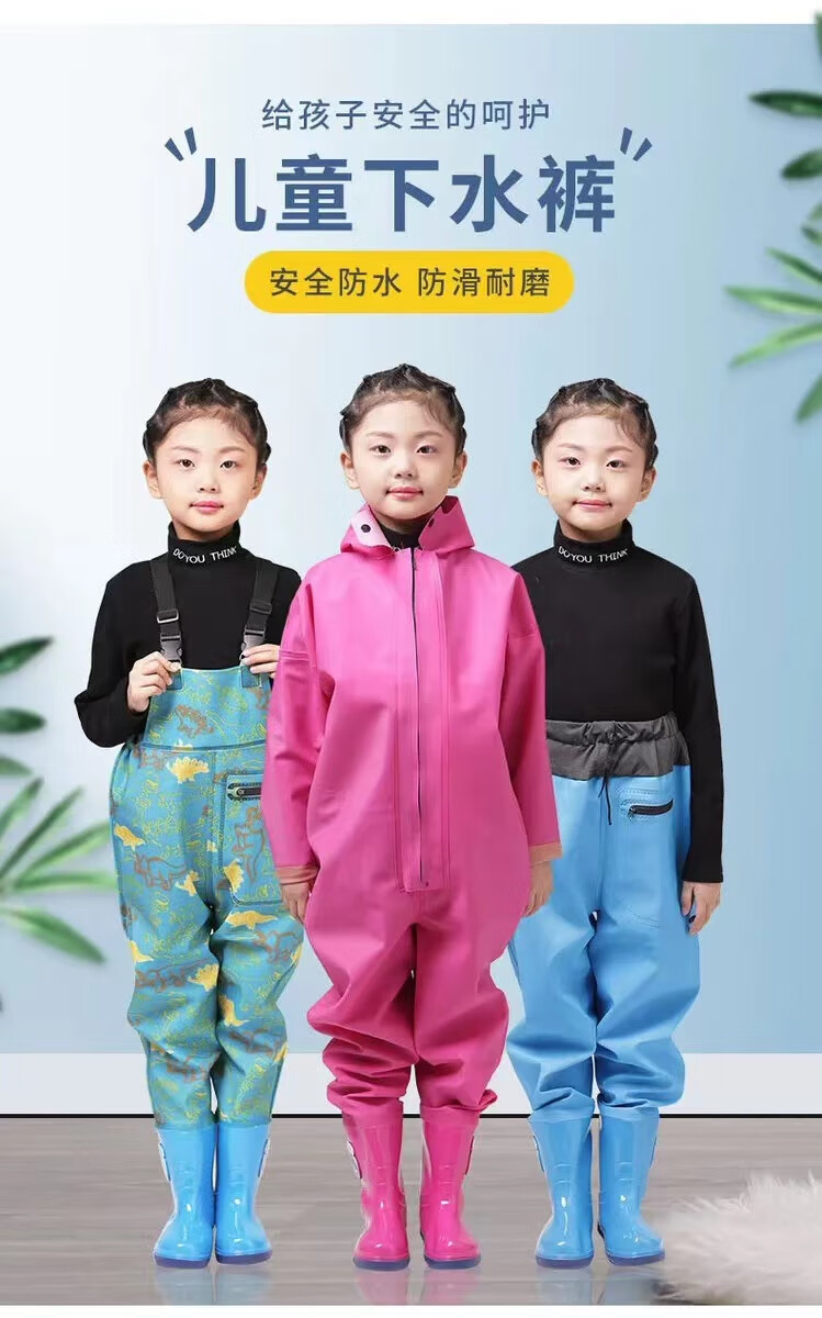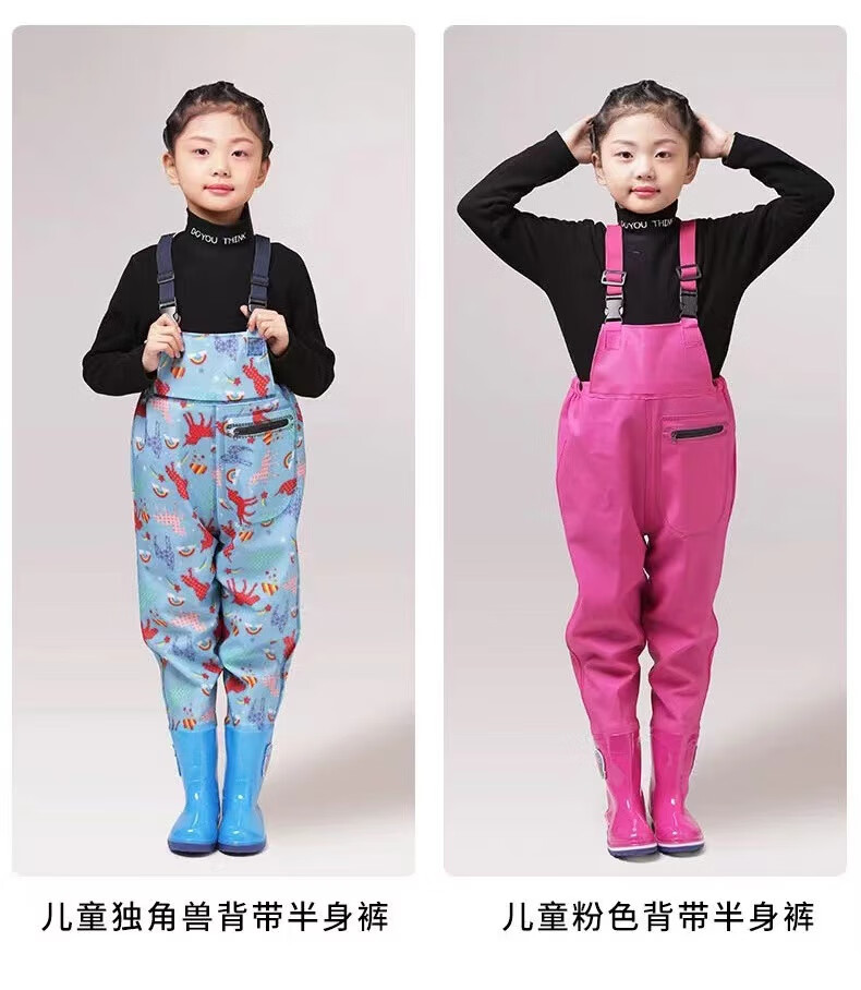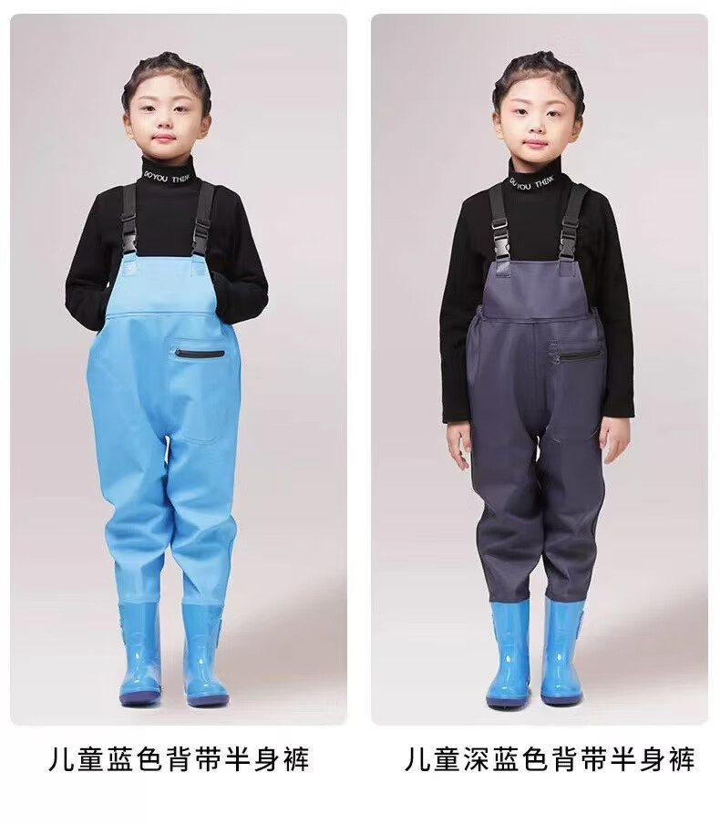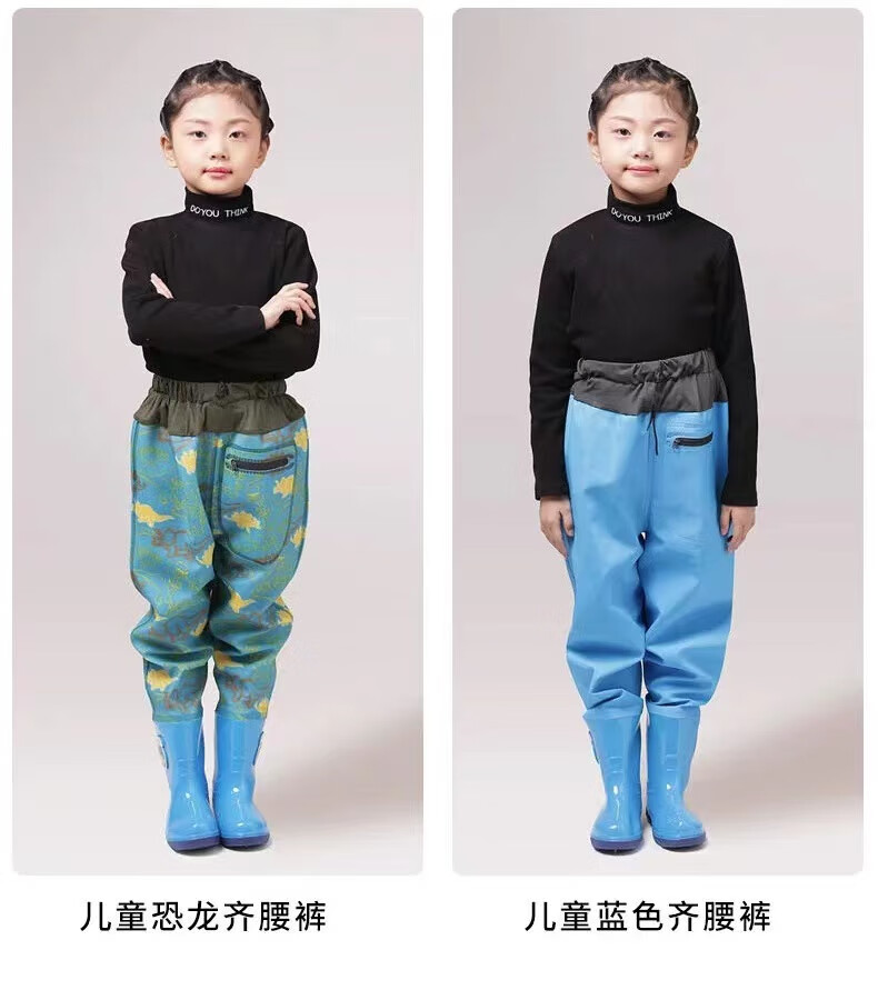 Chuangjingyi chooses to catch the sea rain children children play underwater water pants kindergarten children half body waterproof one-piece clothes for men and women to catch the sea rain children sky blue overalls zipper pocket 40 24 shoe inner length 15 cm