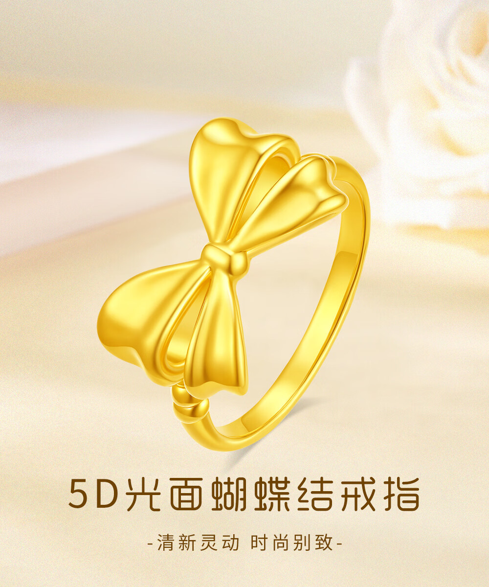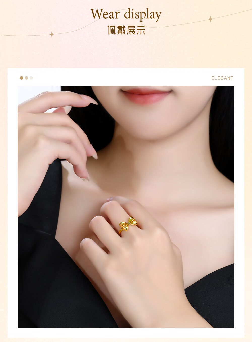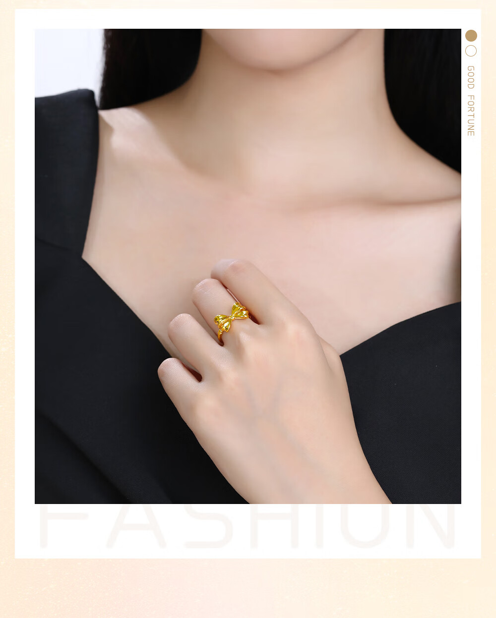 Jinzhifu Bow Gold Ring Girls Shiny Gold Ring for Girlfriend, Wife Confession Valentine's Day Gift, Shiny Style, Approximately 0.75 Grams (Refund for More - No. 16)