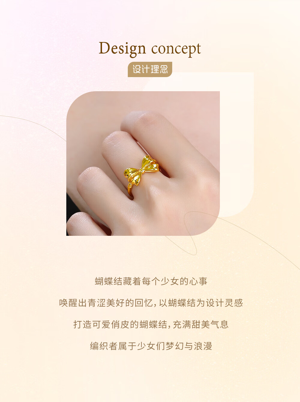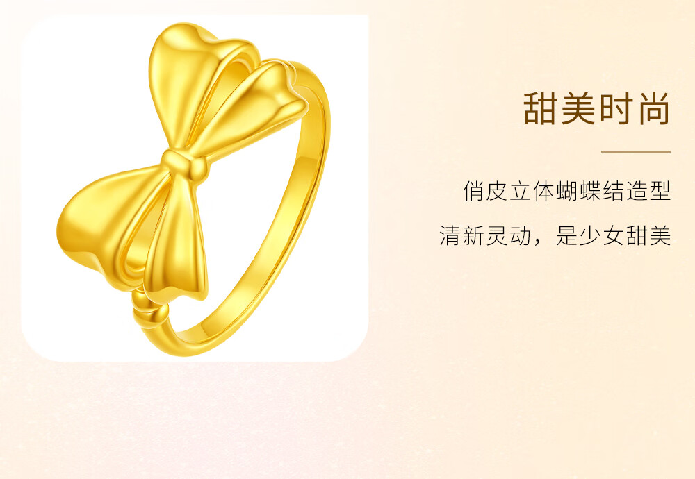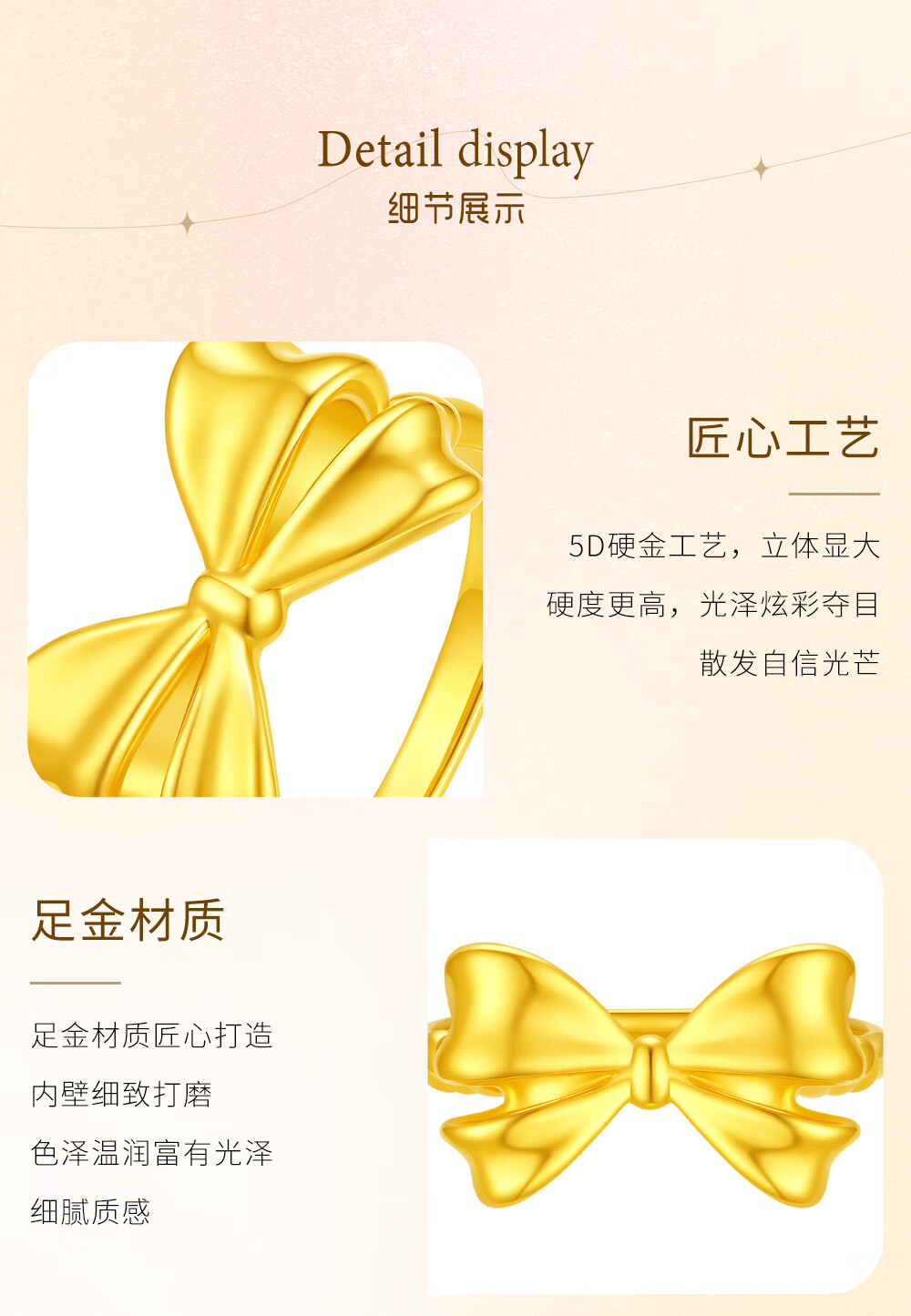Jinzhifu Bow Gold Ring Girls Shiny Gold Ring for Girlfriend, Wife Confession Valentine's Day Gift, Shiny Style, Approximately 0.75 Grams (Refund for More - No. 16)