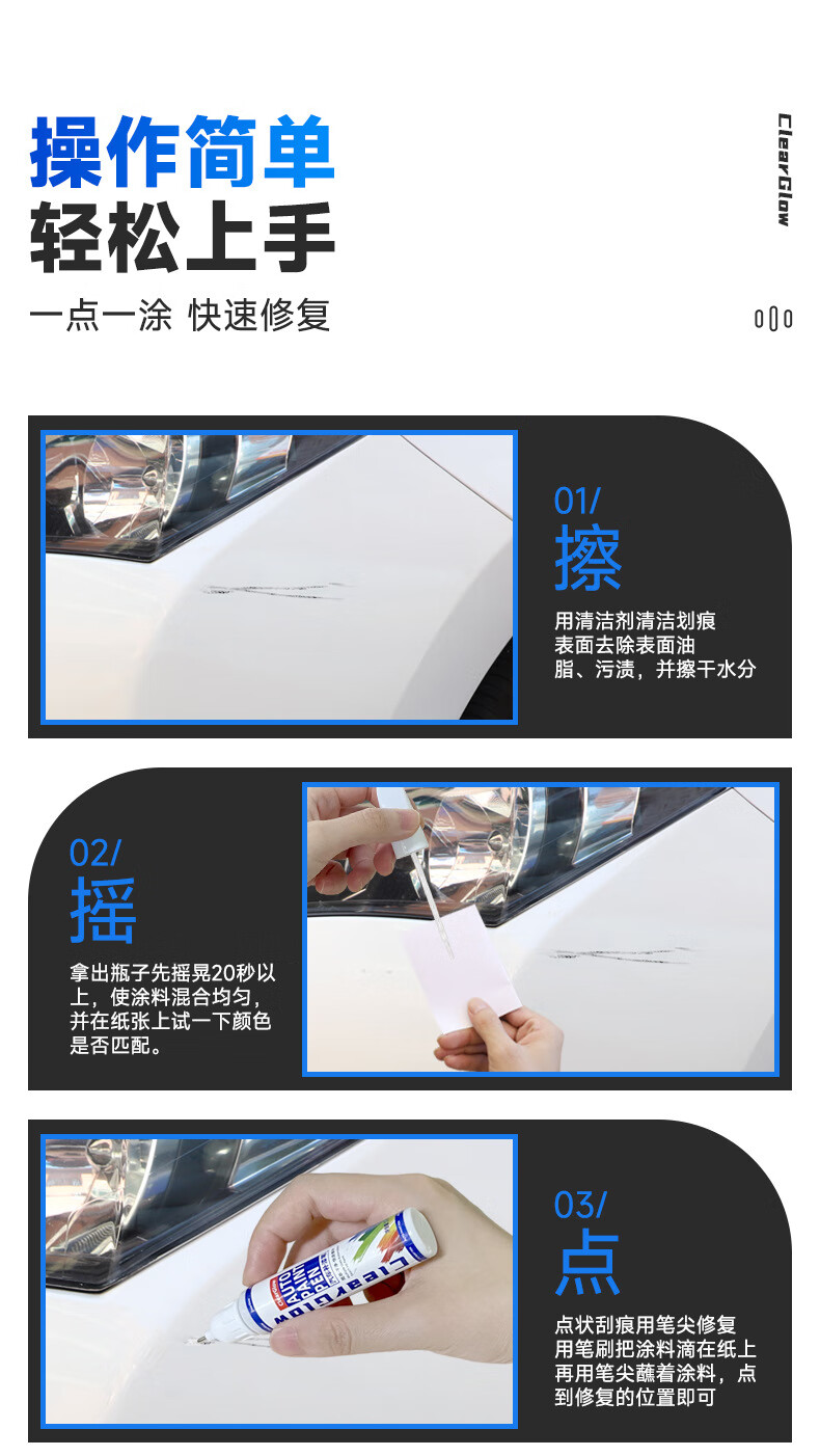 Paint touch-up pen, car-specific white paint mark removal, car scratch repair and repair artifact, spot paint pen, scratch paint pen, white