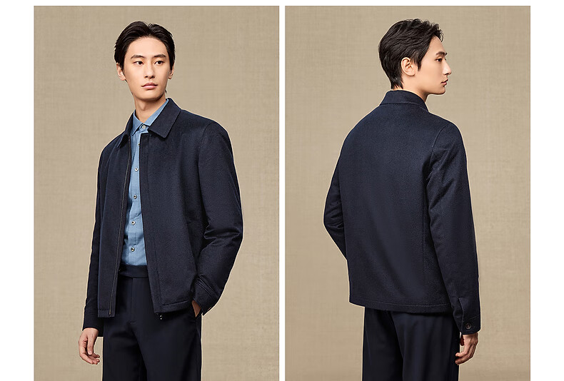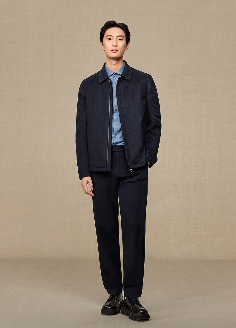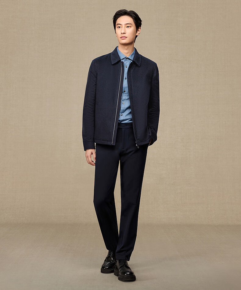 Ordos 1980 pure cashmere lapel comfortable commuter jacket men's cashmere coat autumn and winter 1980 blue 2XL 185/104A