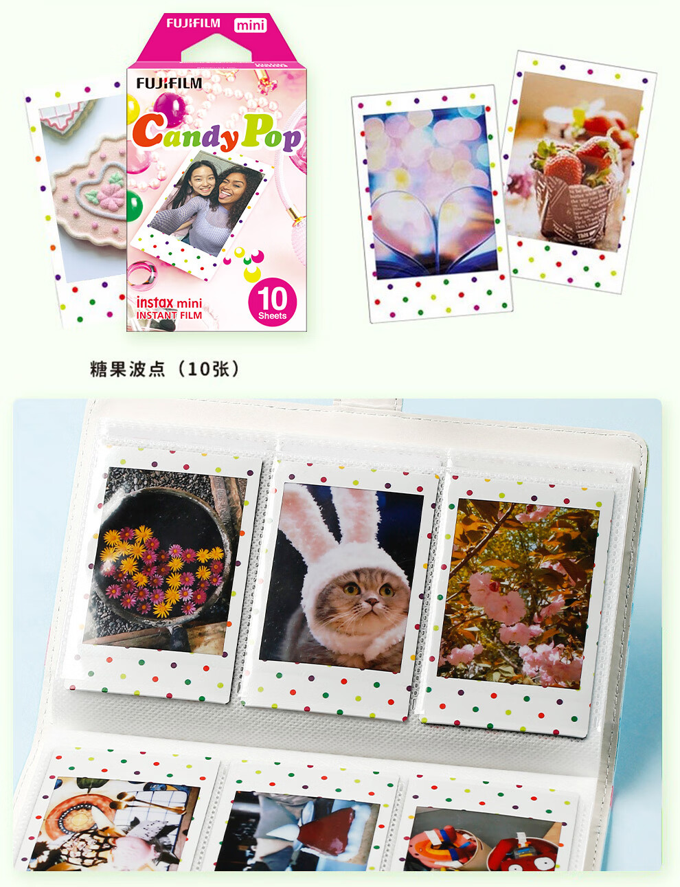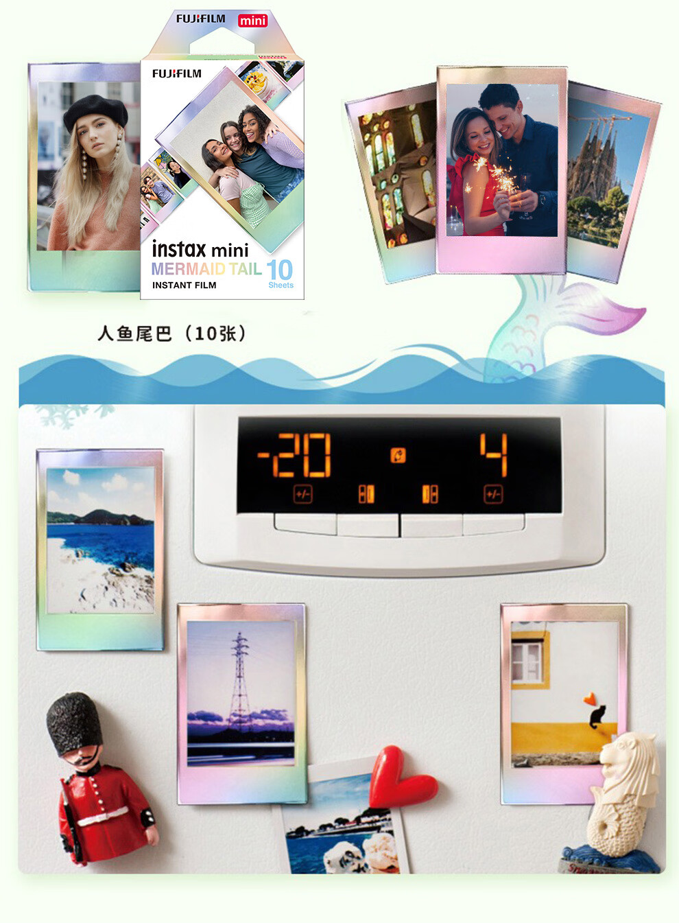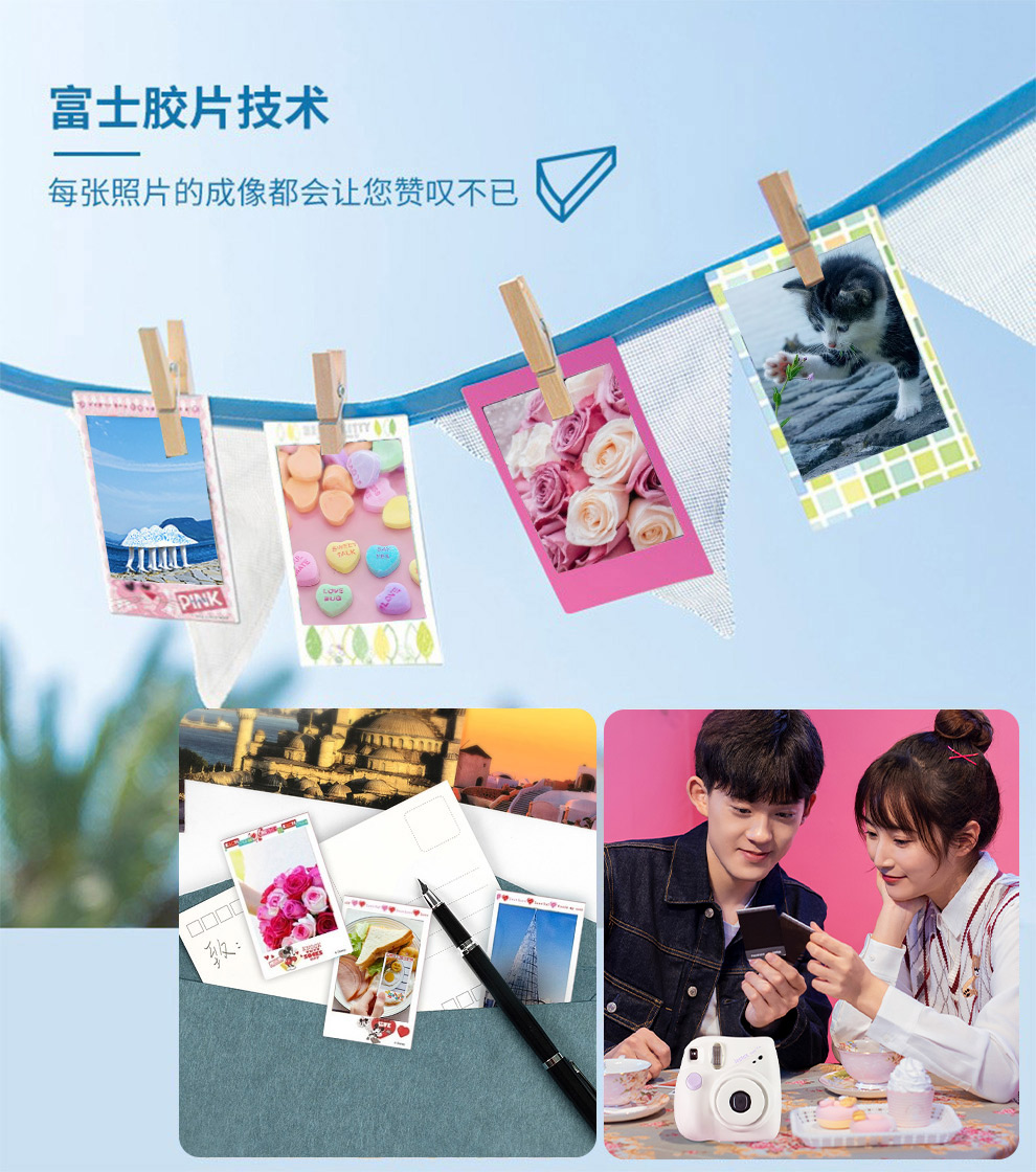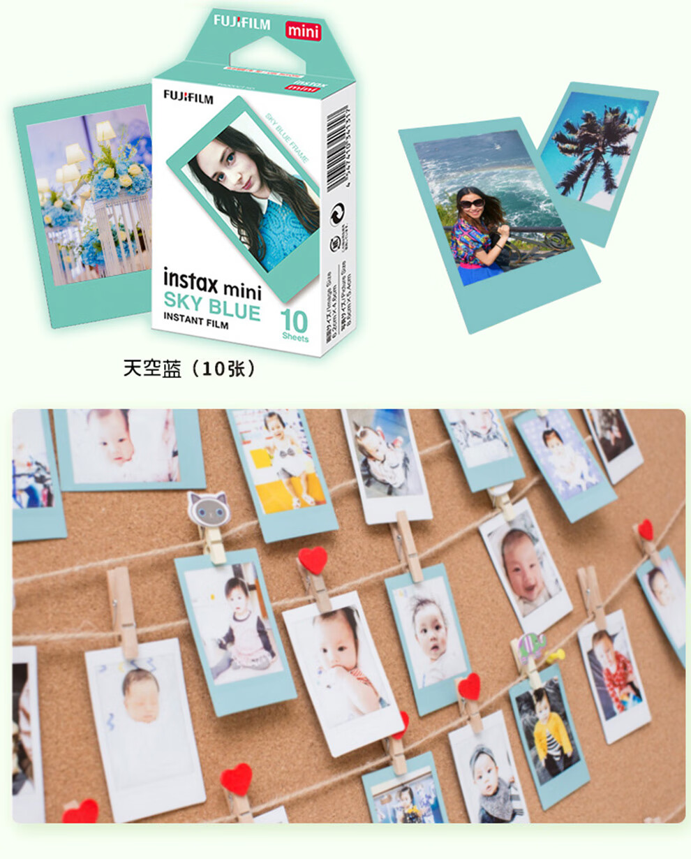Fuji (FUJIFILM) instax instant camera 3-inch mini photo paper film roll 3-inch sky blue + photo album + storage box + refrigerator magnet official standard configuration
