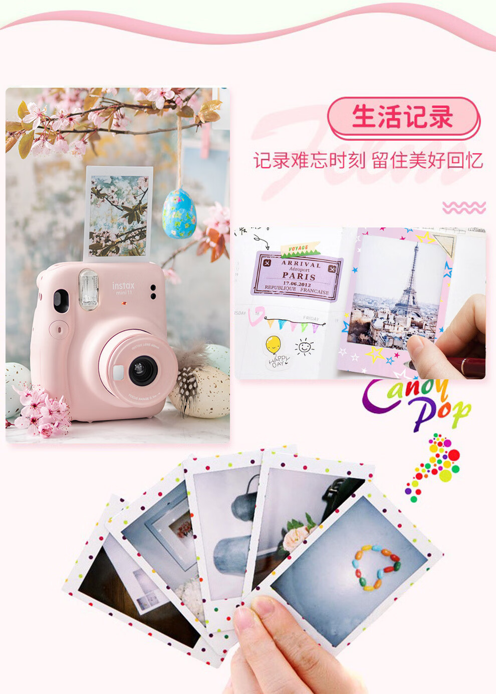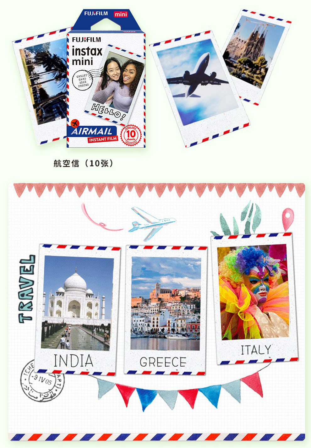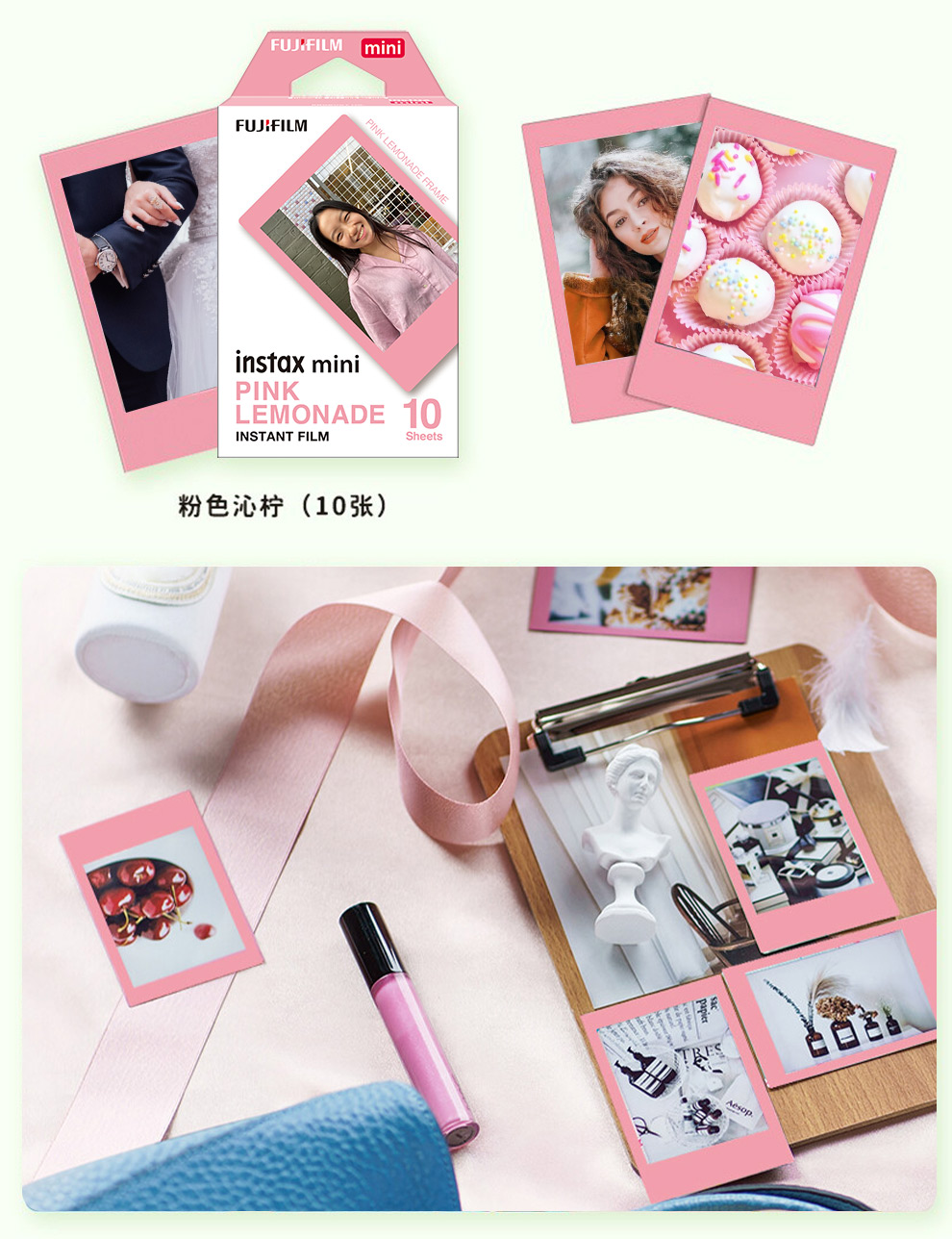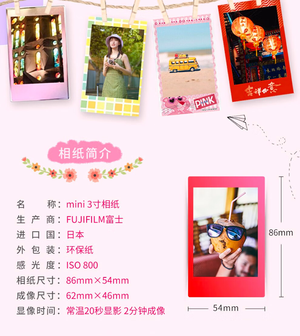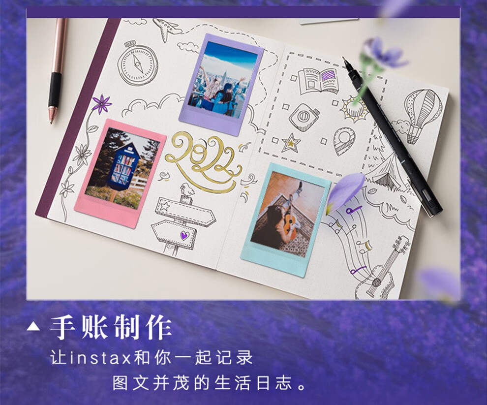 Fuji (FUJIFILM) instax instant camera 3-inch mini photo paper film roll 3-inch sky blue + photo album + storage box + refrigerator magnet official standard configuration