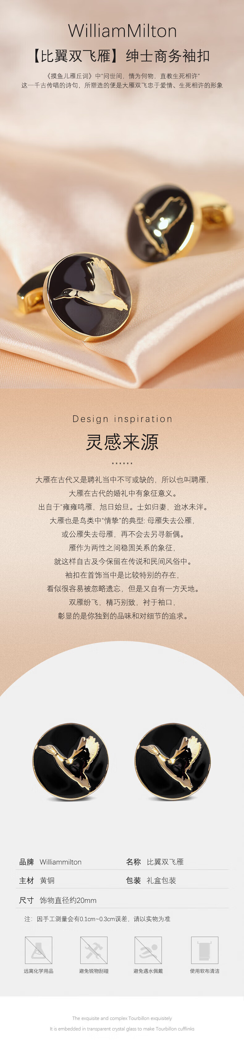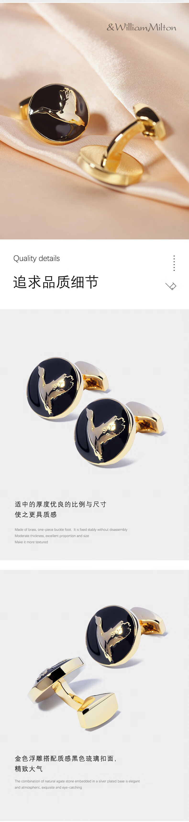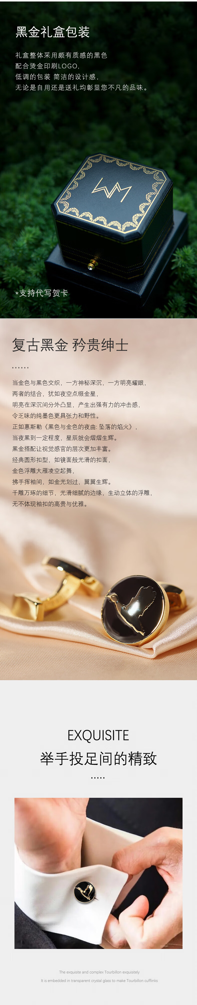 WILLIAM MILTON Biyi Shuangfeiyan black gold embossed cufflinks men's suit hunting cufflinks high-end business custom gift box