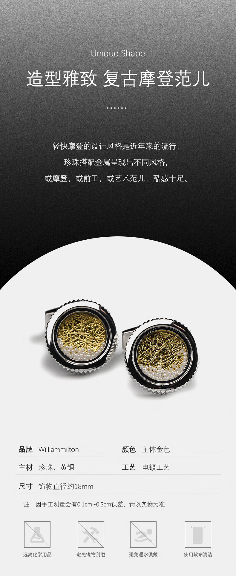 WILLIAM MILTON French style flowing pearl cufflinks men's romantic French cuff nails light luxury fashion wedding gift gift box