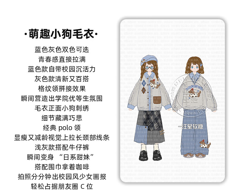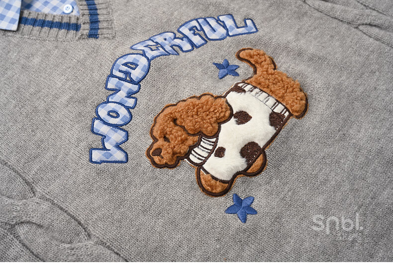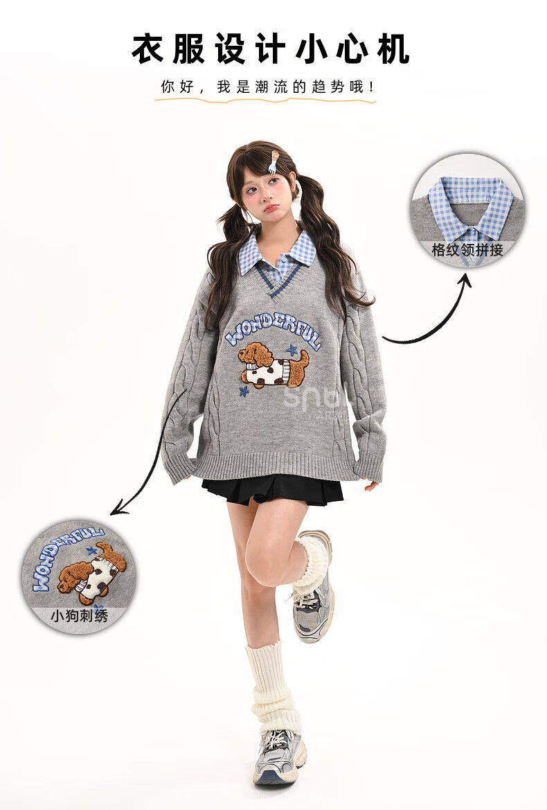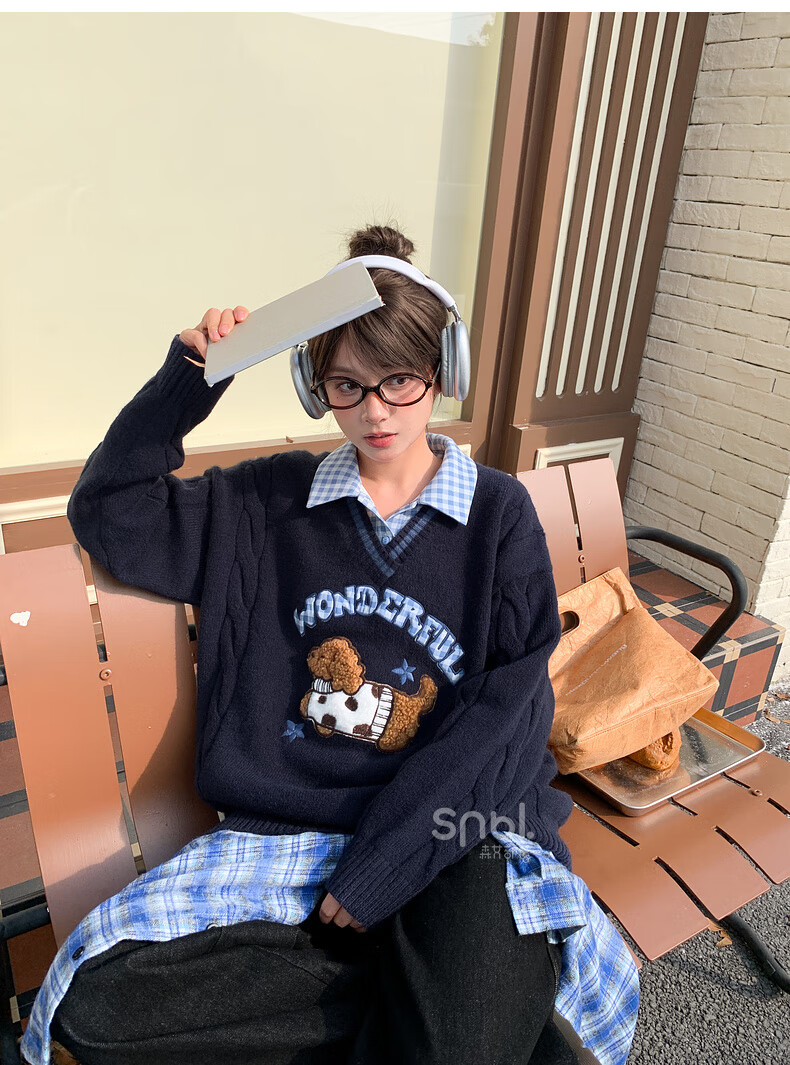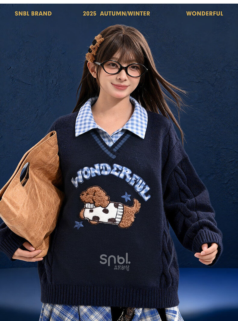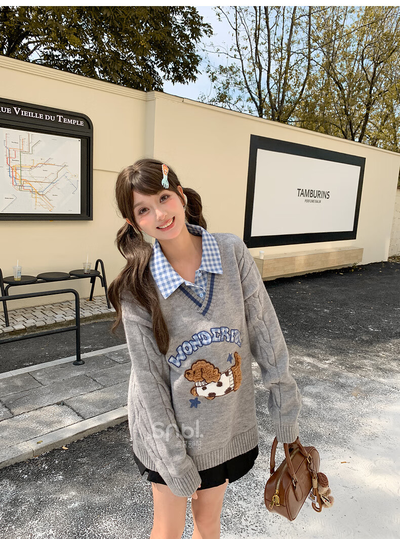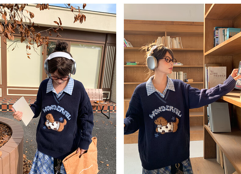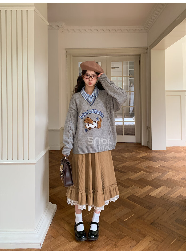 Mori Girl Tribe Mori Girl Tribe College Style Cartoon Embroidered Pullover Sweater Women's New Fake Two-piece Design Warm Sweater Winter Blue Sweater M