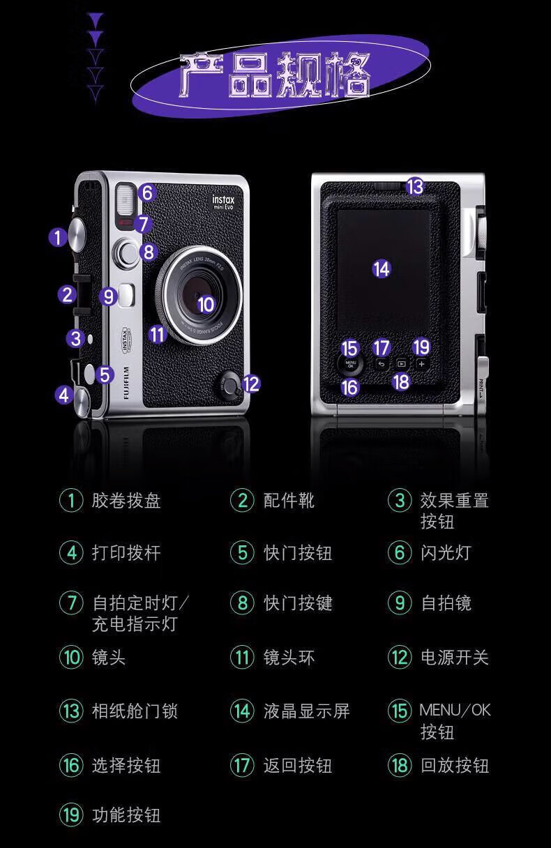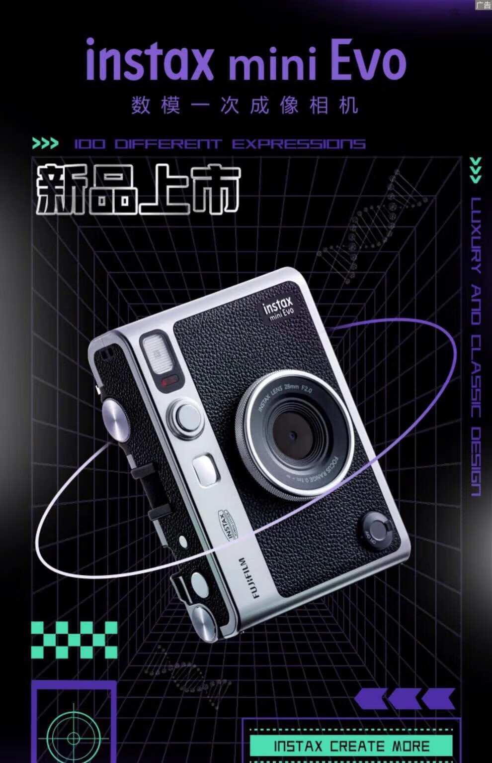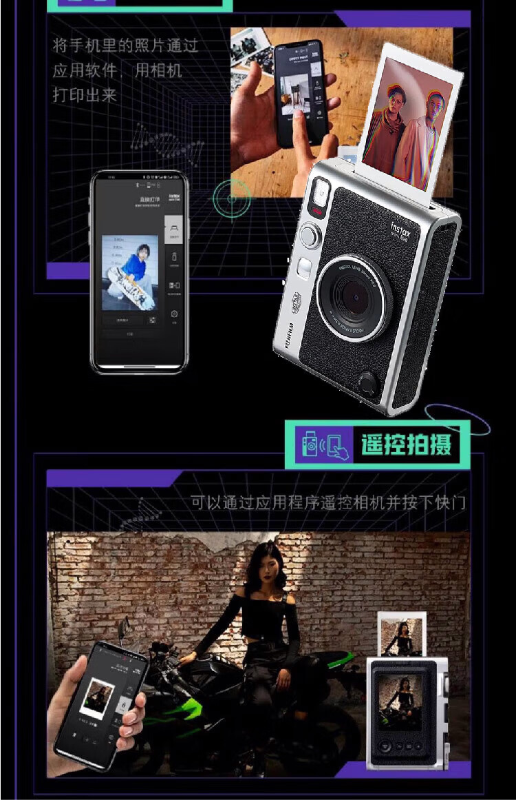 Fuji (FUJIFILM) instax mini EVO instant camera upgrade model minievo one-time imaging retro mini EVO black ins set = camera + 10 photo papers + case + book (hot sale)