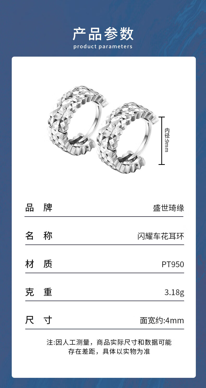 Shengshi Qiyuan platinum earrings pt950 genuine platinum earrings earrings ear buckles ear hooks platinum earrings sparkling car flower earrings 3g (pair)