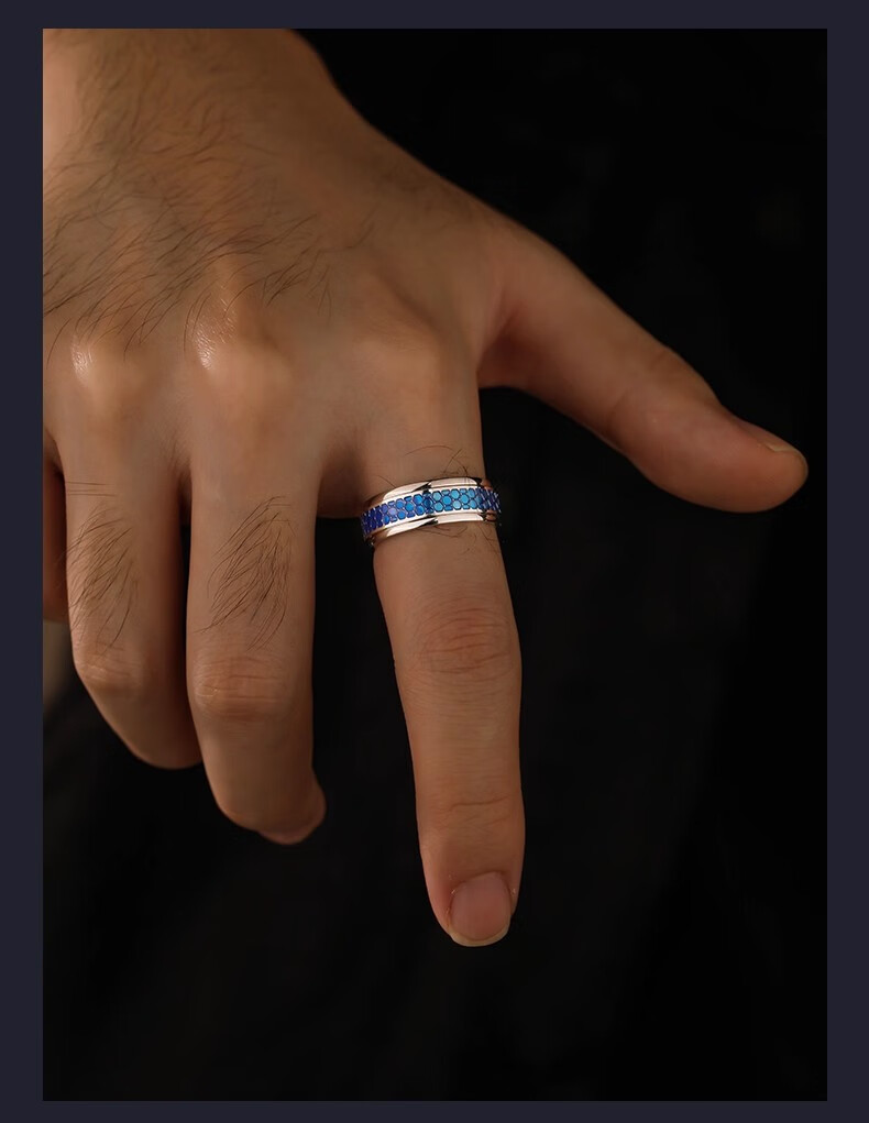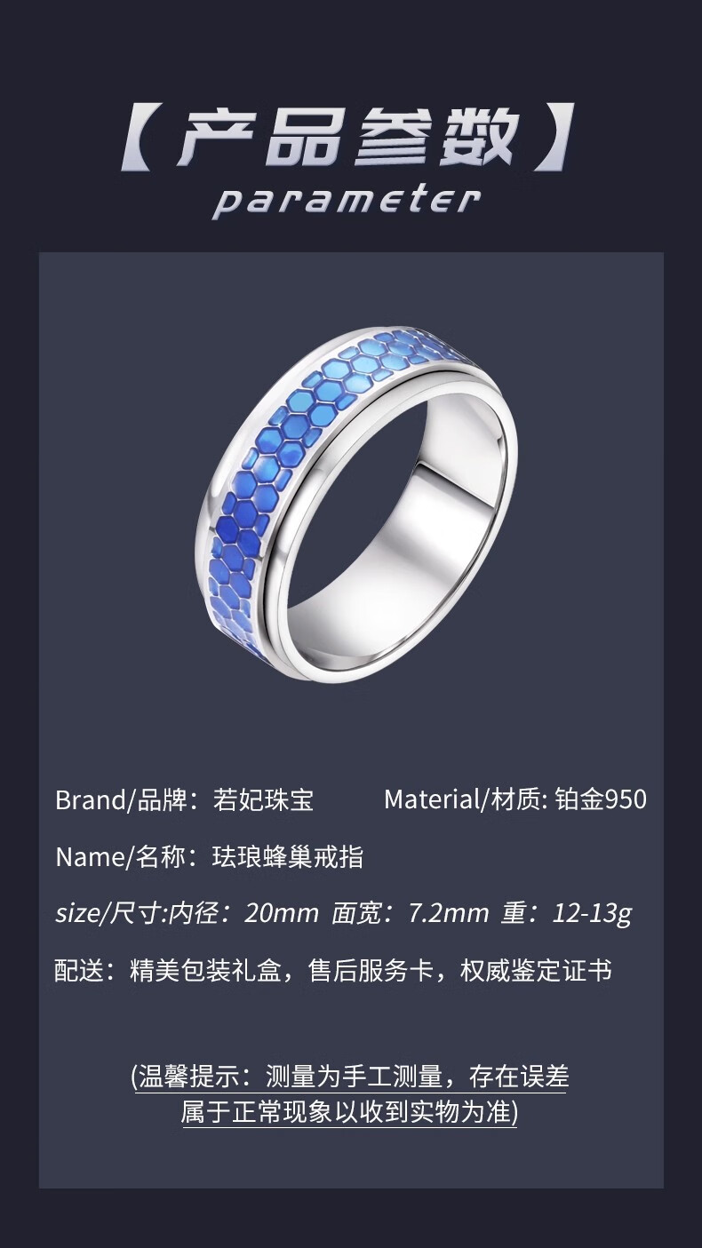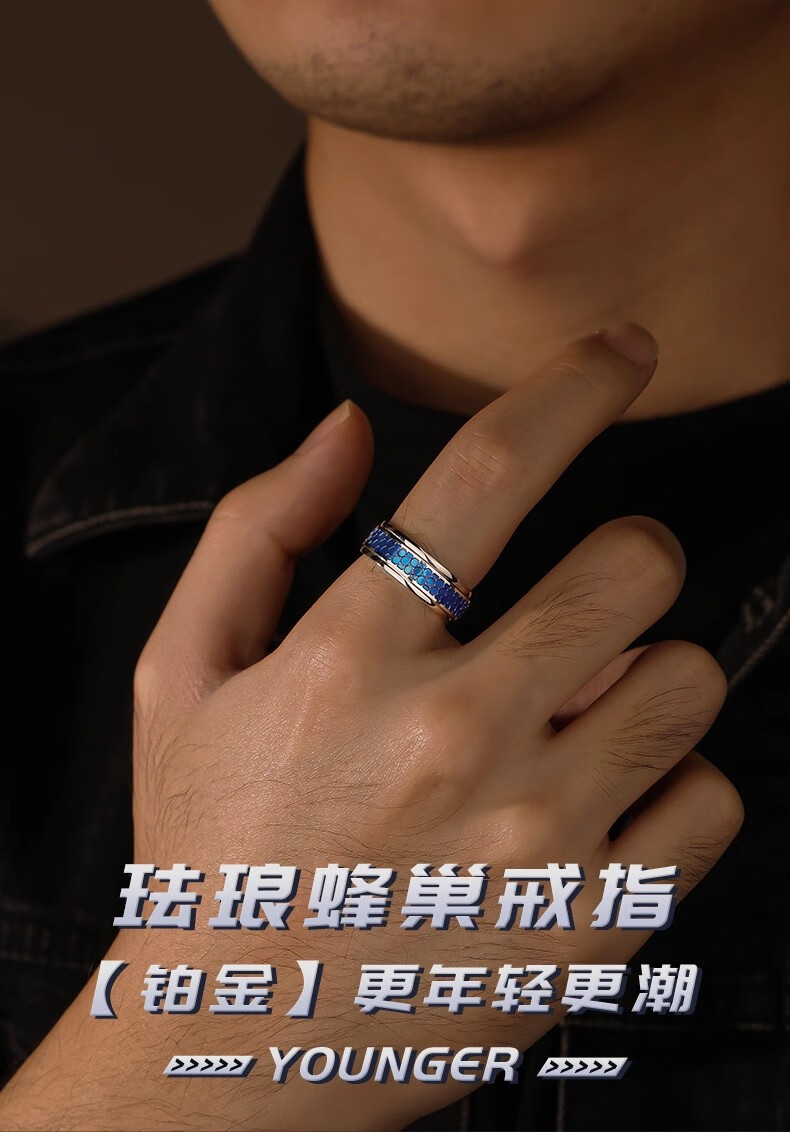 Ruofei platinum ring for men pt950 platinum men's ring enamel craft honeycomb ring can rotate platinum plate ring for men platinum enamel honeycomb ring No. 15 12-13 grams