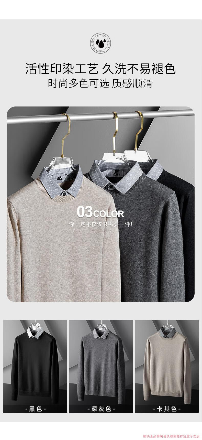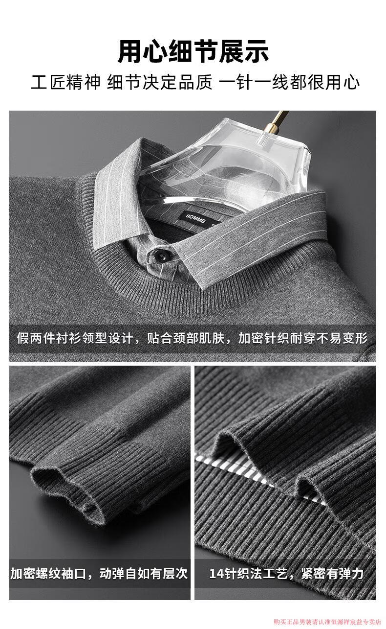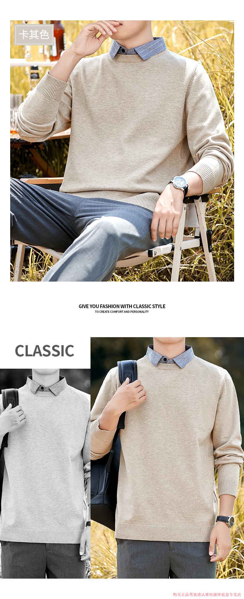 Hengyuanxiang relaxed Henry collar fake two-piece sweater casual versatile sweater for men/ready in stock Khaki M (90-110Jin Jin equals 0.5kg)