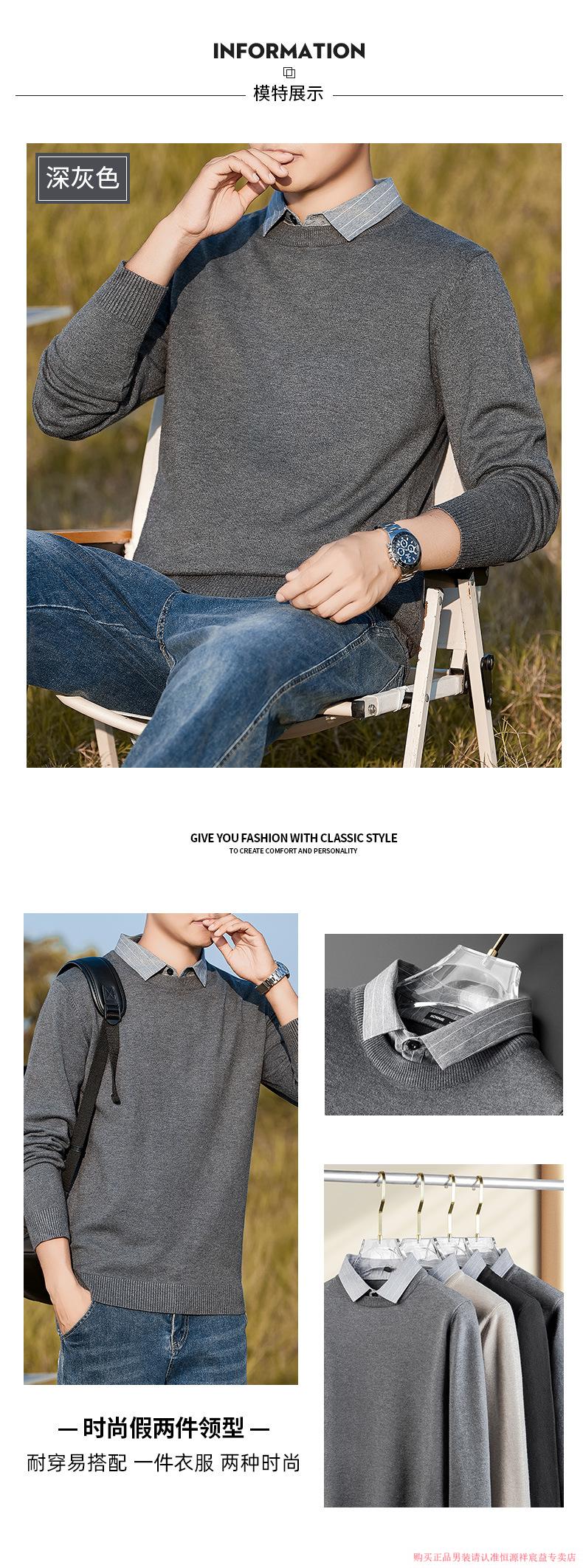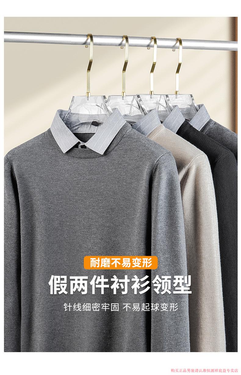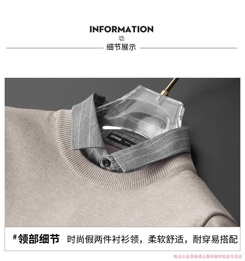 Hengyuanxiang relaxed Henry collar fake two-piece sweater casual versatile sweater for men/ready in stock Khaki M (90-110Jin Jin equals 0.5kg)