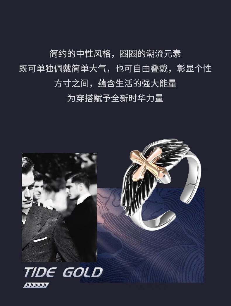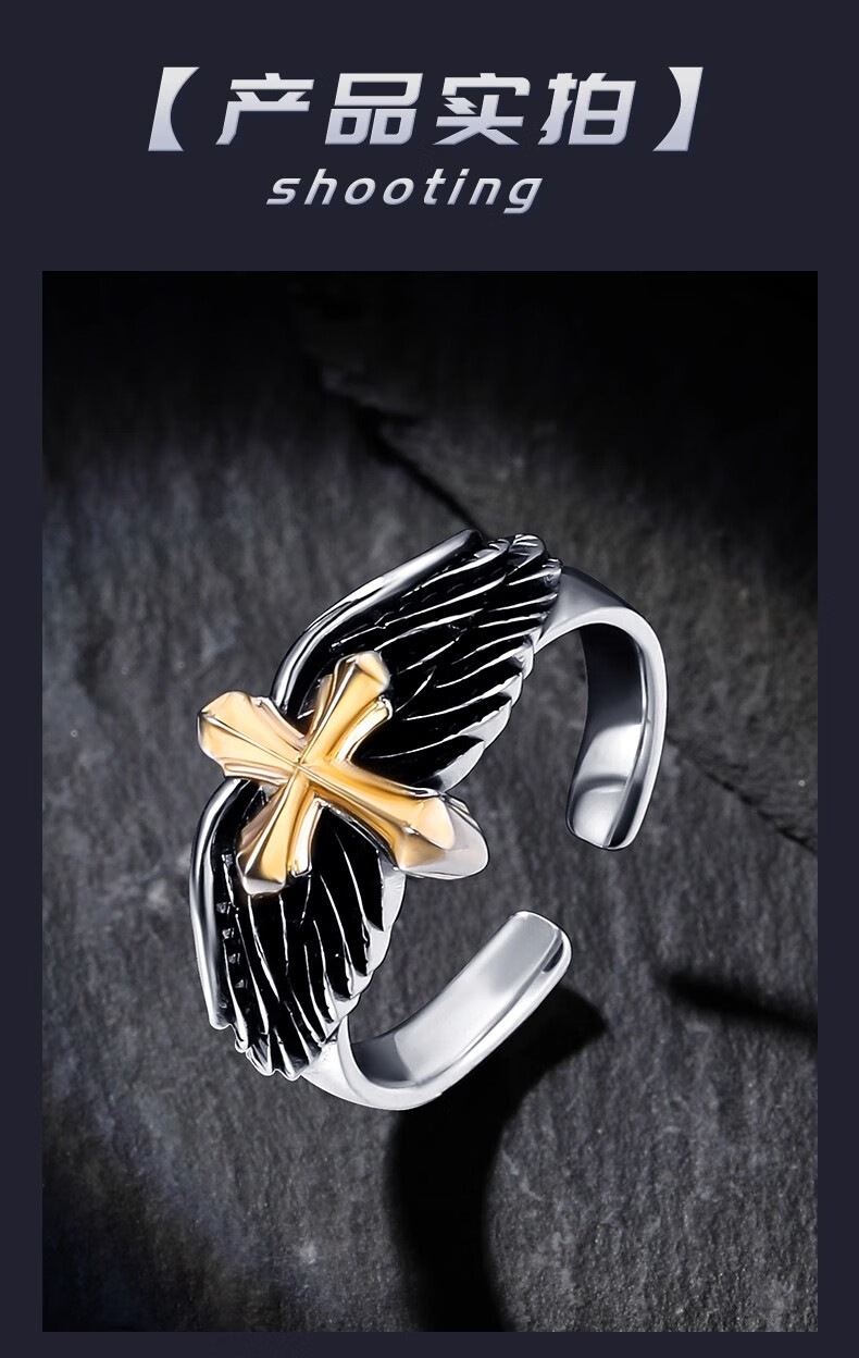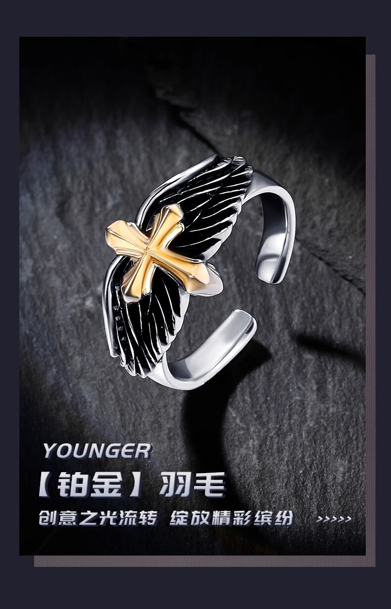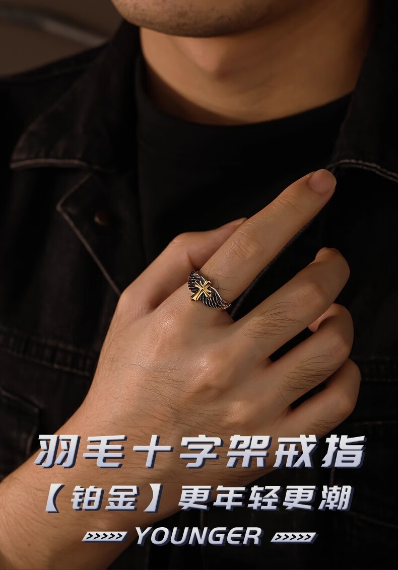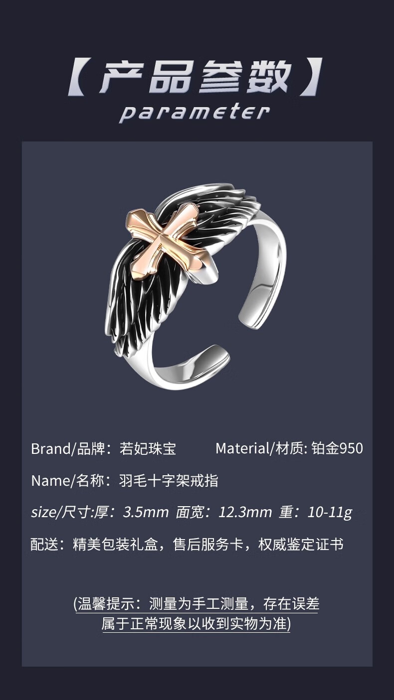 Ruofei platinum ring men's pt950 platinum men's ring retro trendy brand electric black gold three-dimensional cross ring live platinum feather cross ring 10-11 grams (live)