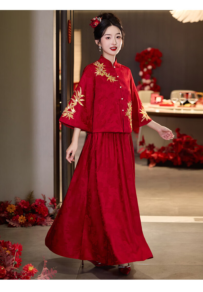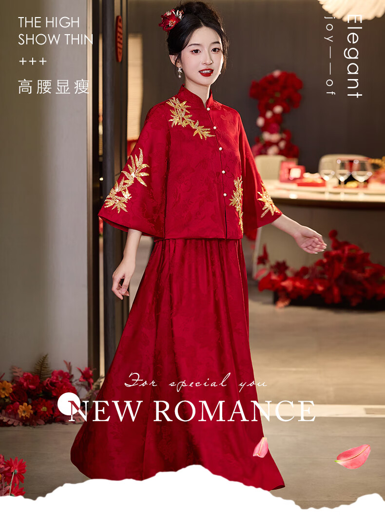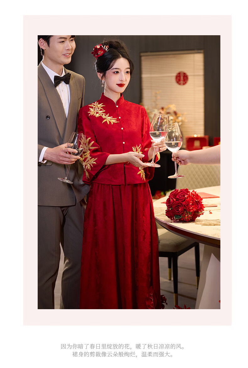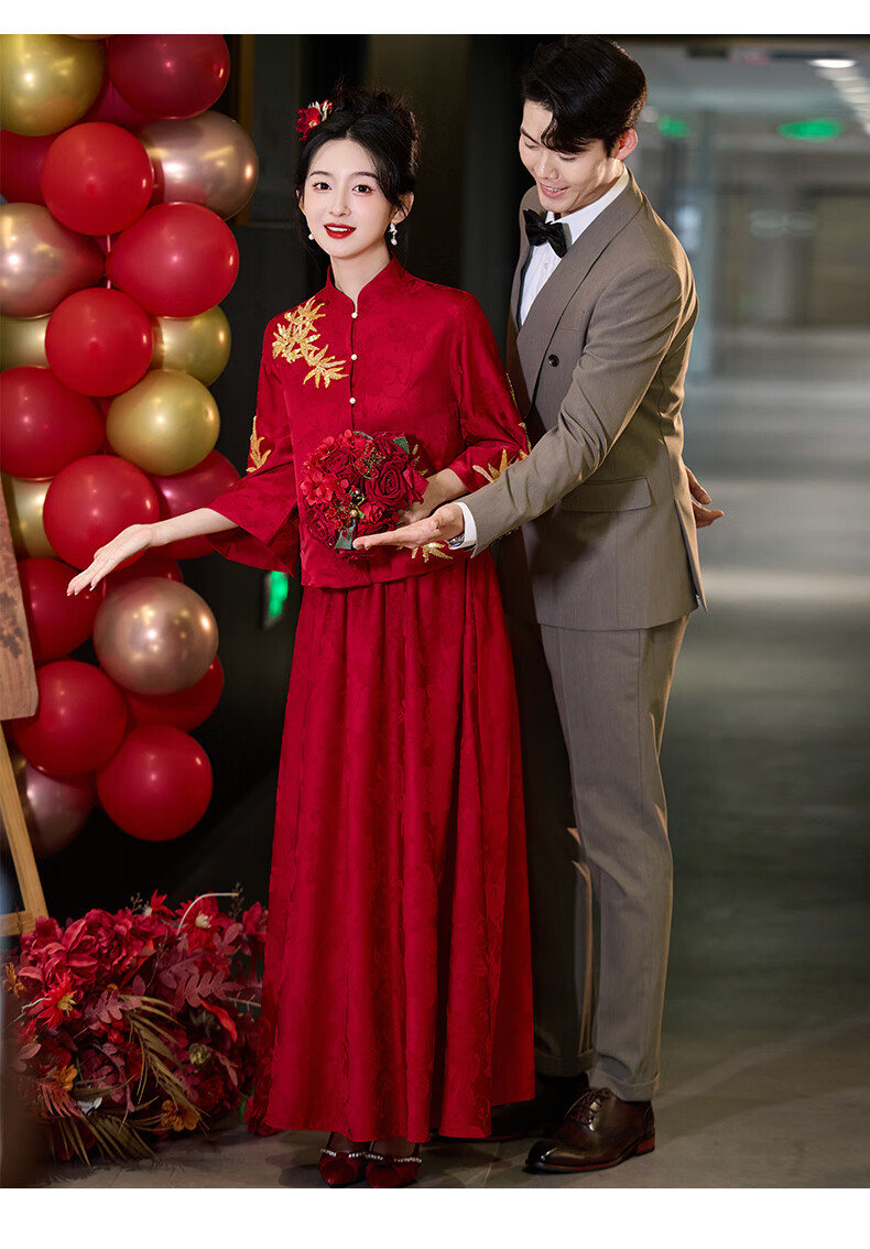 Vimadtly maternity toast dress temperament bride wedding engagement dress skirt cheongsam new Chinese wedding dress large size fat mm to cover the belly burgundy top + skirt 3XL