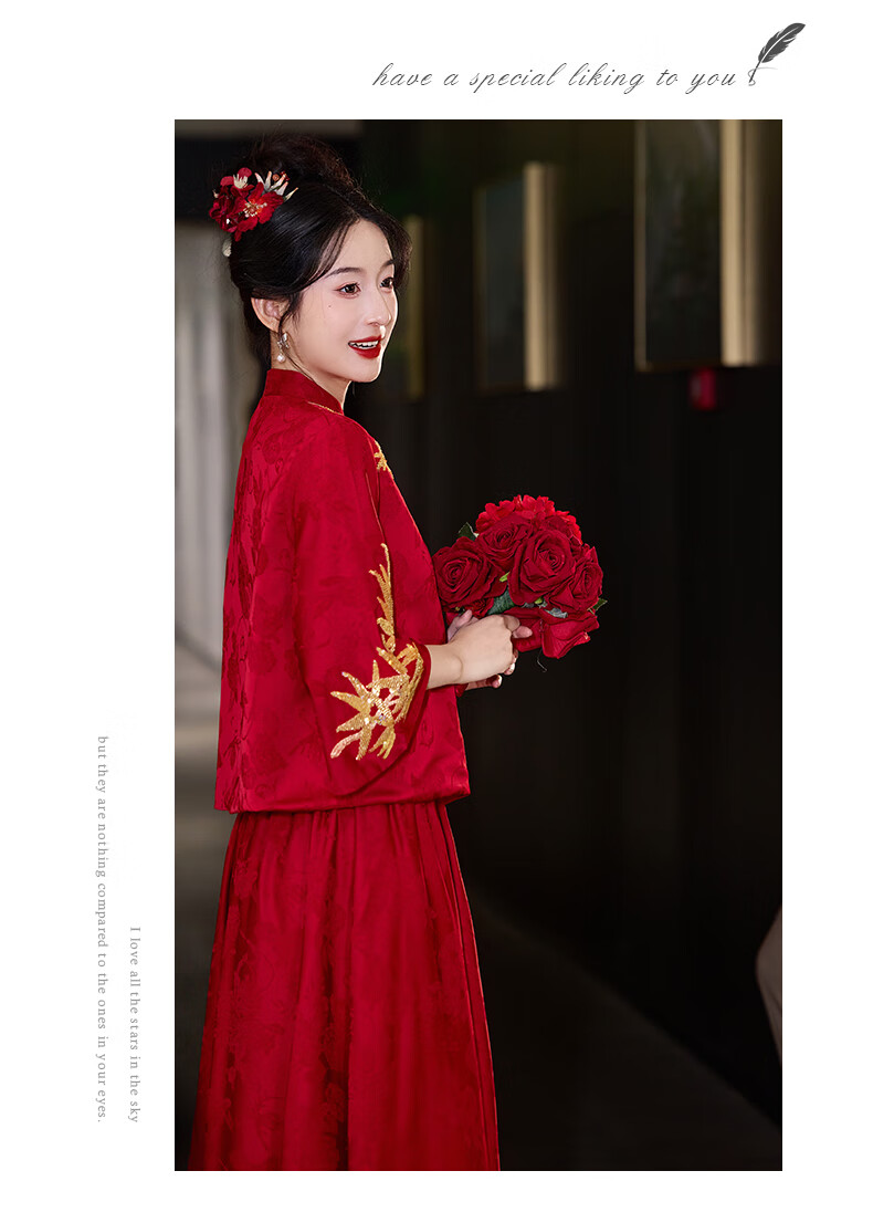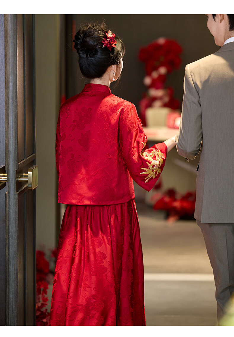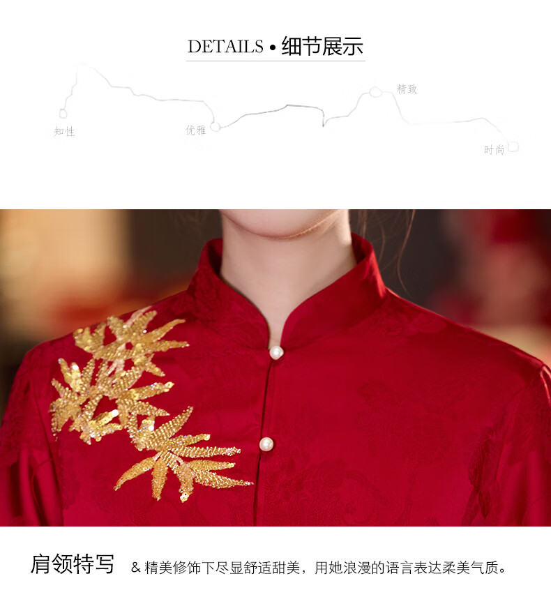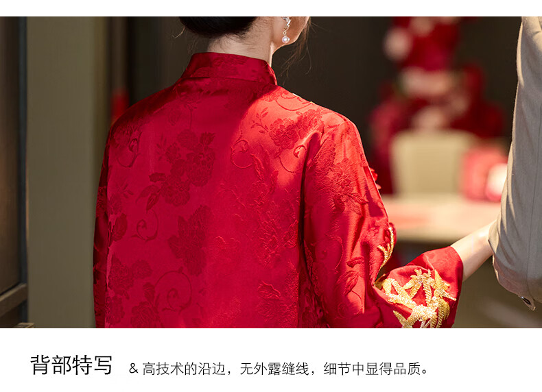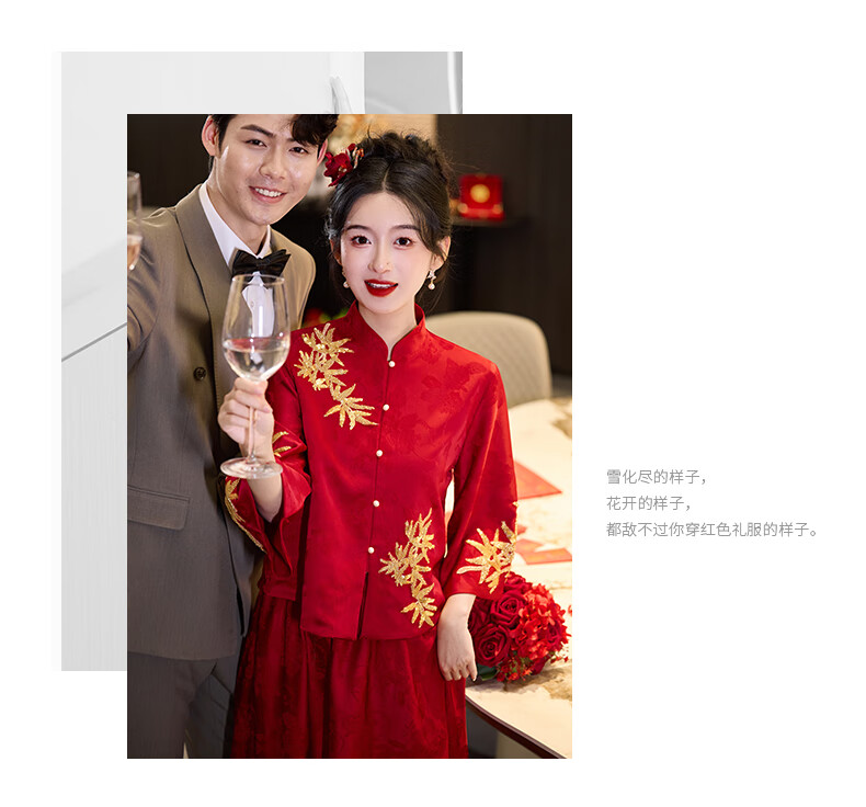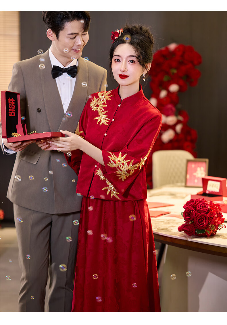 Vimadtly maternity toast dress temperament bride wedding engagement dress skirt cheongsam new Chinese wedding dress large size fat mm to cover the belly burgundy top + skirt 3XL