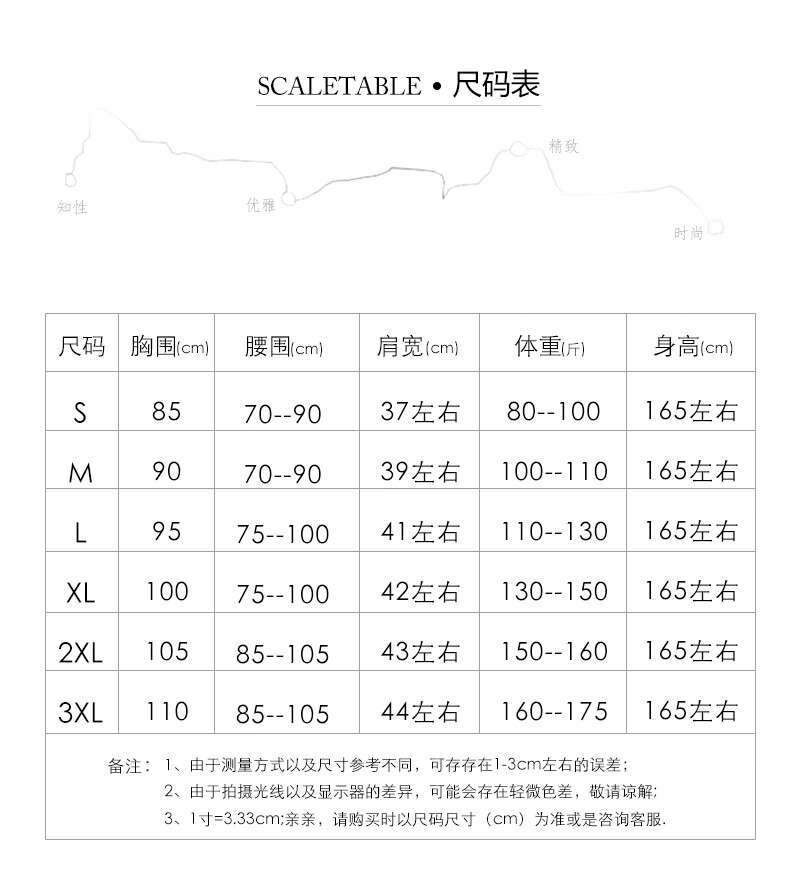 China (cm) 160-165/84-86 165-170 / 88-90 167-172 / 92-96 168-173 / 98-102 170-176 / 106-110