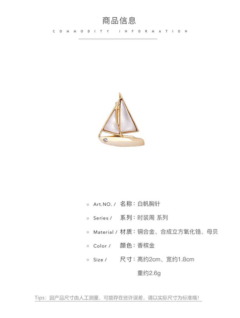 KAMALUN light luxury white sail brooch men's exquisite and compact Smooth sailing sailing corsage brooch birthday gift for elder leaders Smooth sailing sailing corsage birthday gift