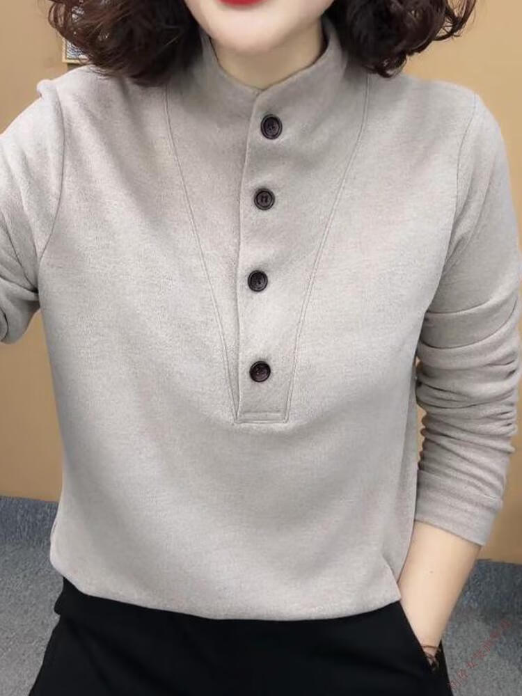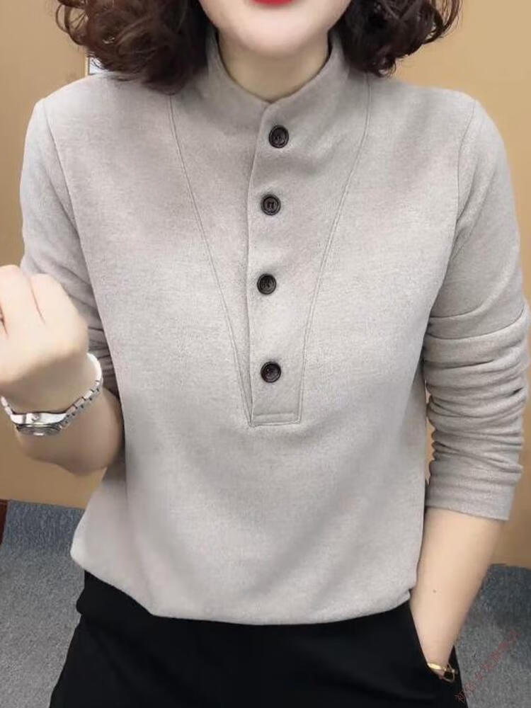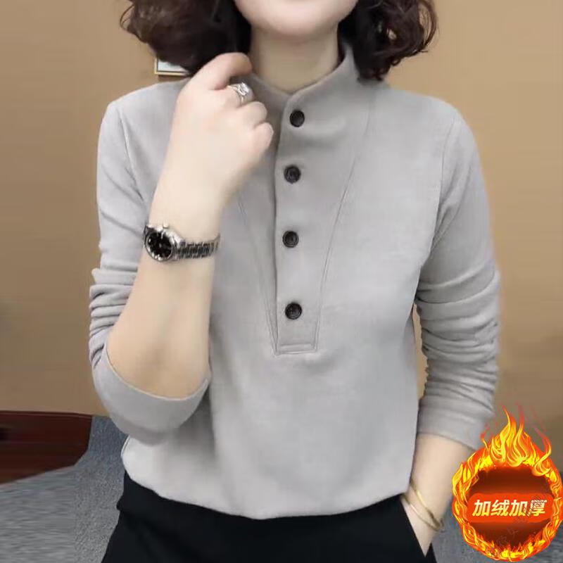 Gray inner long-sleeved bottoming shirt for women, autumn and winter style, modern style, double-sided German velvet stand-up collar top, gray in stock, 3XL 135-145Jin Jin is equal to 0.5 kg