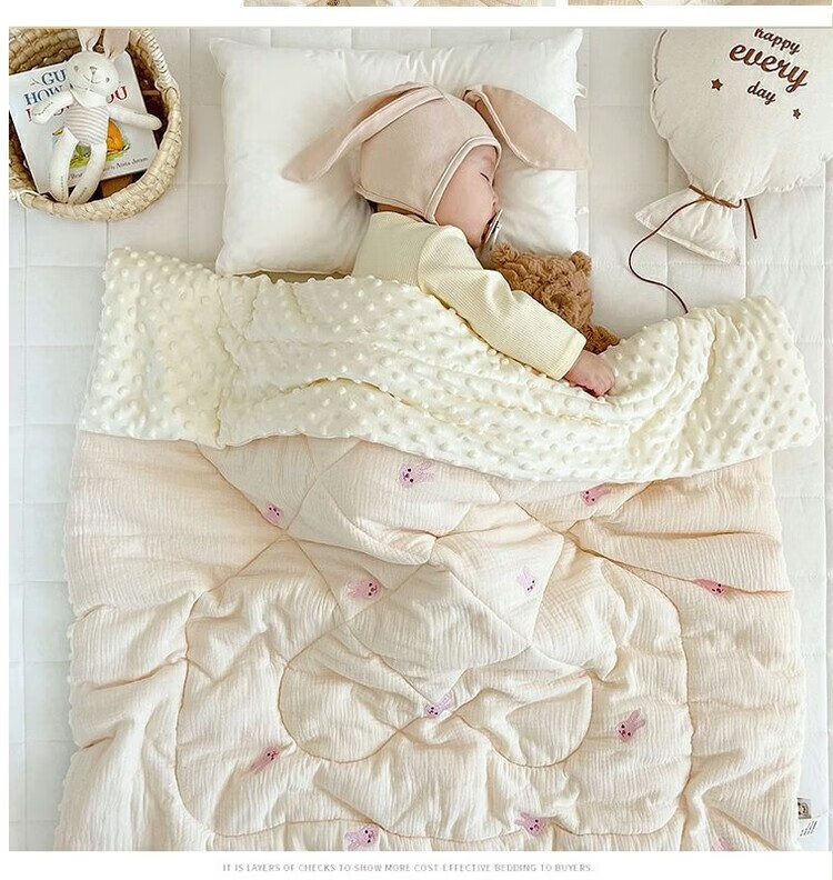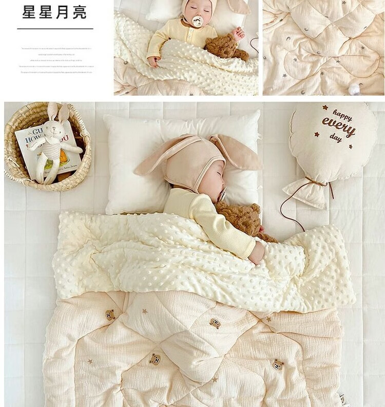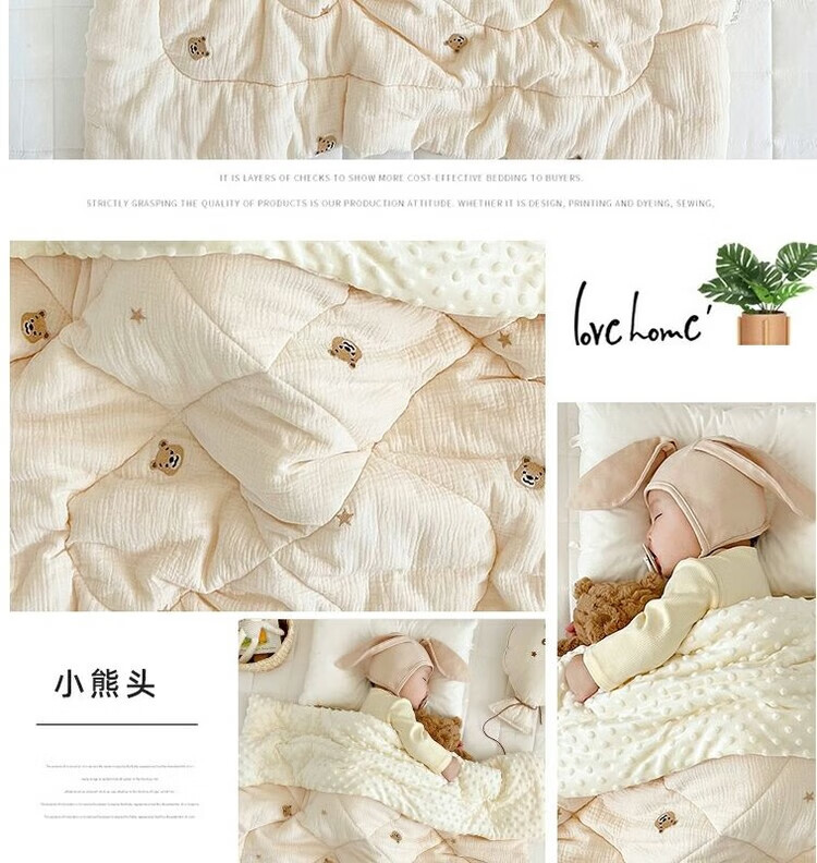 Yunduo Newborn Baby Spring and Autumn Cover Blanket Children's Air Conditioning Quilt Kindergarten Quilt Autumn and Winter Quilt Soothing Beanie Velvet Blanket Bear Head Embroidered Beanie Quilt 10-20 degrees 120x150cm