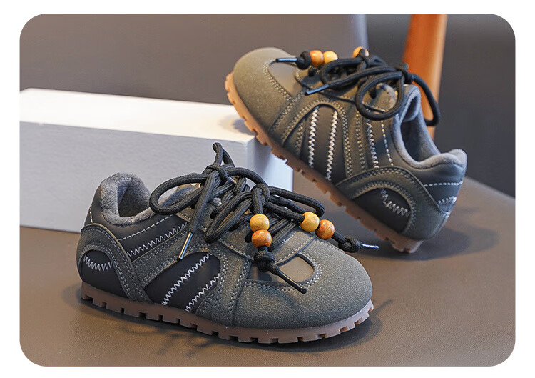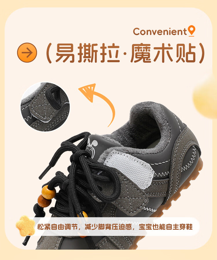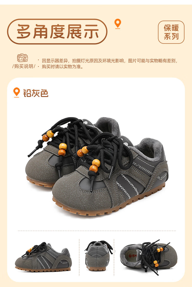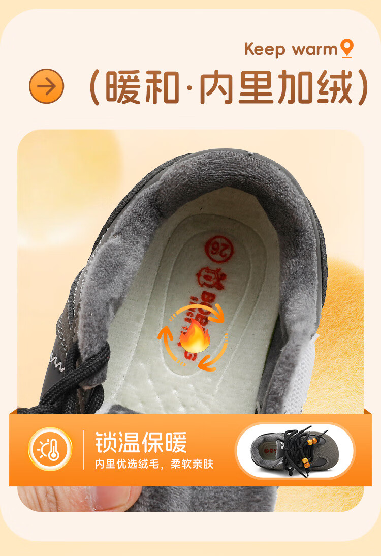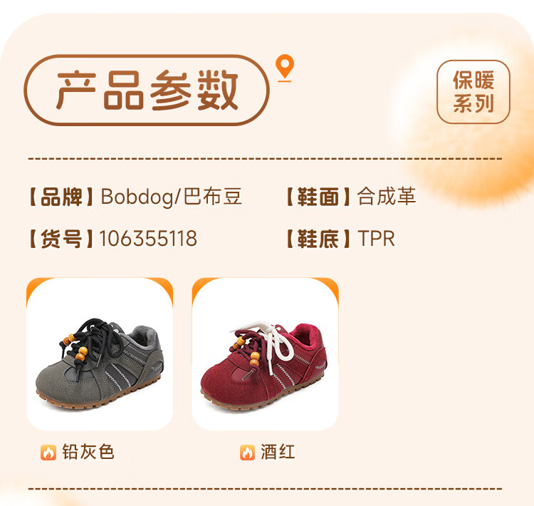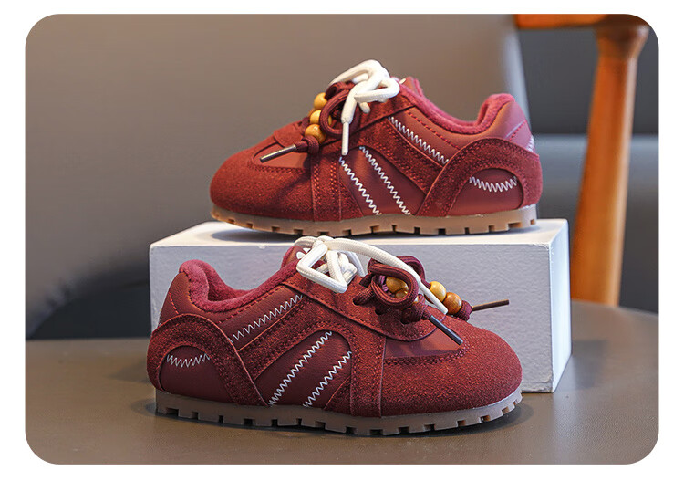 BOBDOG children's shoes, boys' winter comfortable and versatile functional shoes, 2025 women's plus velvet warm baby shoes, children's lightweight cotton shoes, wine red 23, suitable for feet 14.0cm long