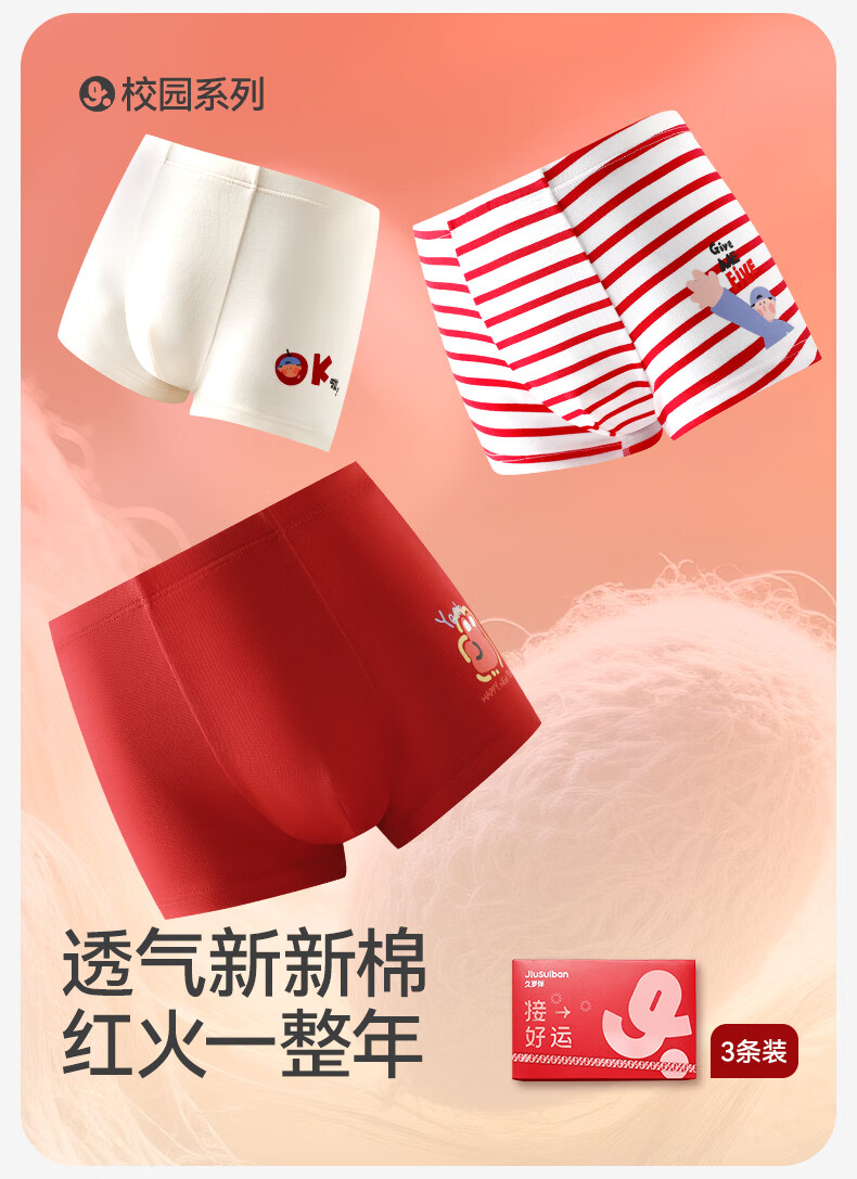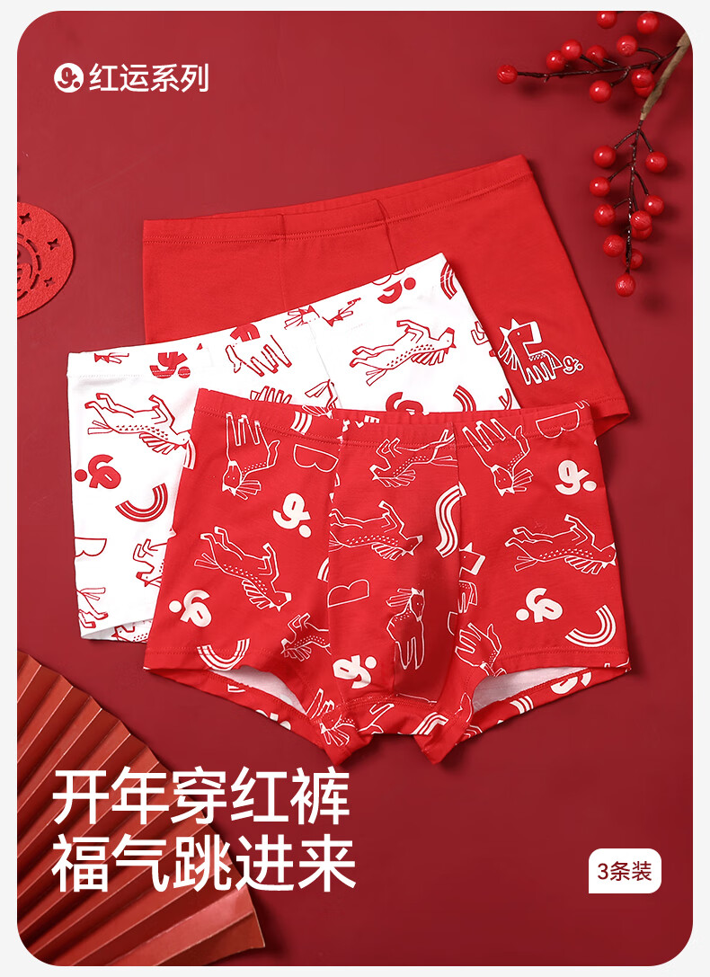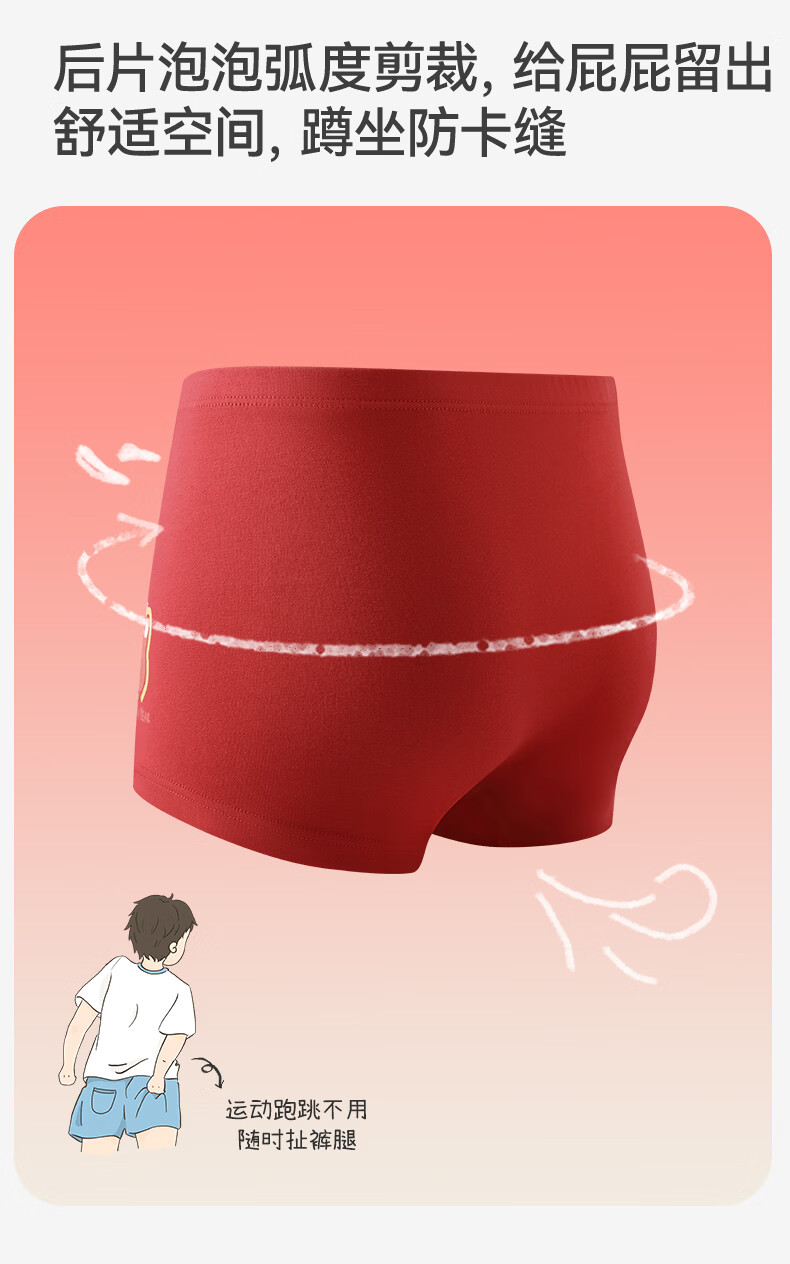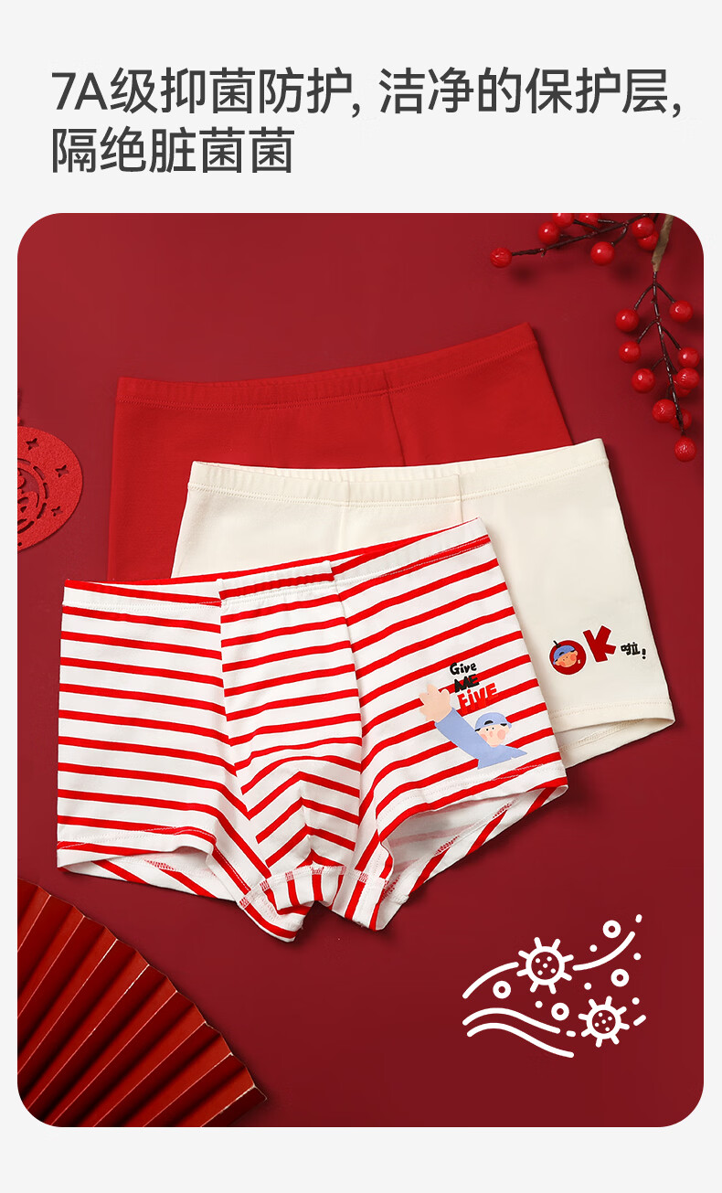 Jiu Suiban children's underwear, boys' boxer briefs, Category A, Year of the Horse, New Year's Day, Big Red, Zodiac Year, Middle Age, Developmental Period Boxer Briefs, Combination 1, Dragon Horse Spirit 160