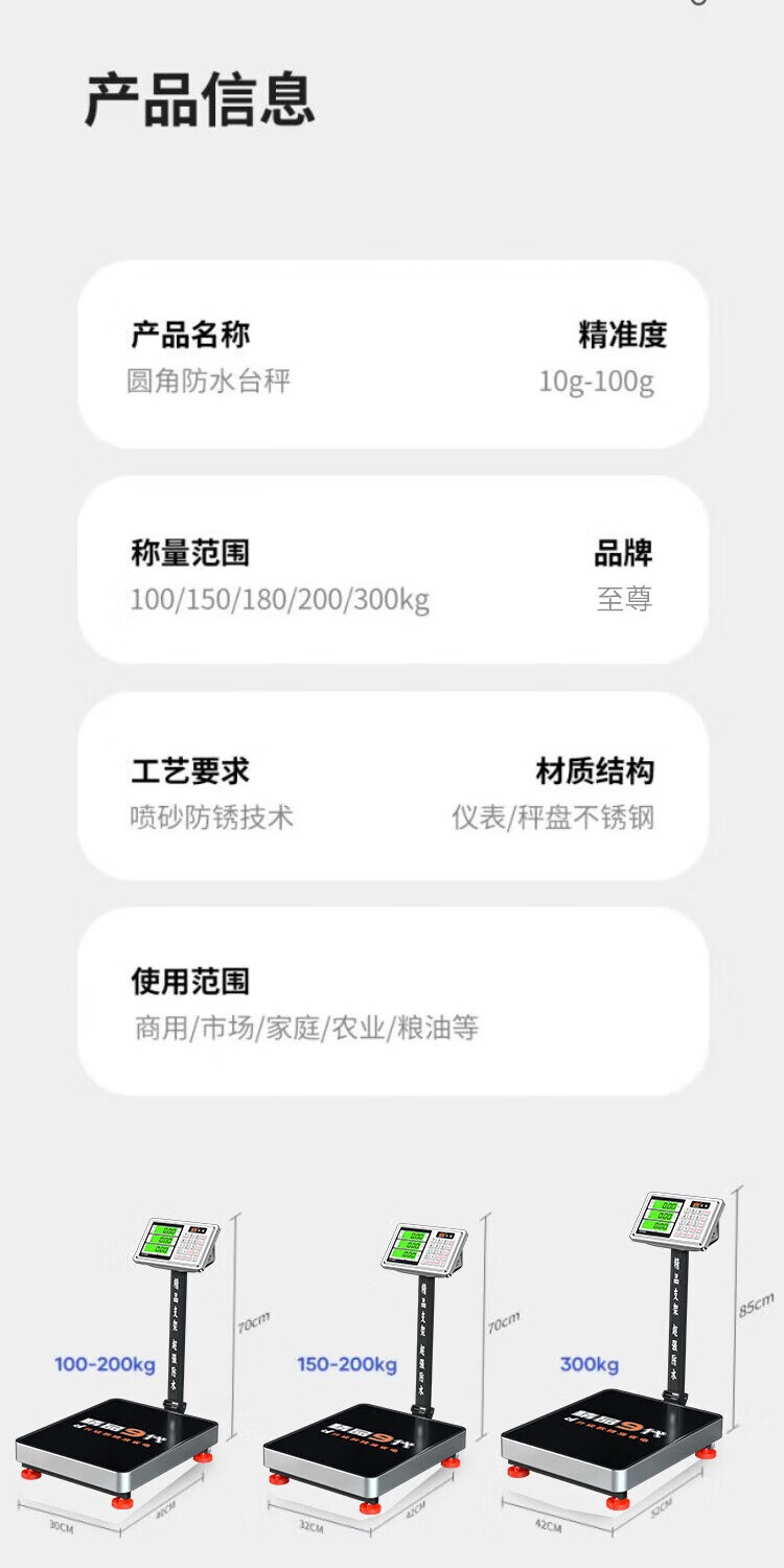 ZHIZUN waterproof electronic scale, commercial scale, floor scale, business stall scale, floor scale, 300kg electronic scale, aquatic seafood pricing scale, fruit express scale, steel key thickened version, 180kg black letter 30*40