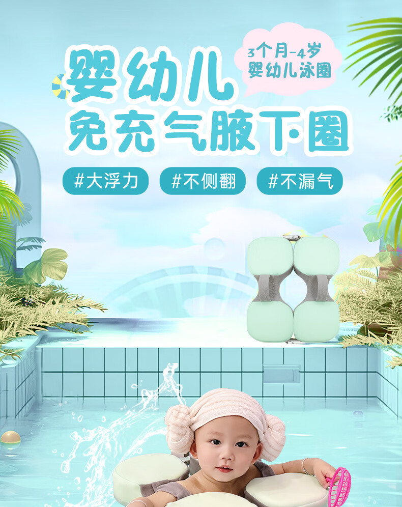 AI-JSWAN swimming ring, armpit ring, baby neck ring, anti-rollover and anti-choking, infant and child sitting ring, swimming ring, life buoy, leather cat color - armpit ring, 3 months - 4 years old - bust 42-48CM, one size fits all