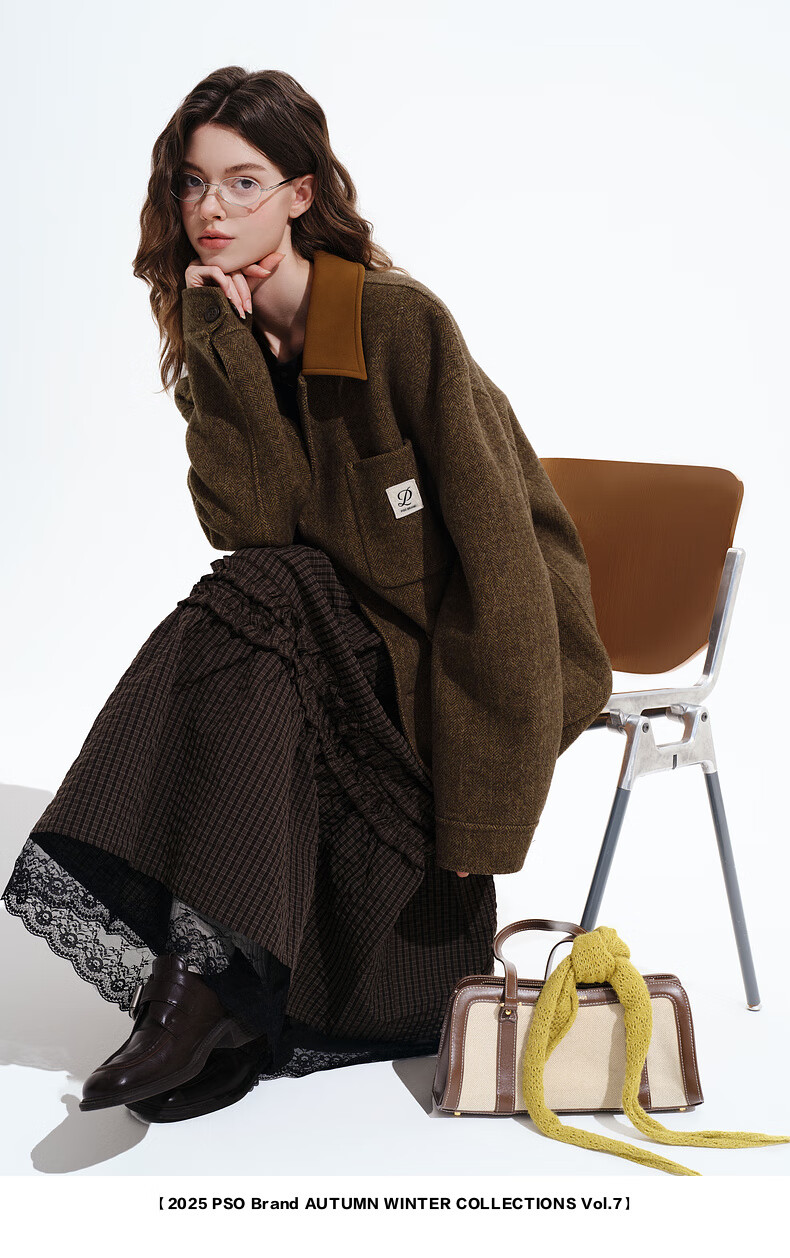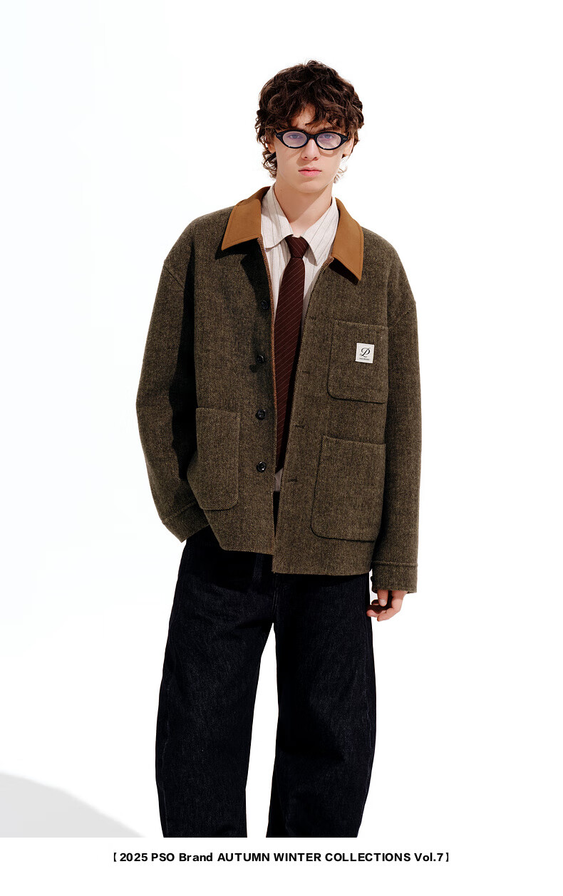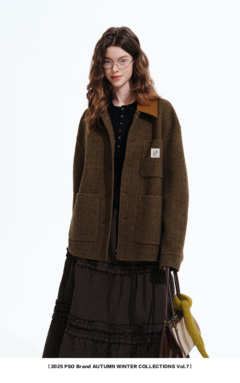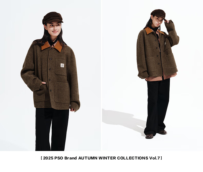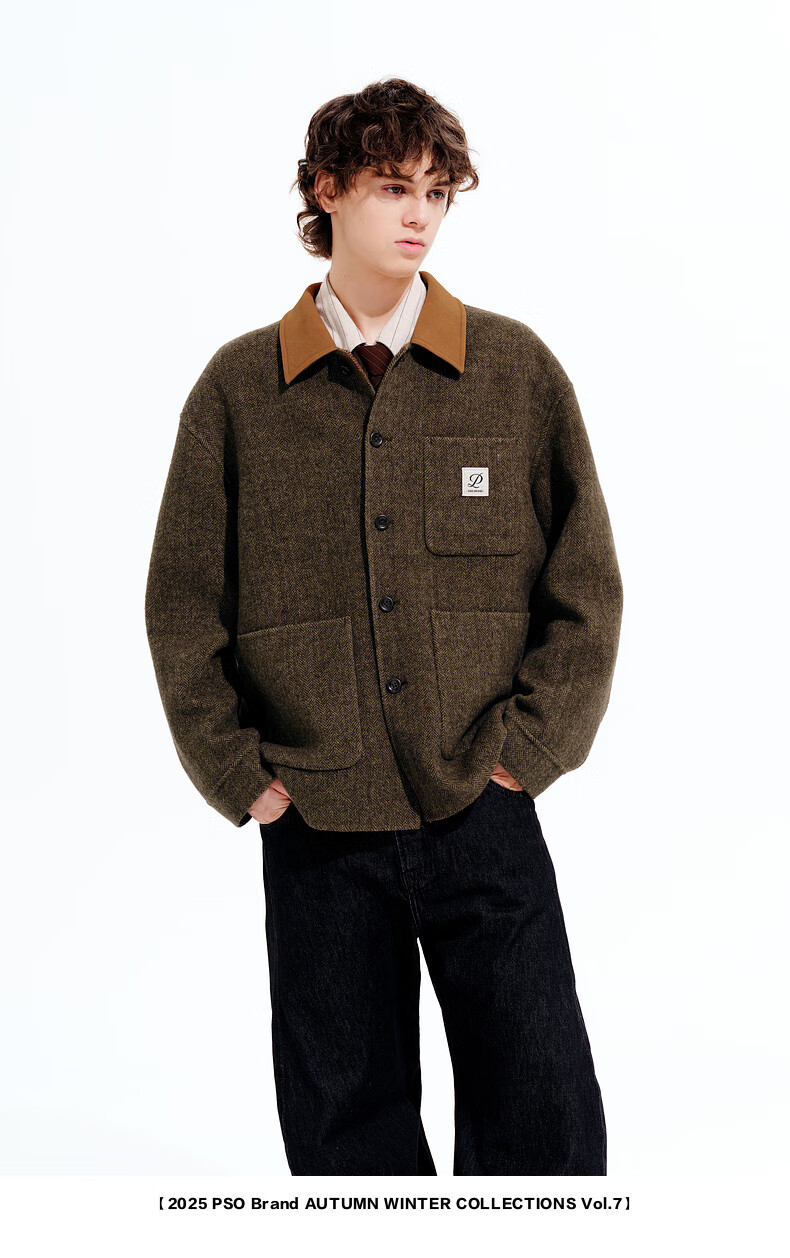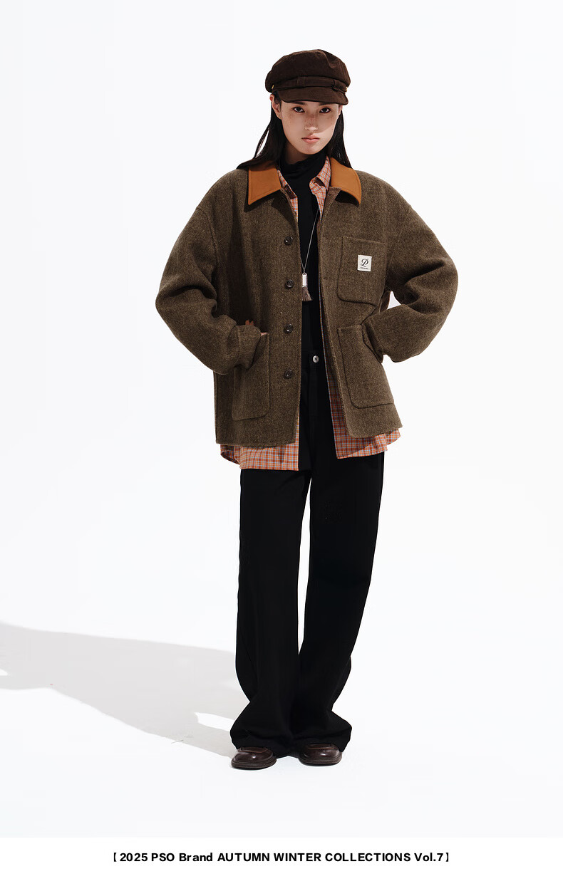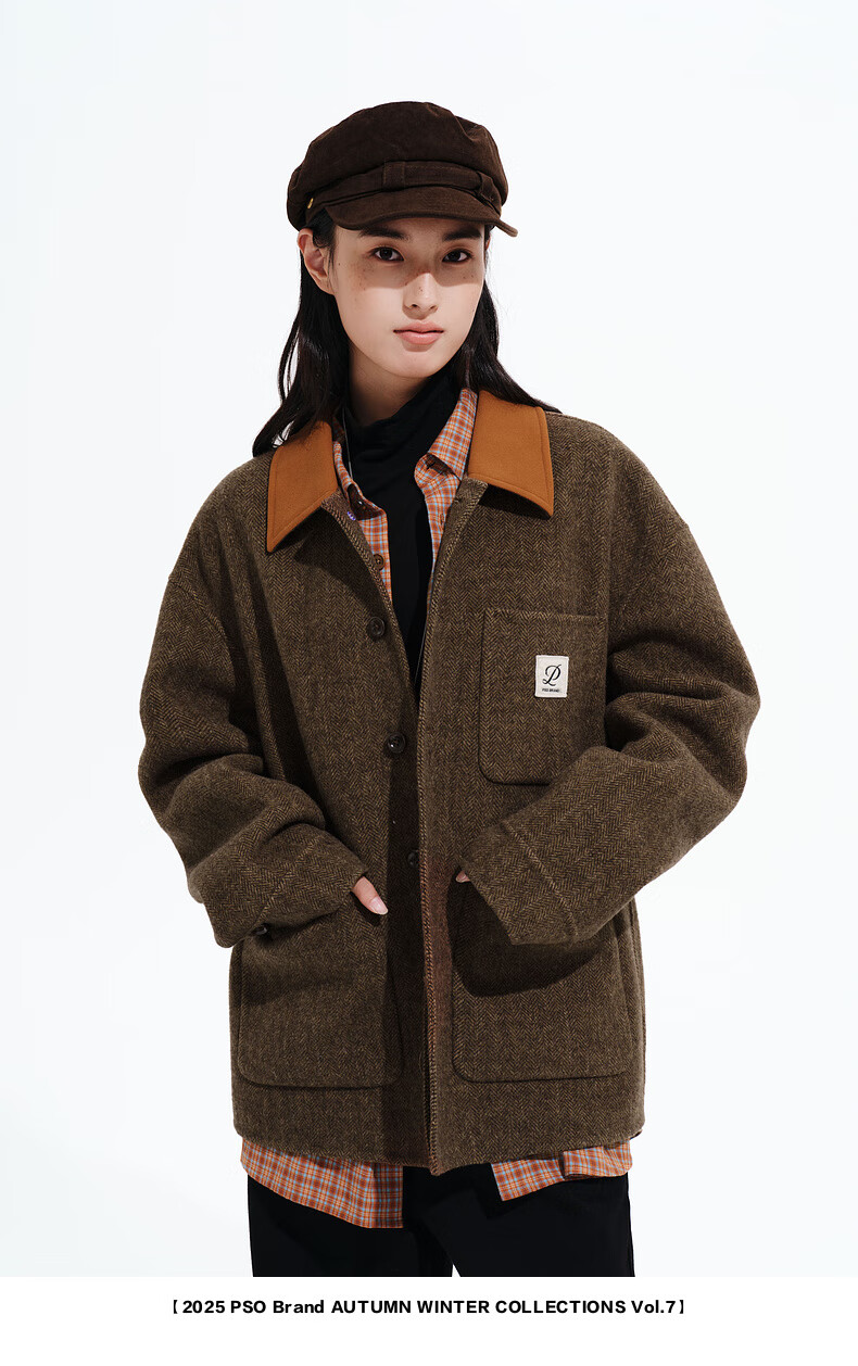 PSO Brand Men's and Women's Wool Retro Contrast Color Collar Double-Faced Loose Work Jacket Jacket Winter Truffle Brown TruffleBrown L