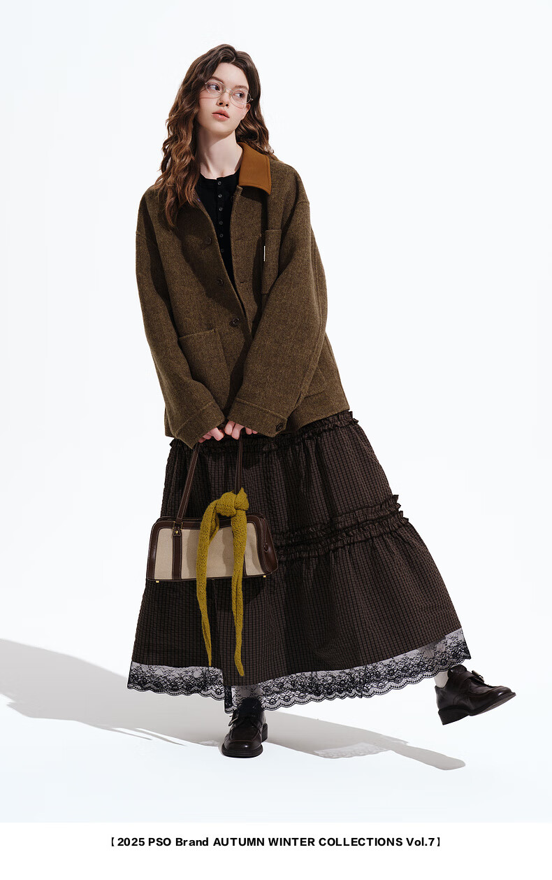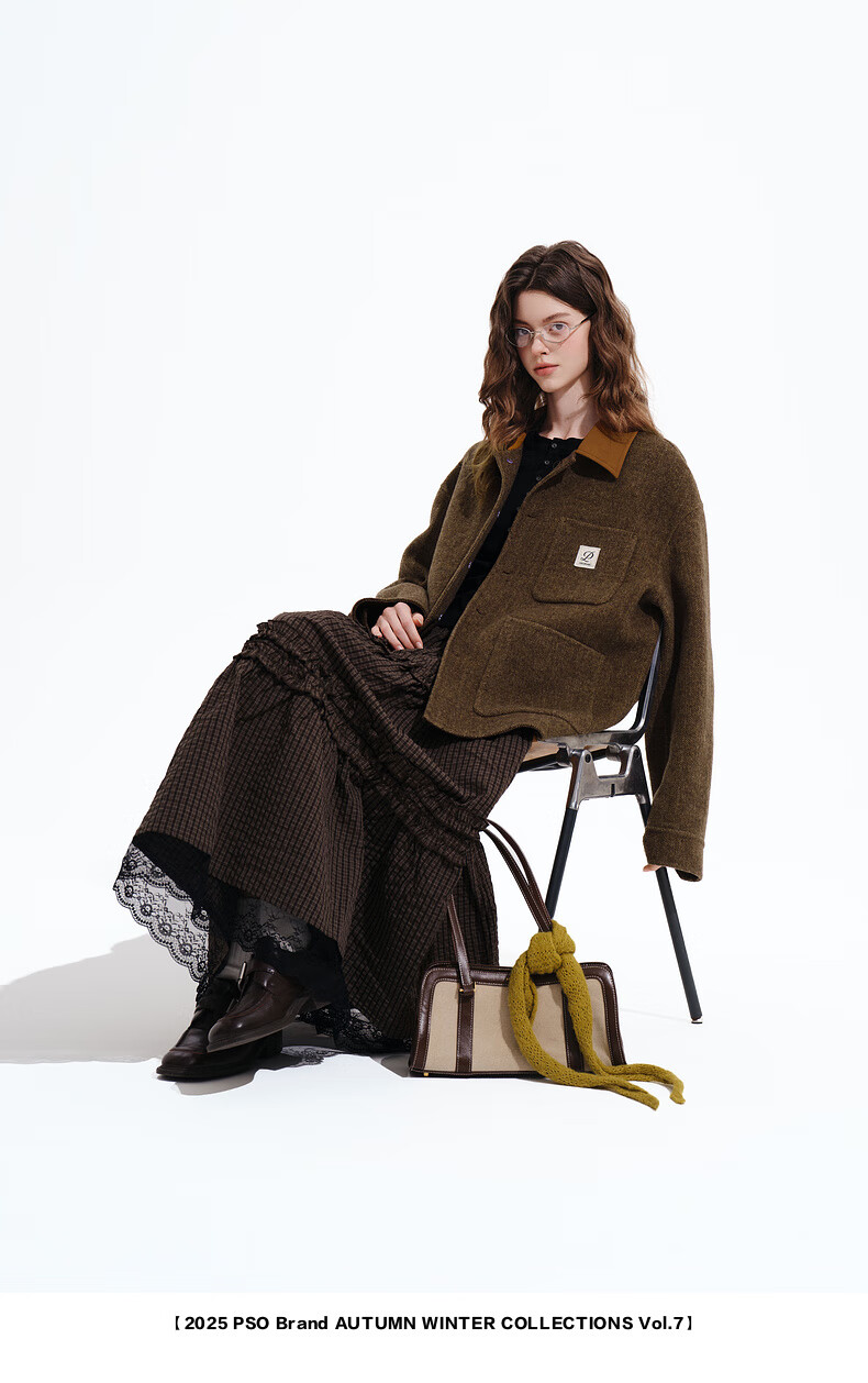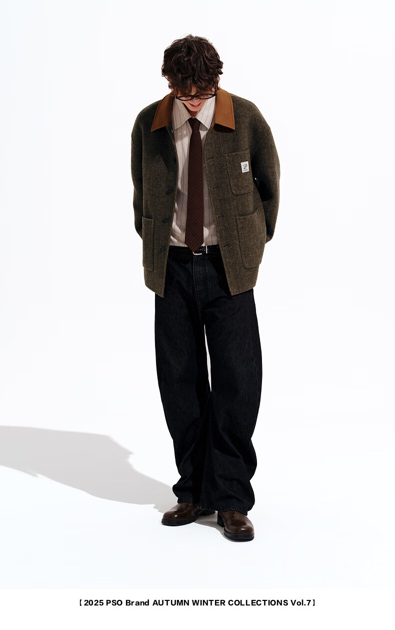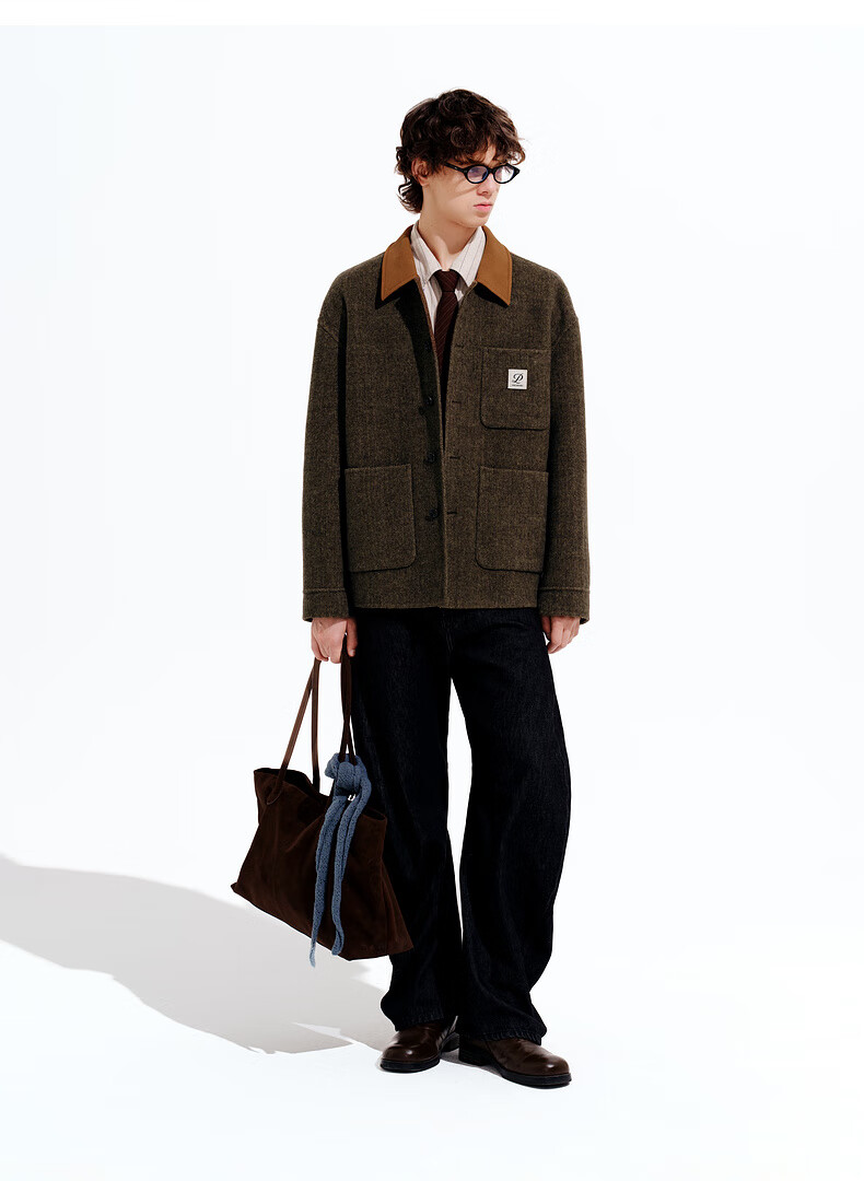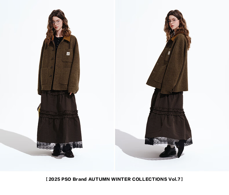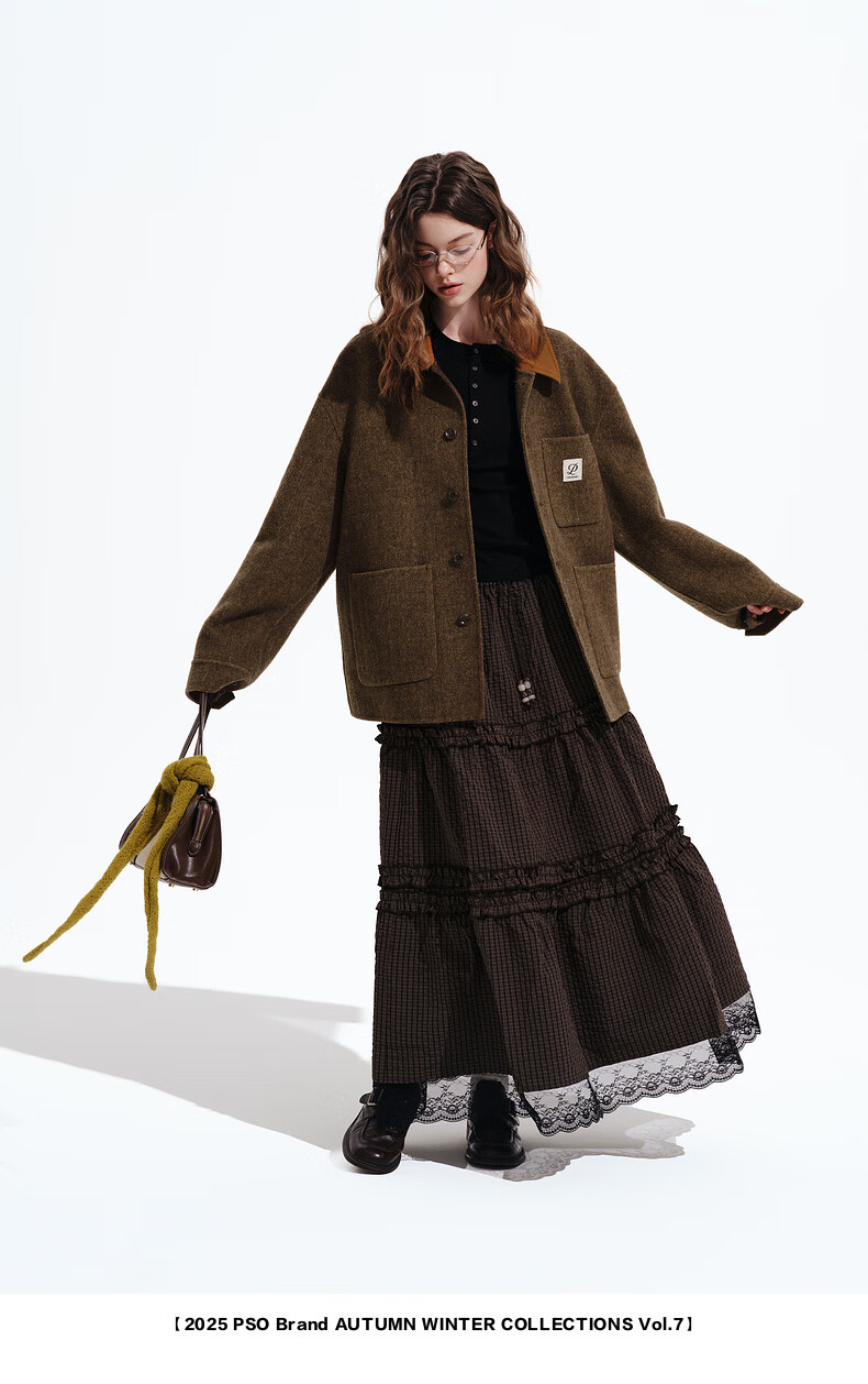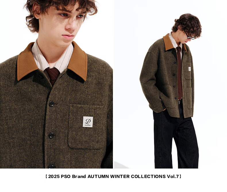 PSO Brand Men's and Women's Wool Retro Contrast Color Collar Double-Faced Loose Work Jacket Jacket Winter Truffle Brown TruffleBrown L
