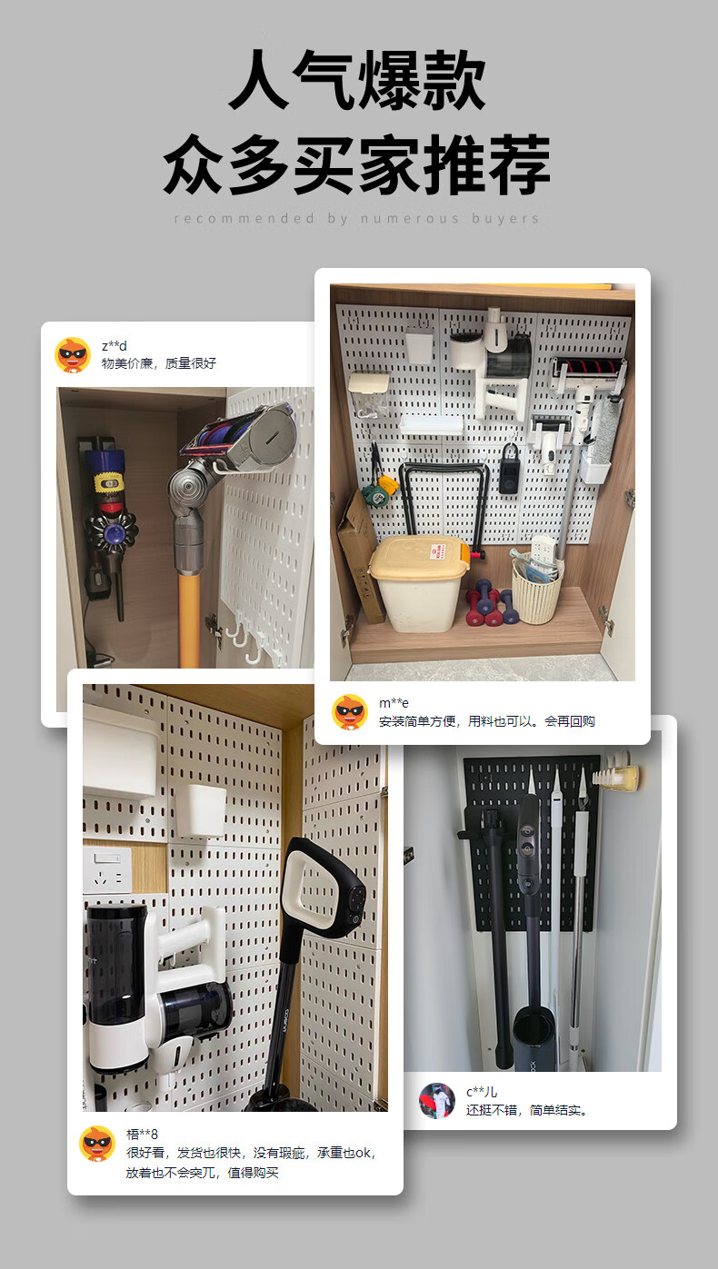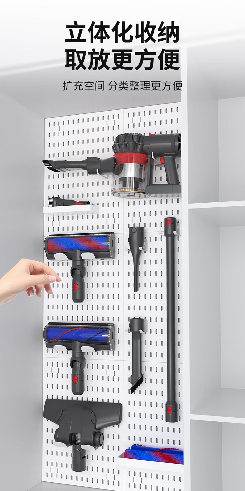 QINFENG Cleaning Tools Wall Rack Perforated Plate Hook Strong Load-bearing Suitable for Dyson Vacuum Cleaner Storage White Extra Large Horizontal Plate 40cmx59cm 1 piece No Specifications