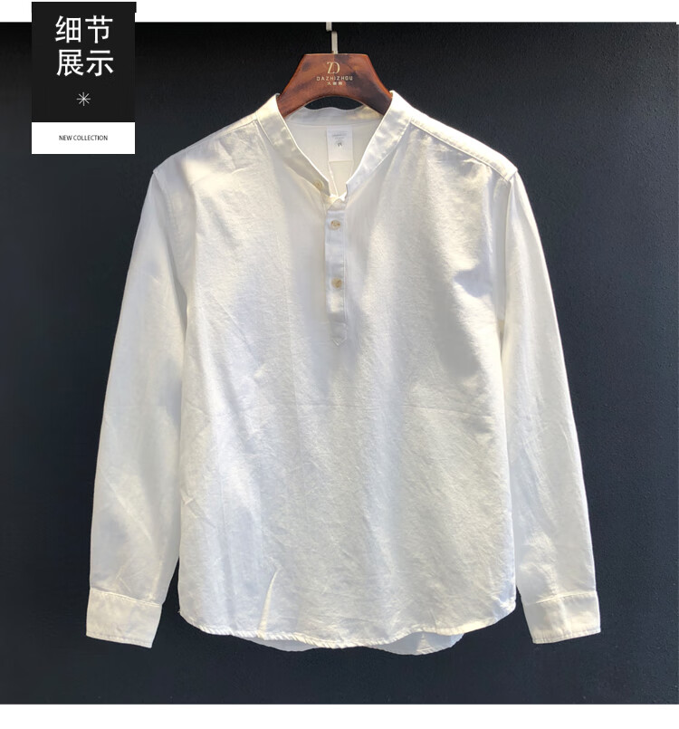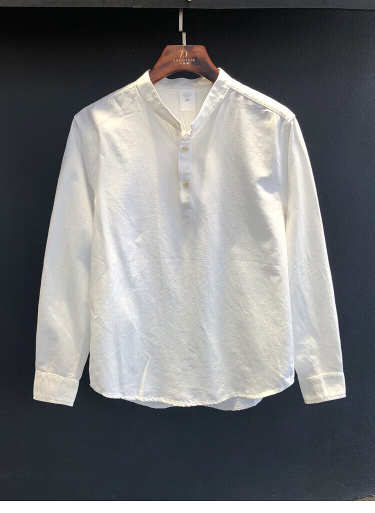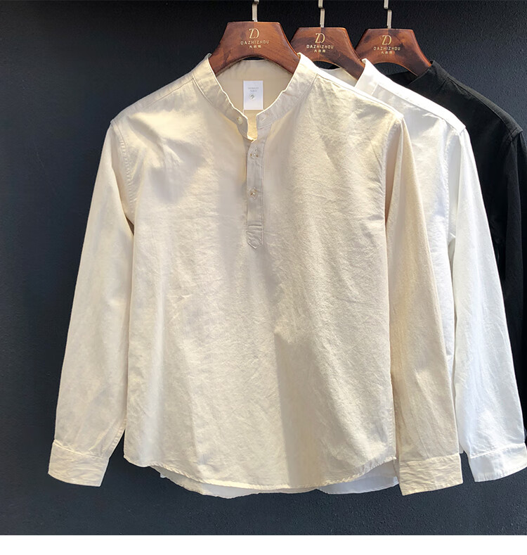 Yingtang 2025 Autumn New Men's Henry Collar Shirt Tops Versatile Simple Cotton Breathable Fashion Apricot M 90-120Jin Jin is equal to 0.5 kg