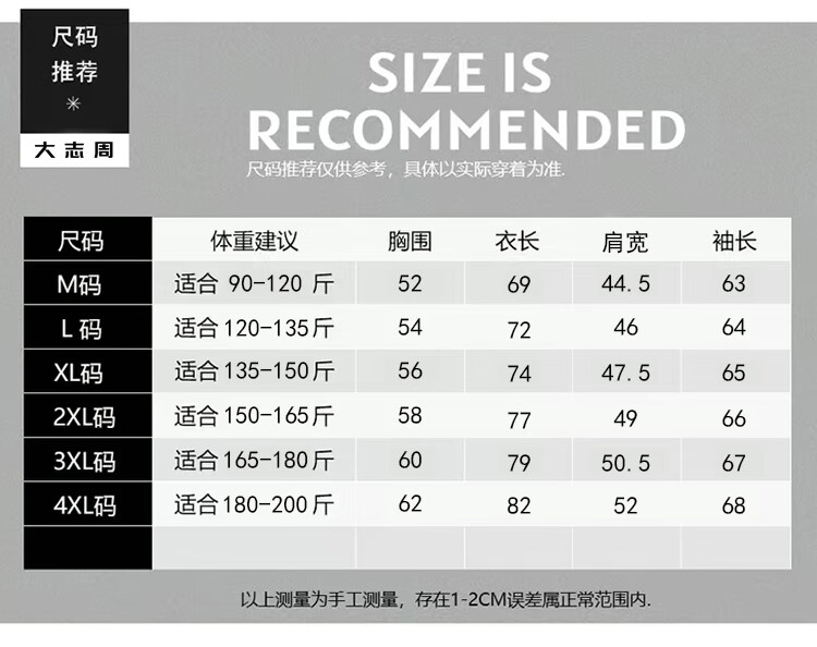 China (cm) 165 / 88-90 170 / 96-98 175 / 108-110 180 / 118-122 185 / 126-130