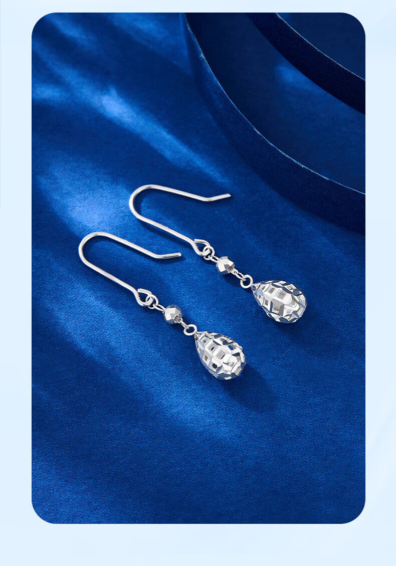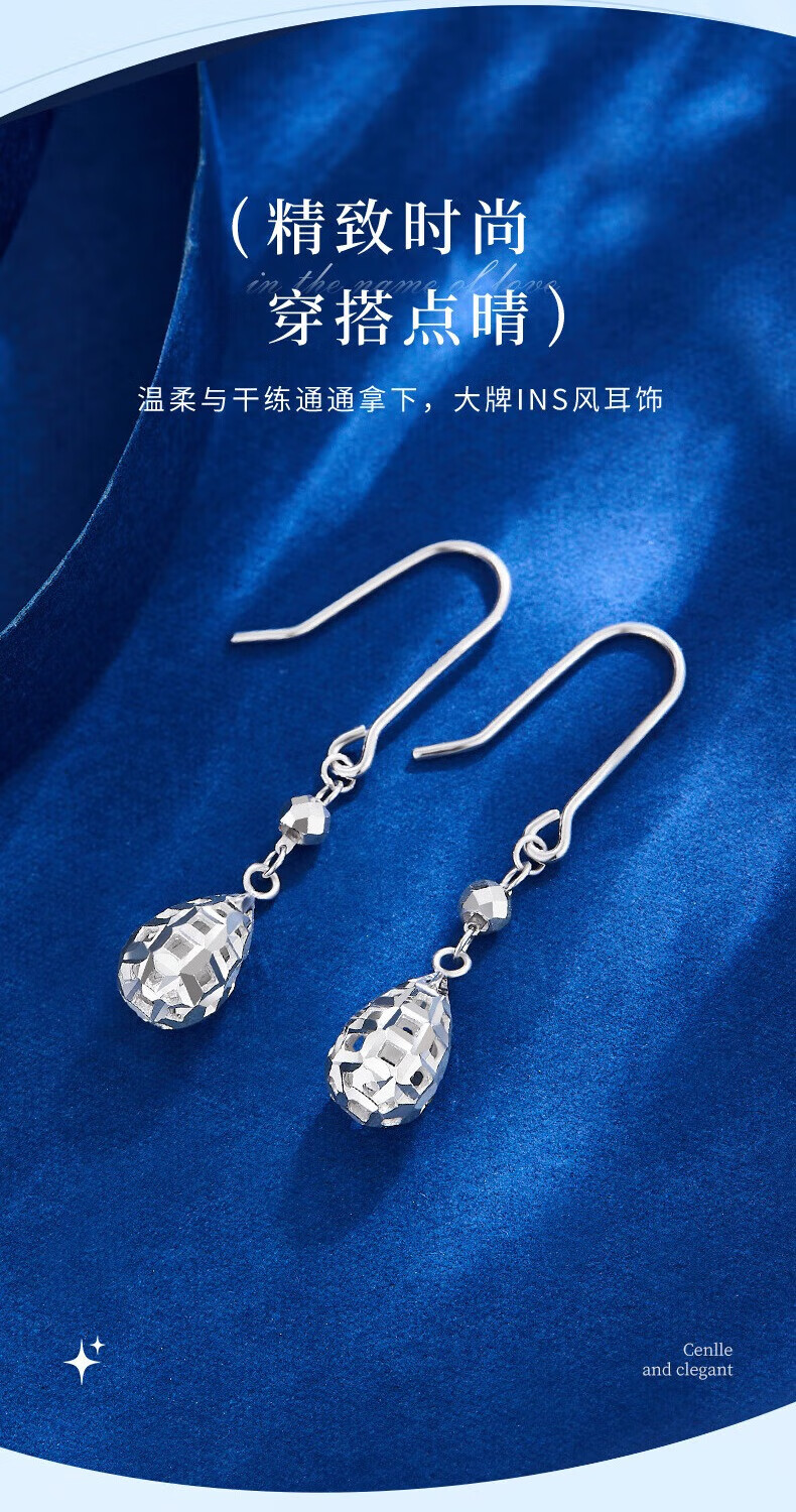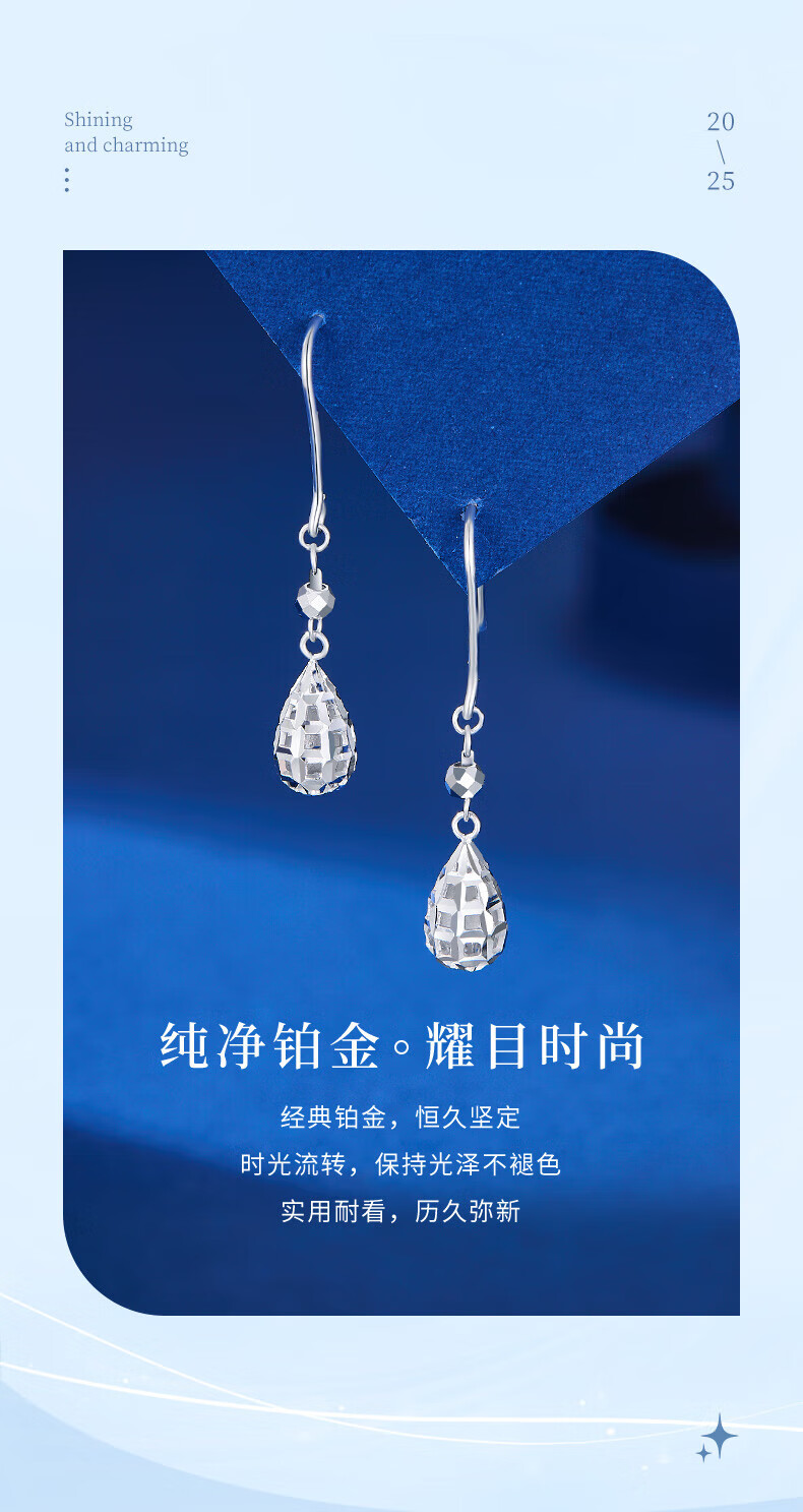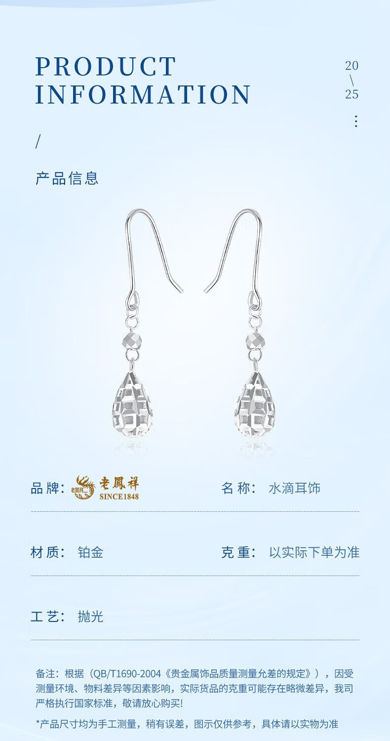 Lao Fengxiang PT950 platinum water drop ear hooks, women's favorite light luxury platinum earrings, Valentine's Day birthday gift for girlfriend and wife, platinum water drop ear hooks, one pair, about 3.1g, brand gift box