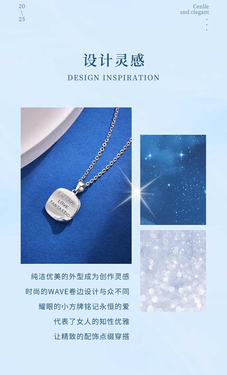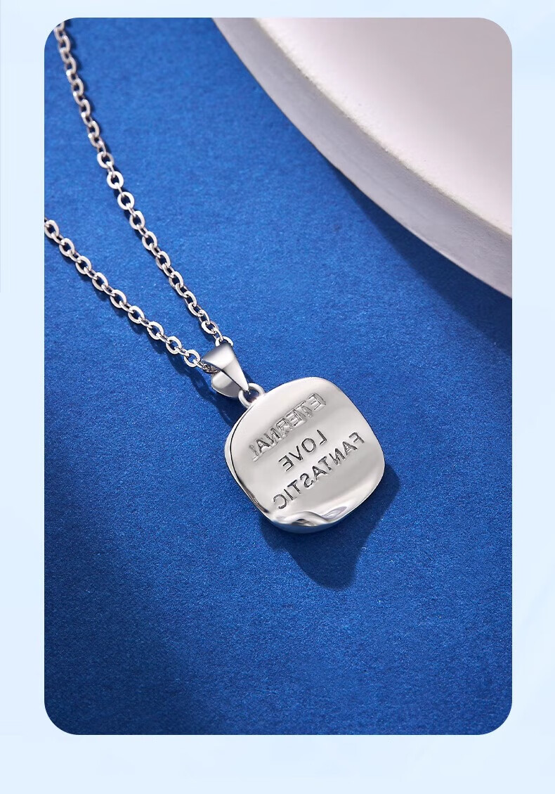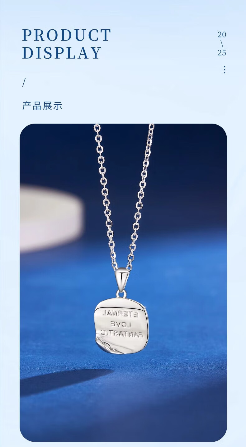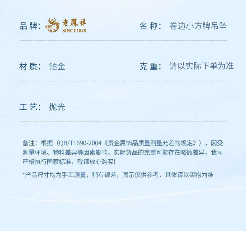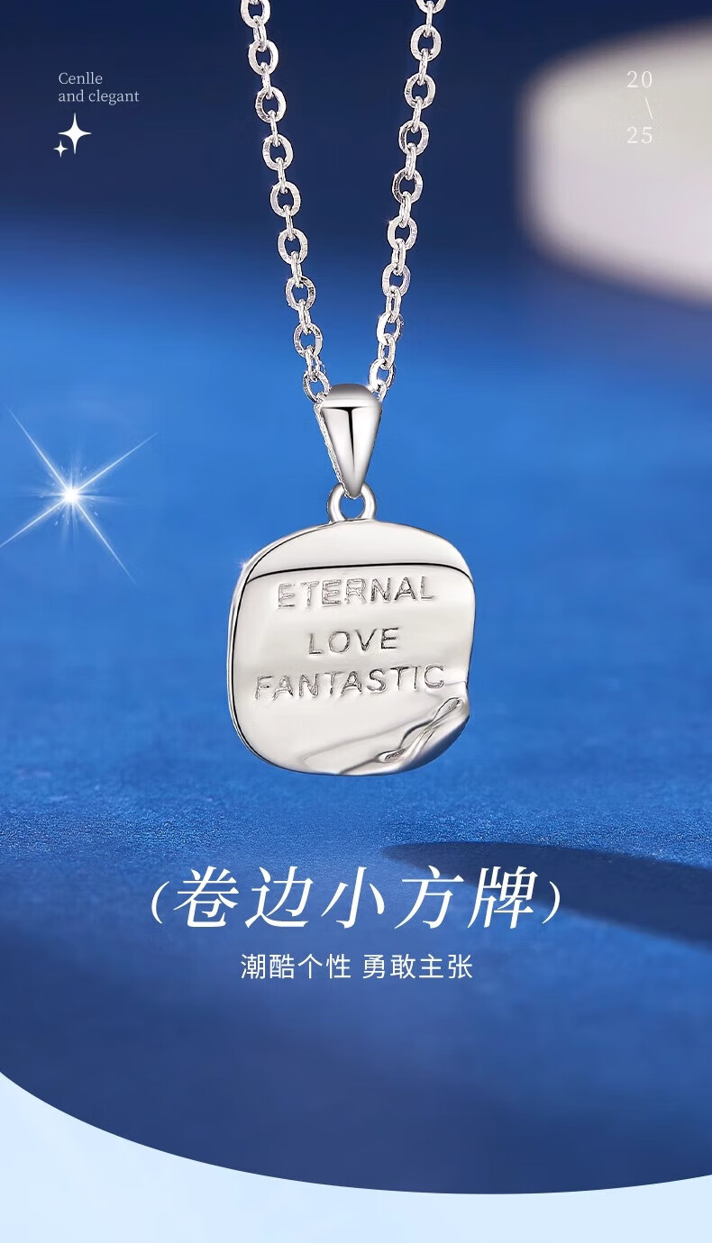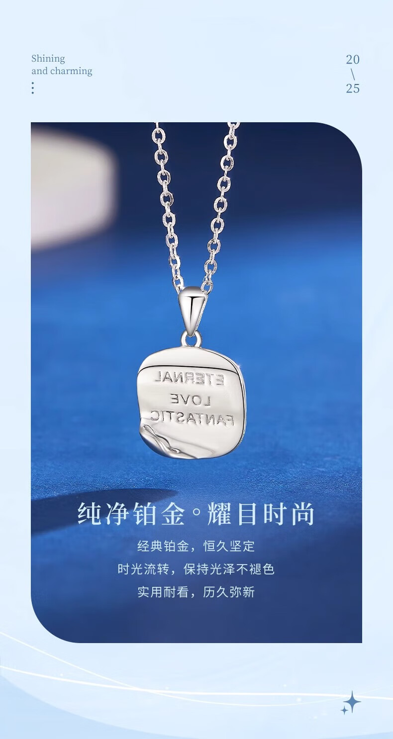 Lao Fengxiang PT950 platinum curled small square brand pendant for women, new platinum Valentine's Day birthday gift for girlfriend and wife, platinum curled small square brand pendant, about 3.6g, free silver chain + heart-warming gift box