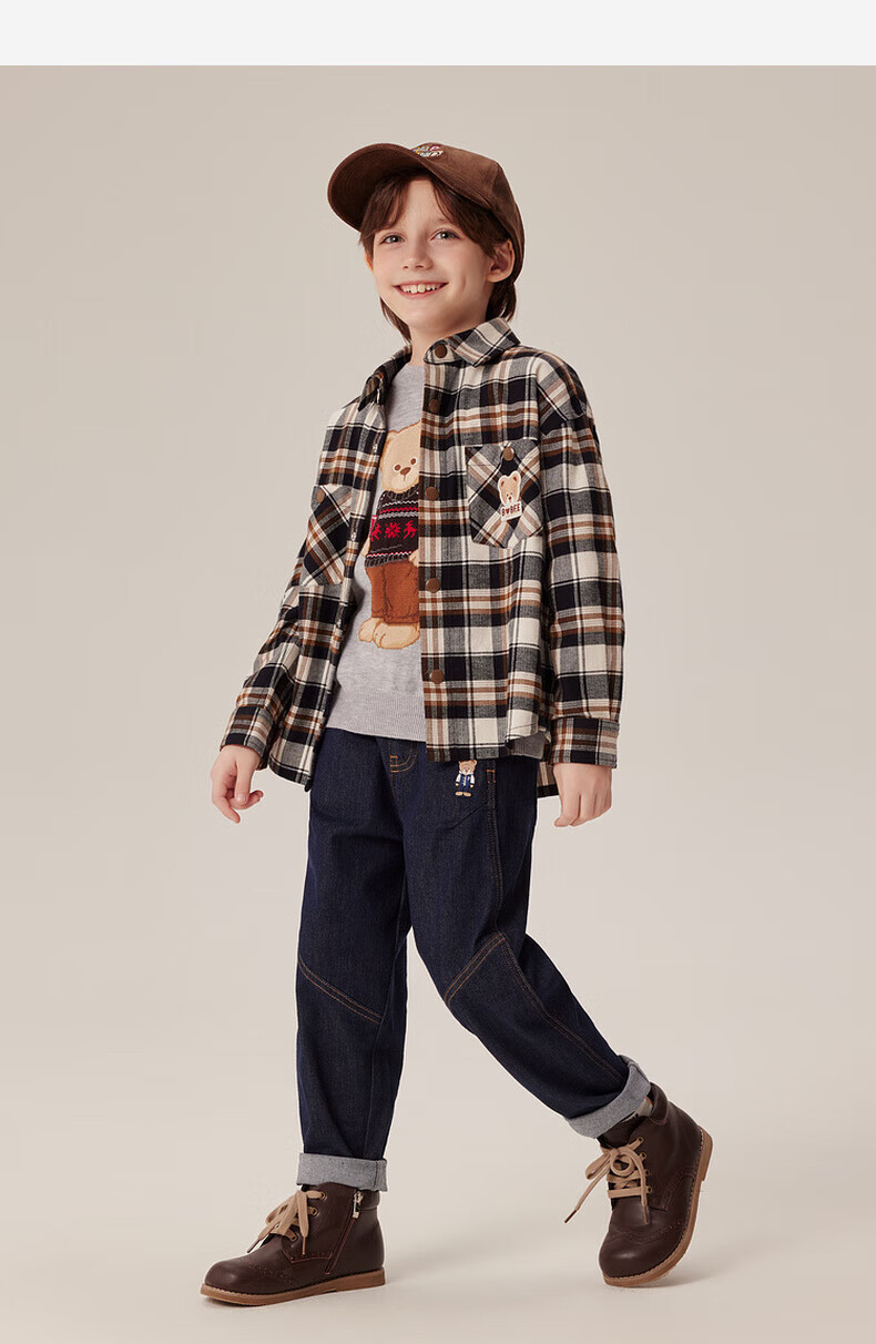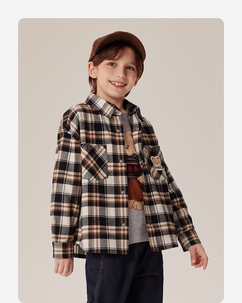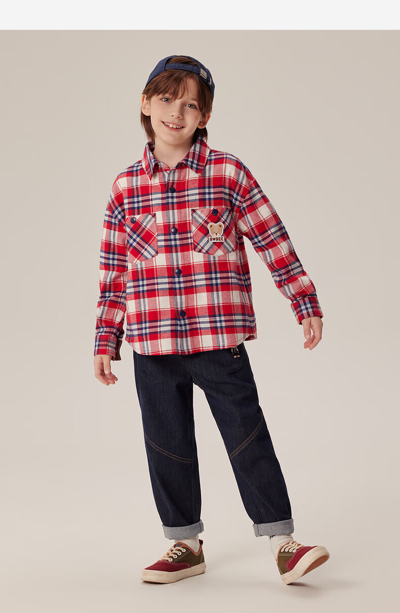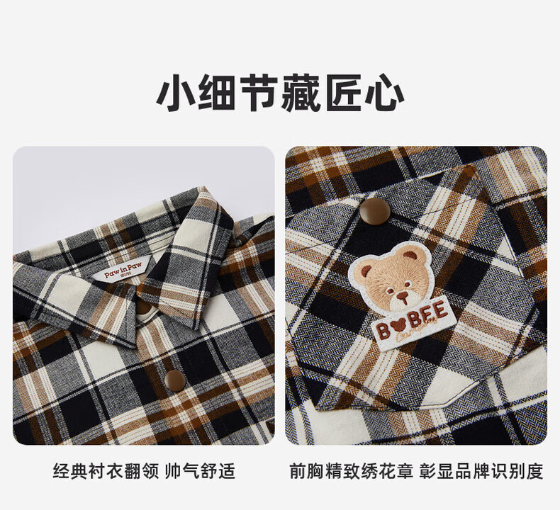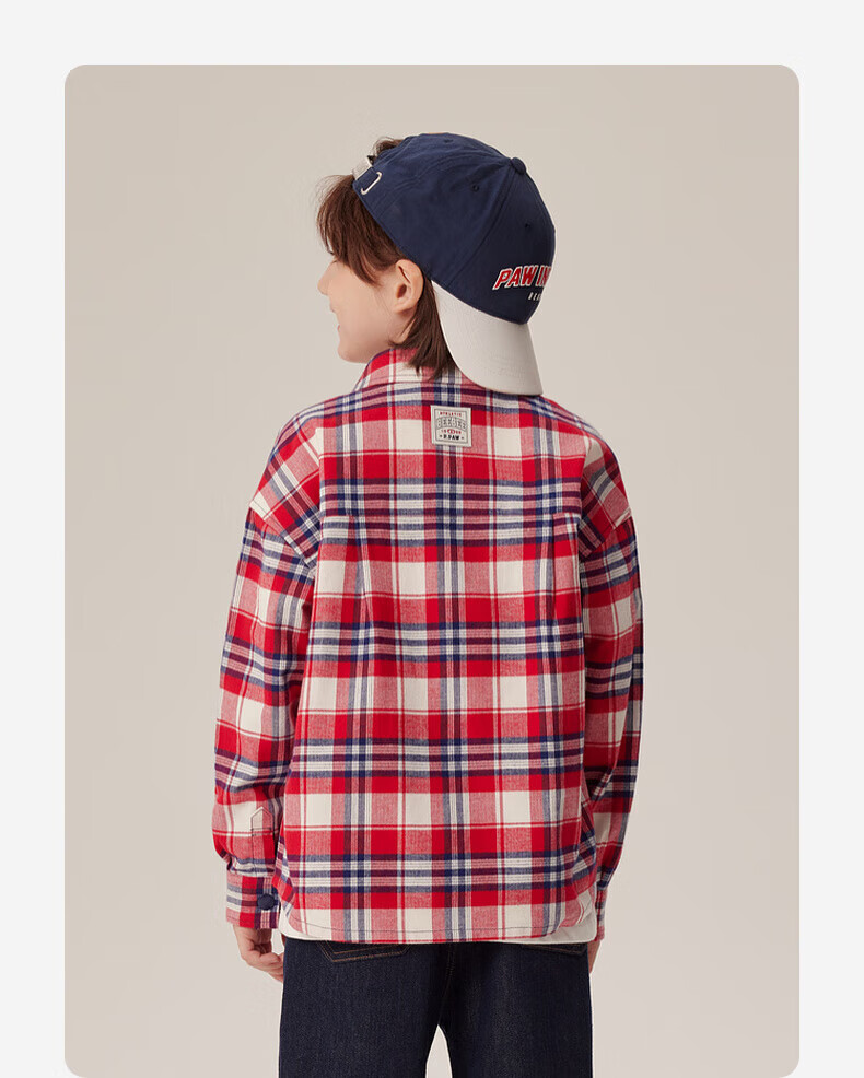 PawinPawD11 Moon Black PawinPaw Cartoon Bear Children's Clothing Autumn and Winter Boys Classic Plaid All-Match Boys Shirt Red/20 110 cm