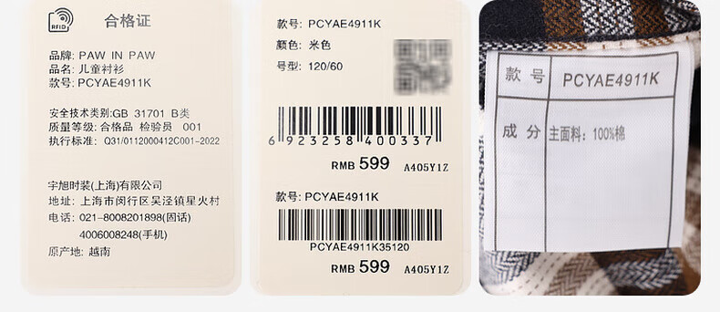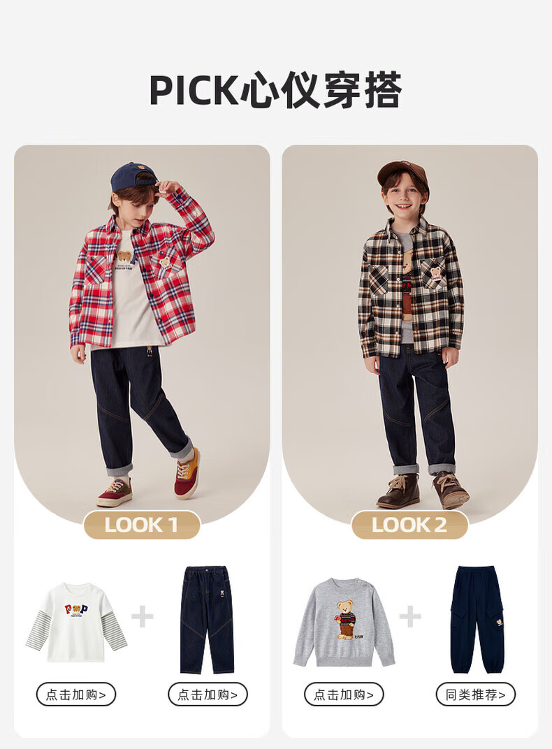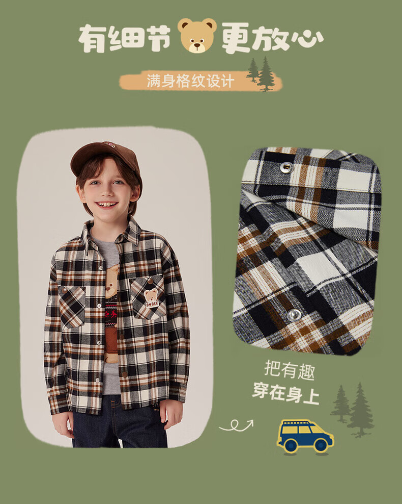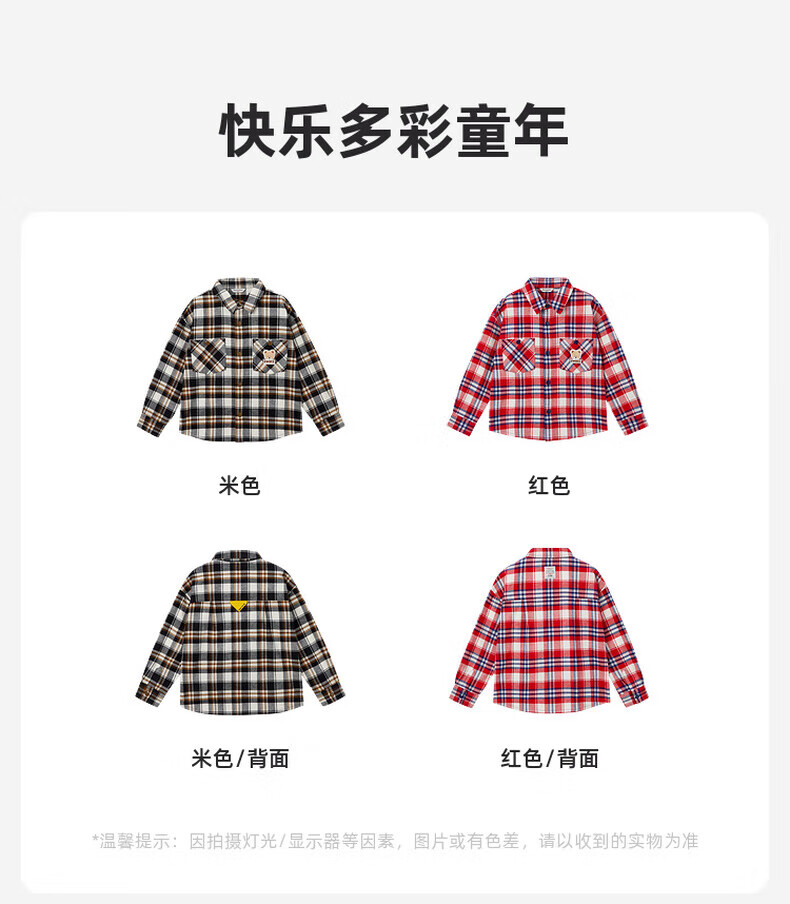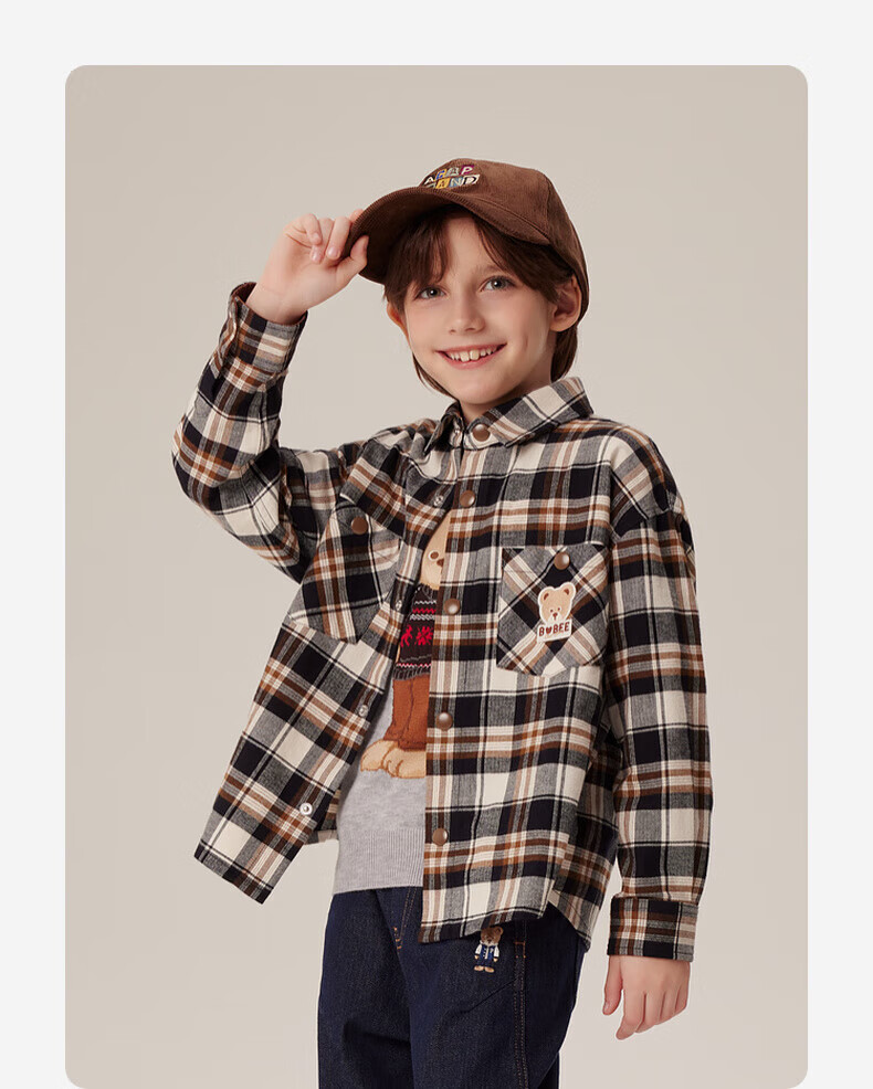 PawinPawD11 Moon Black PawinPaw Cartoon Bear Children's Clothing Autumn and Winter Boys Classic Plaid All-Match Boys Shirt Red/20 110 cm