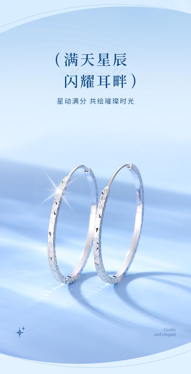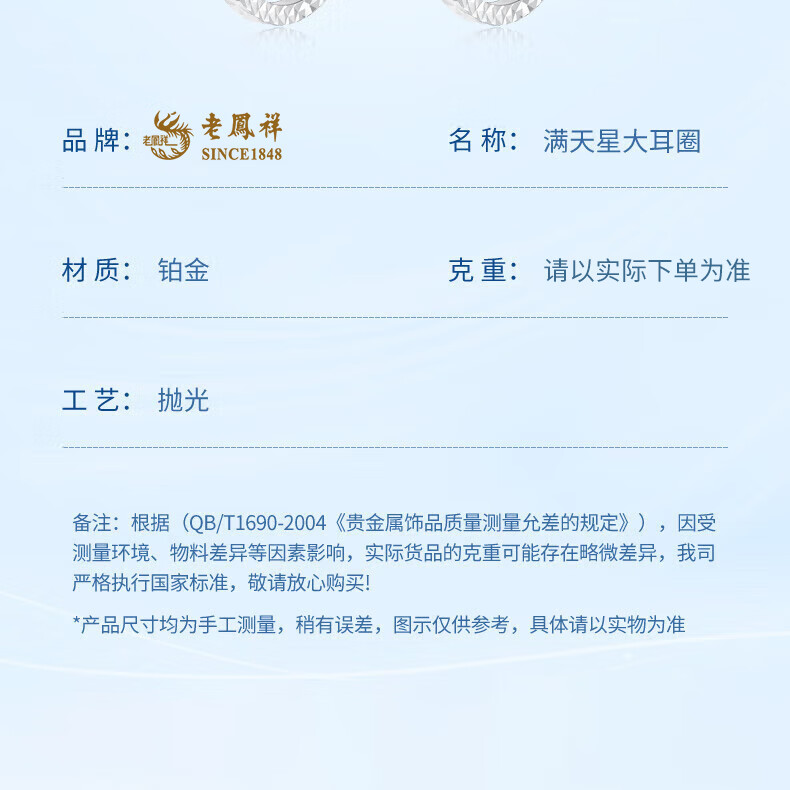 Lao Fengxiang PT950 platinum baby's breath large hoop earrings, light luxury, Valentine's Day birthday gift for girlfriend and wife. Gift for girlfriend* platinum baby's breath earrings, about 3.3g, brand gift box
