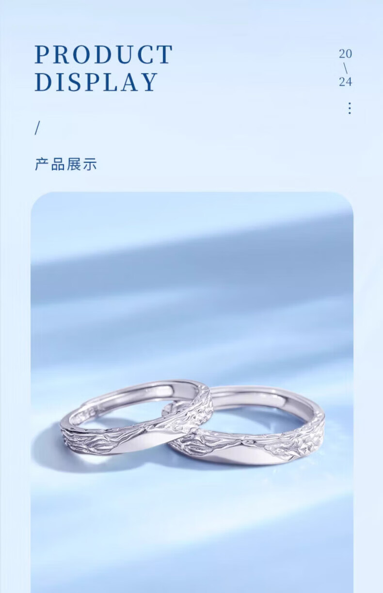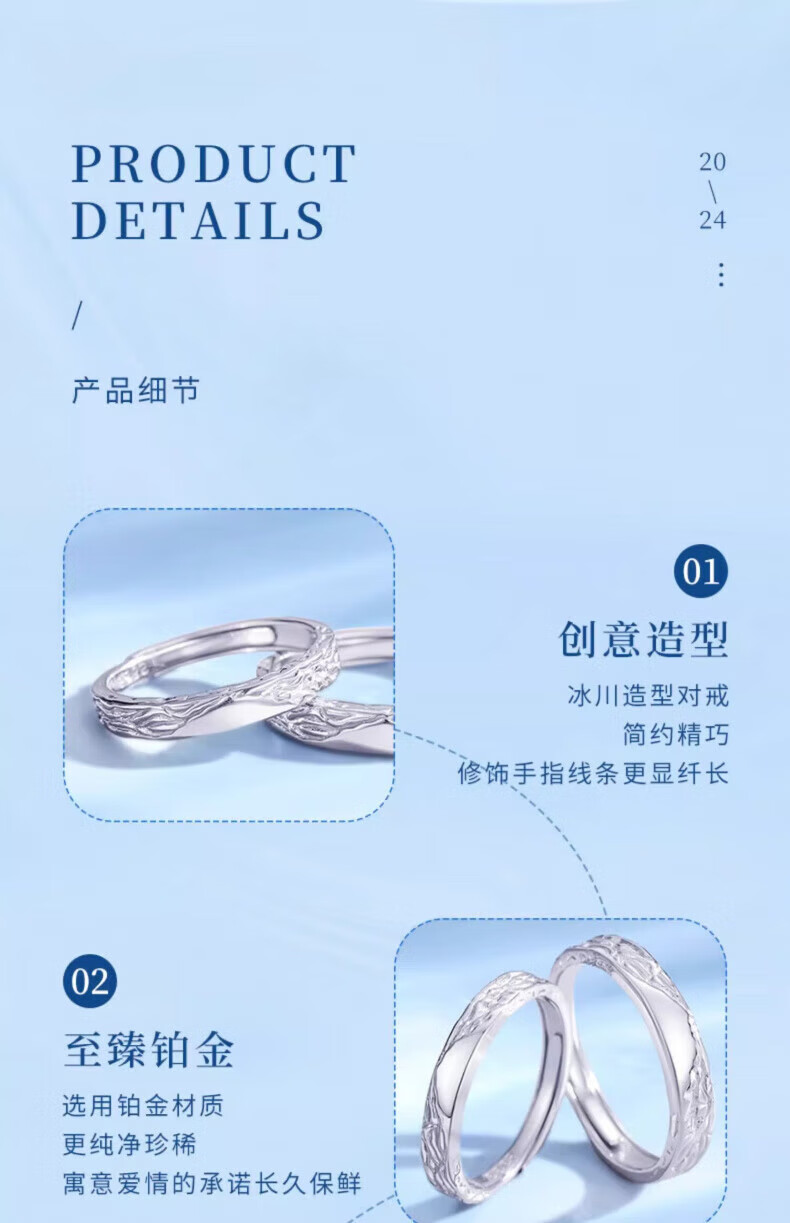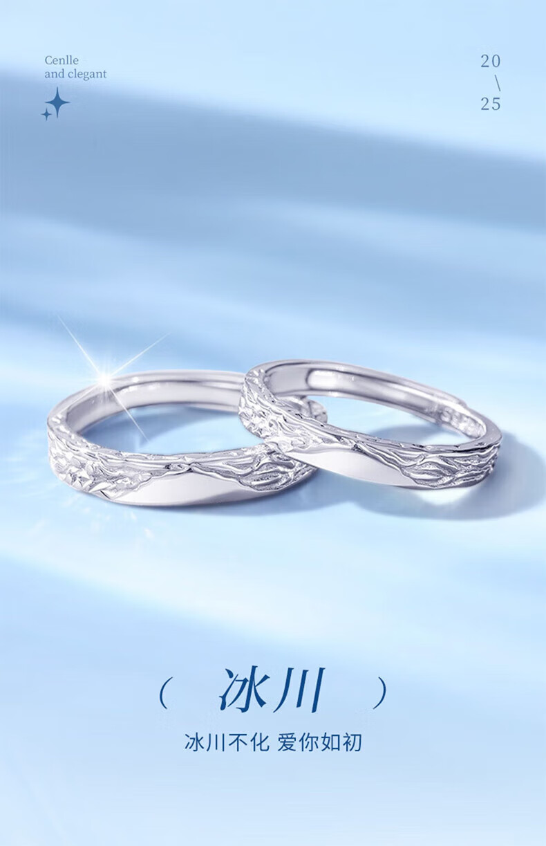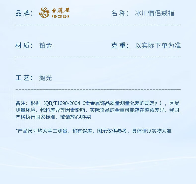 Lao Fengxiang PT950 Platinum Glacier Couple Ring Plain Ring Ring Valentine's Day Birthday Gift for Girlfriend and Wife Platinum Glacier Ring Approximately 1.6g Women's Style