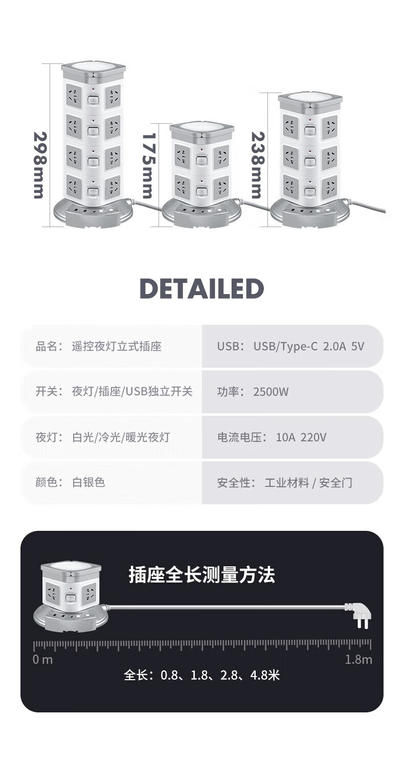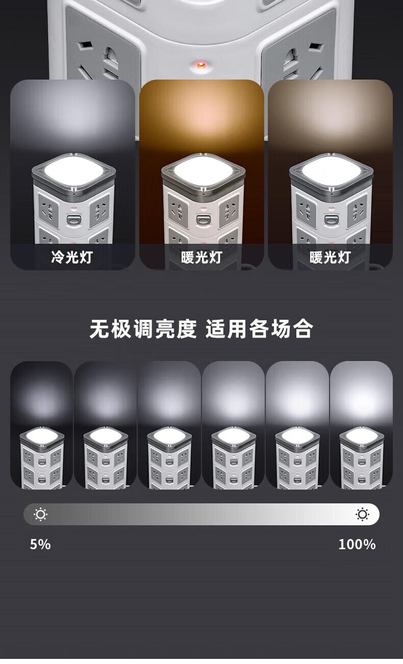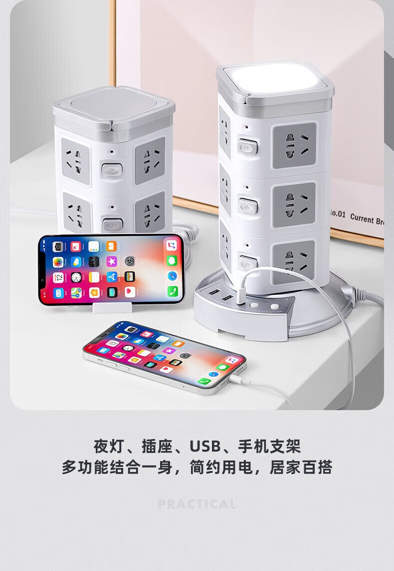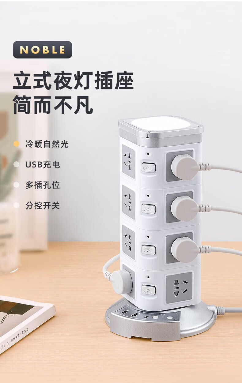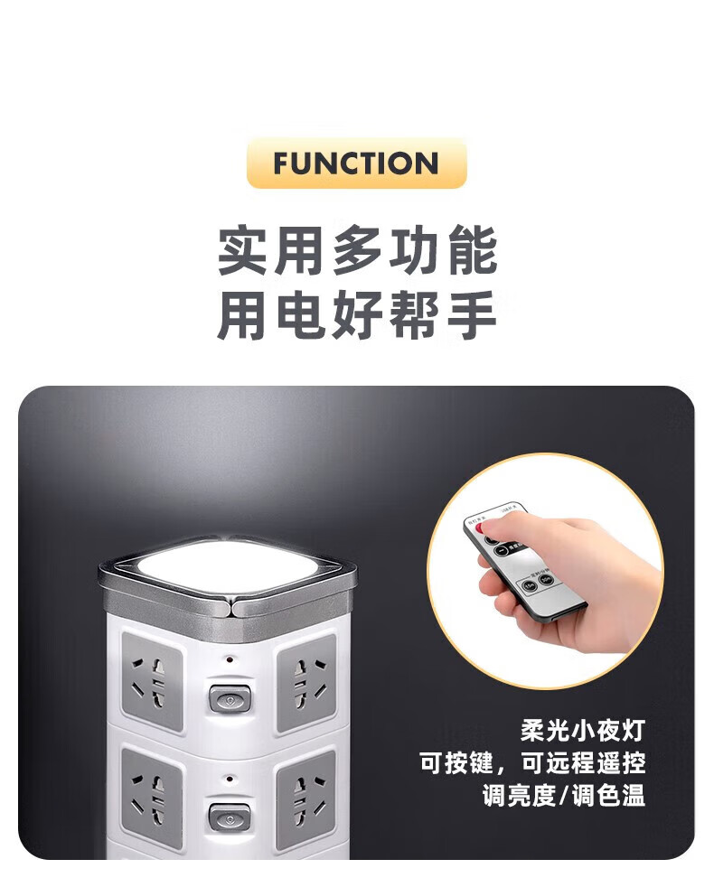 Bull (BULL) same model multifunctional vertical socket charging strip porous power supply wiring board power strip night light 4 sockets on the first floor 0.8 meters 4 sockets on the first floor 0.8 meters