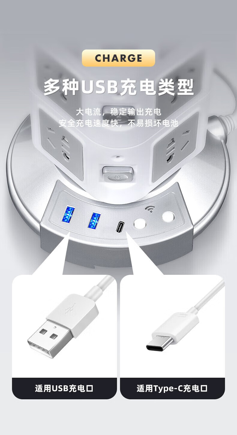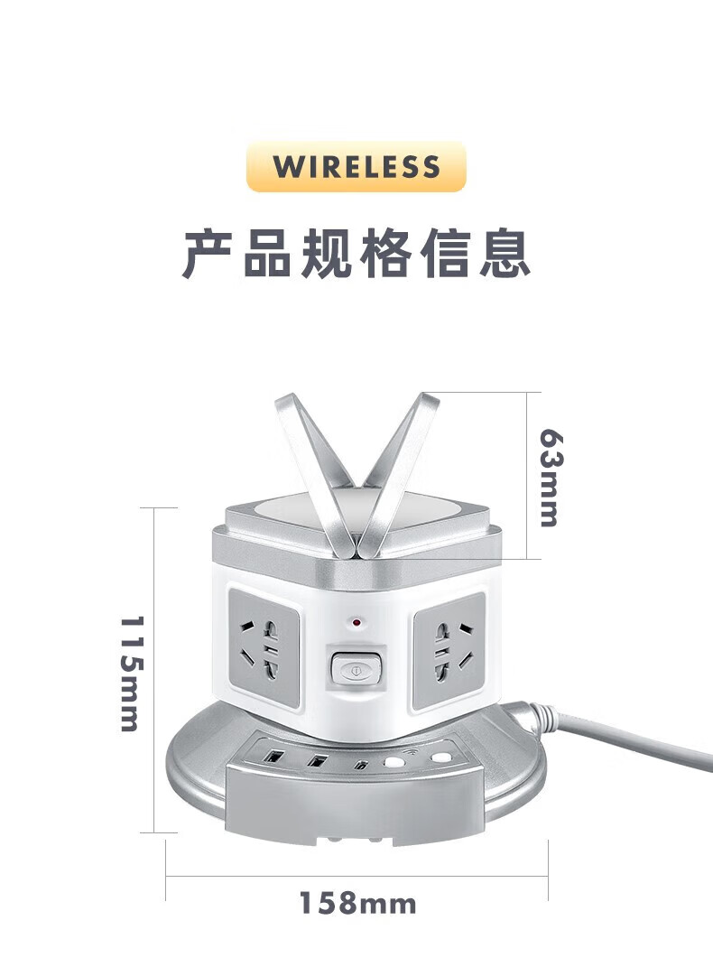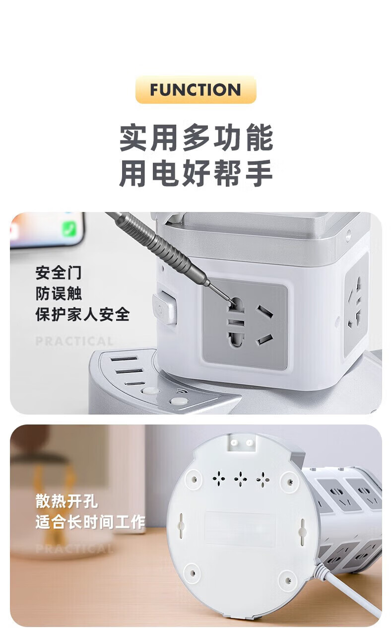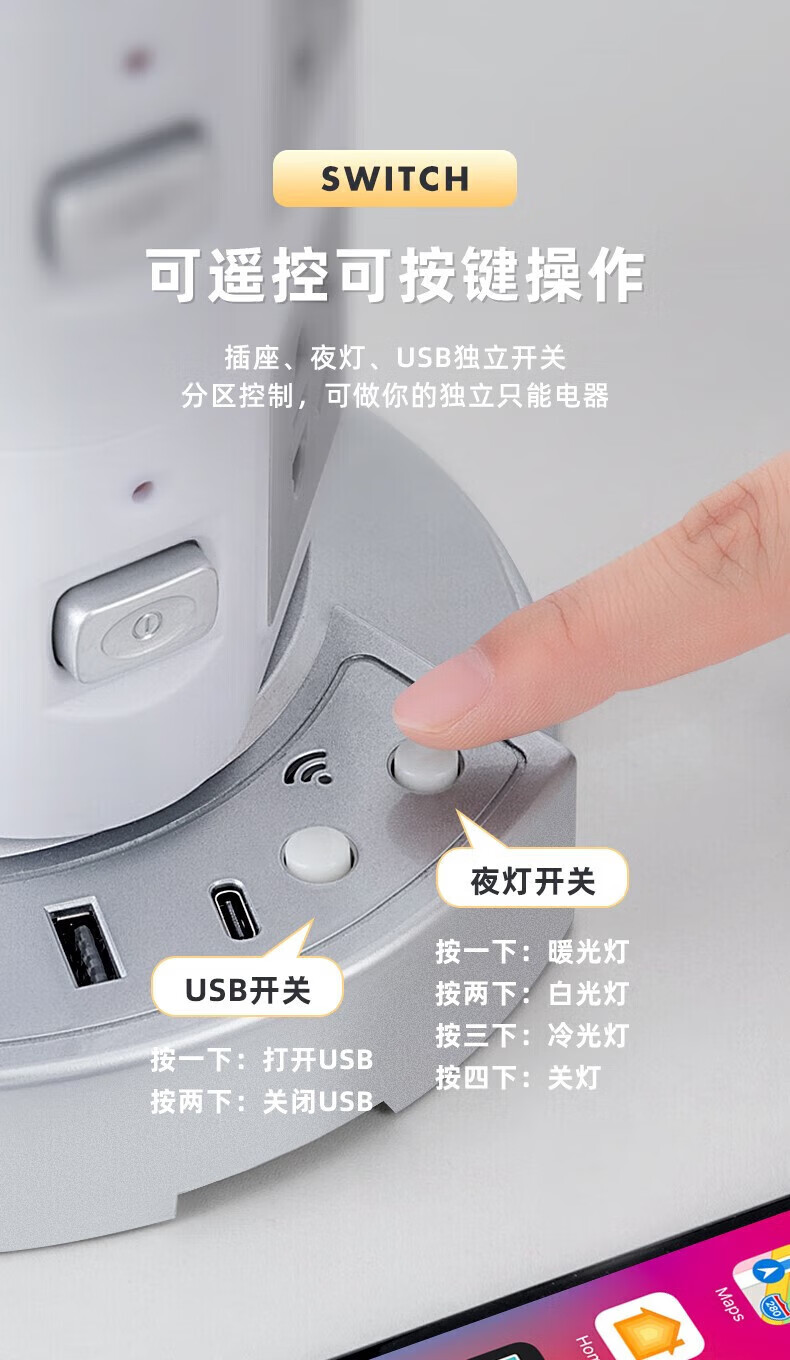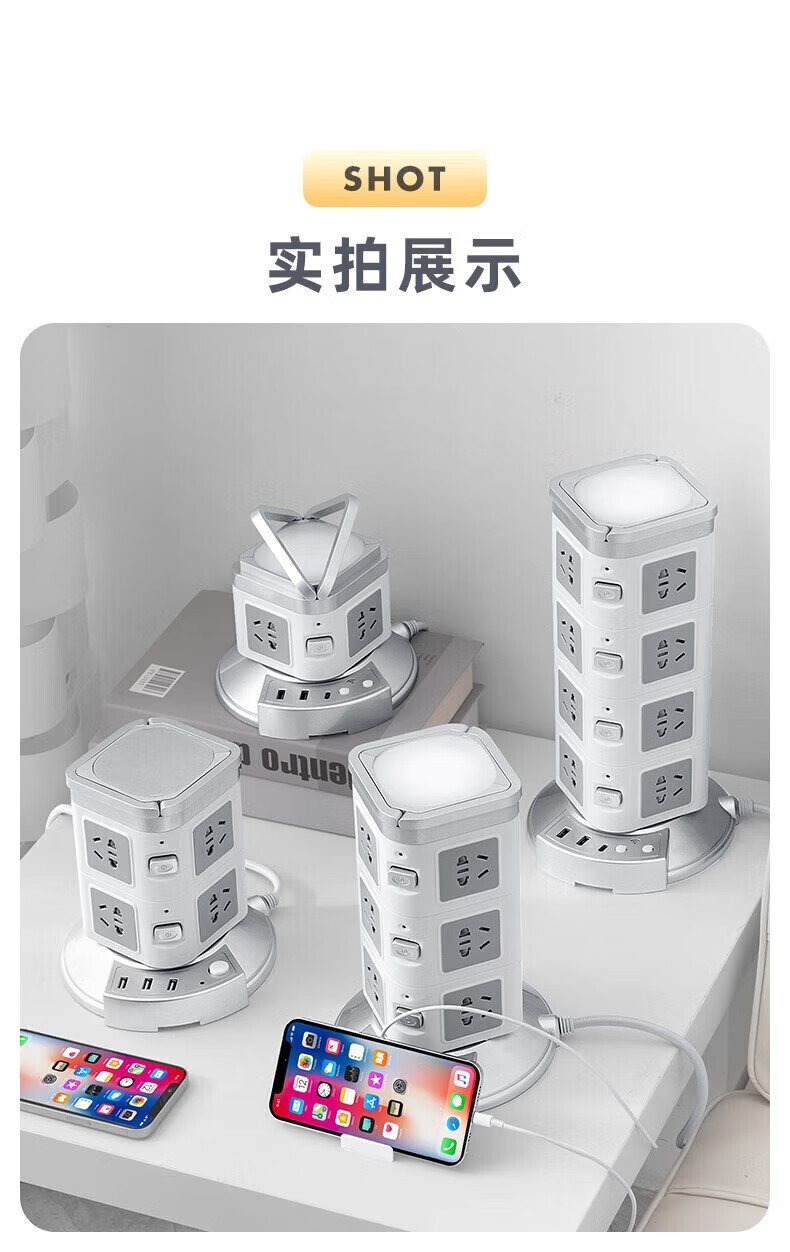Bull (BULL) same model multifunctional vertical socket charging strip porous power supply wiring board power strip night light 4 sockets on the first floor 0.8 meters 4 sockets on the first floor 0.8 meters