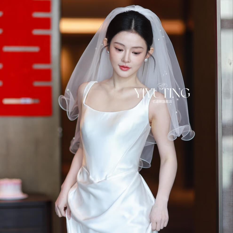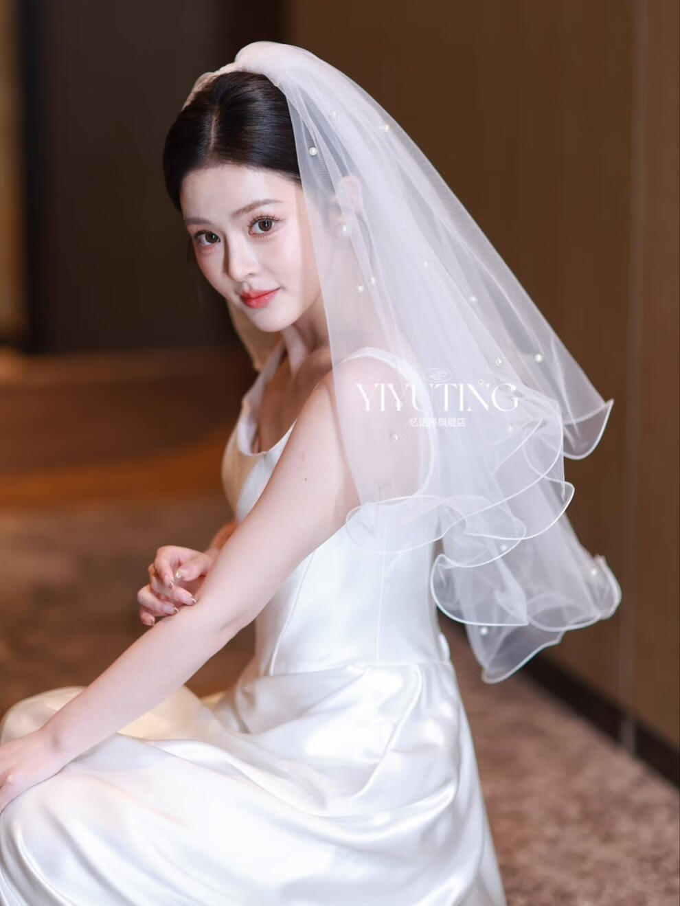 ROAR UTHAUG Yiyuting bride wedding veil simple long forest style wedding main wedding dress headdress certificate registration pearl veil white long pearl veil